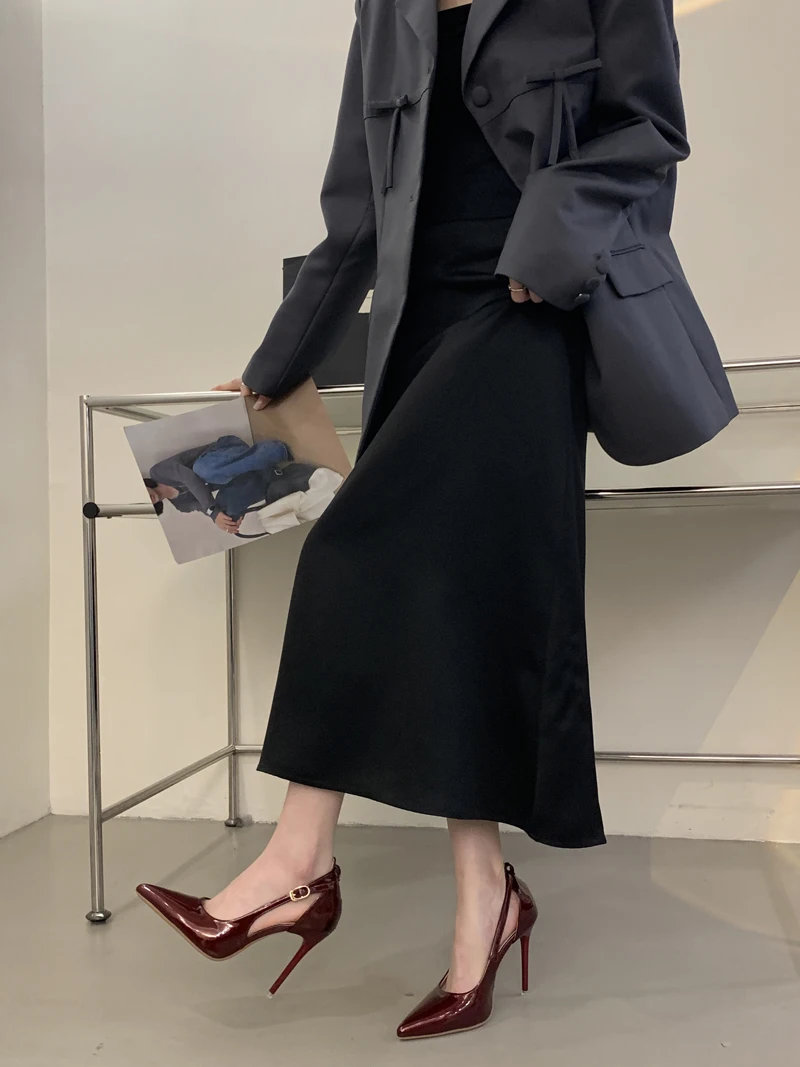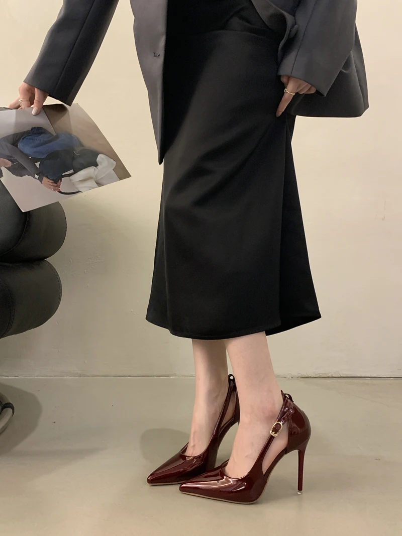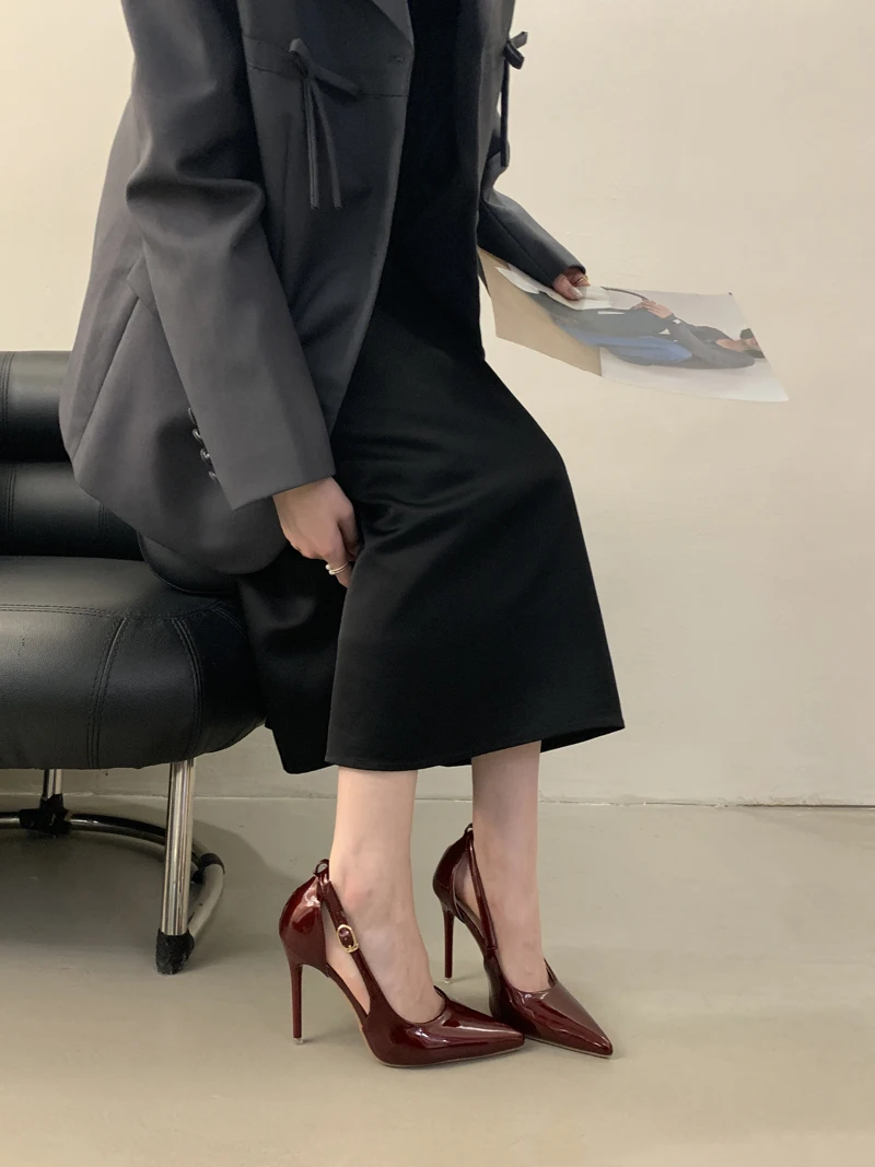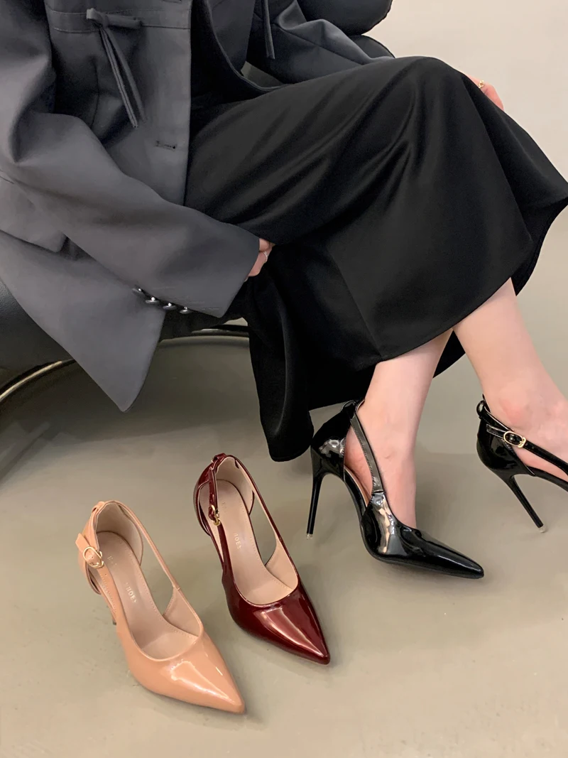 ADVBRIDGE - Burgundy Heels 11cm Ladies Party Shoes Black Patent Leather Stiletto High Heels Classy Dress Shoes Women Summer Pumps Damen