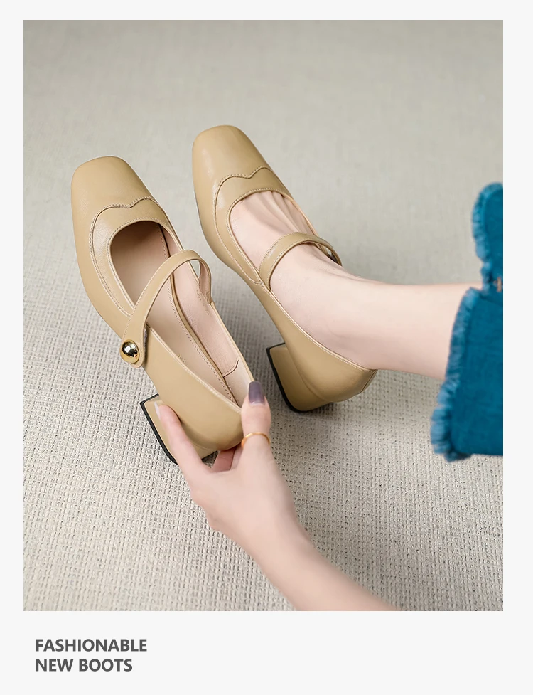 Advbridge Chunky Block Pumps for Women Slip On Low Heel Closed Round Toe Dress Classic Mid Square Shoes Wedding Party Office Lady  Shoes