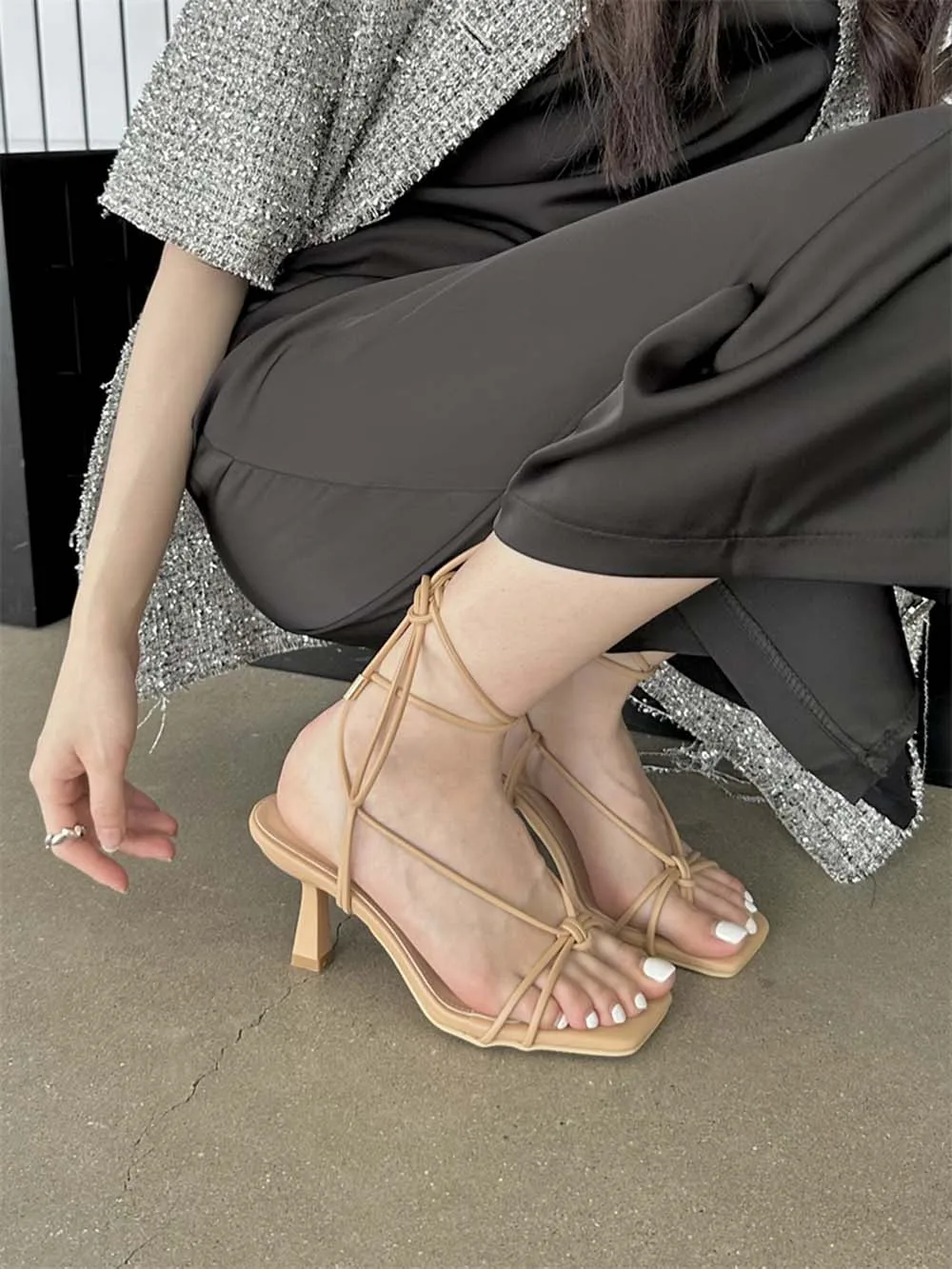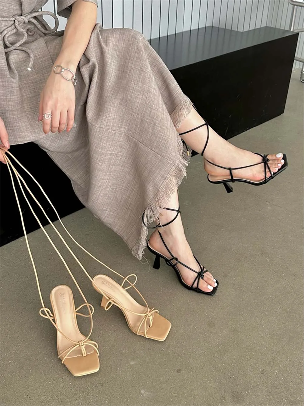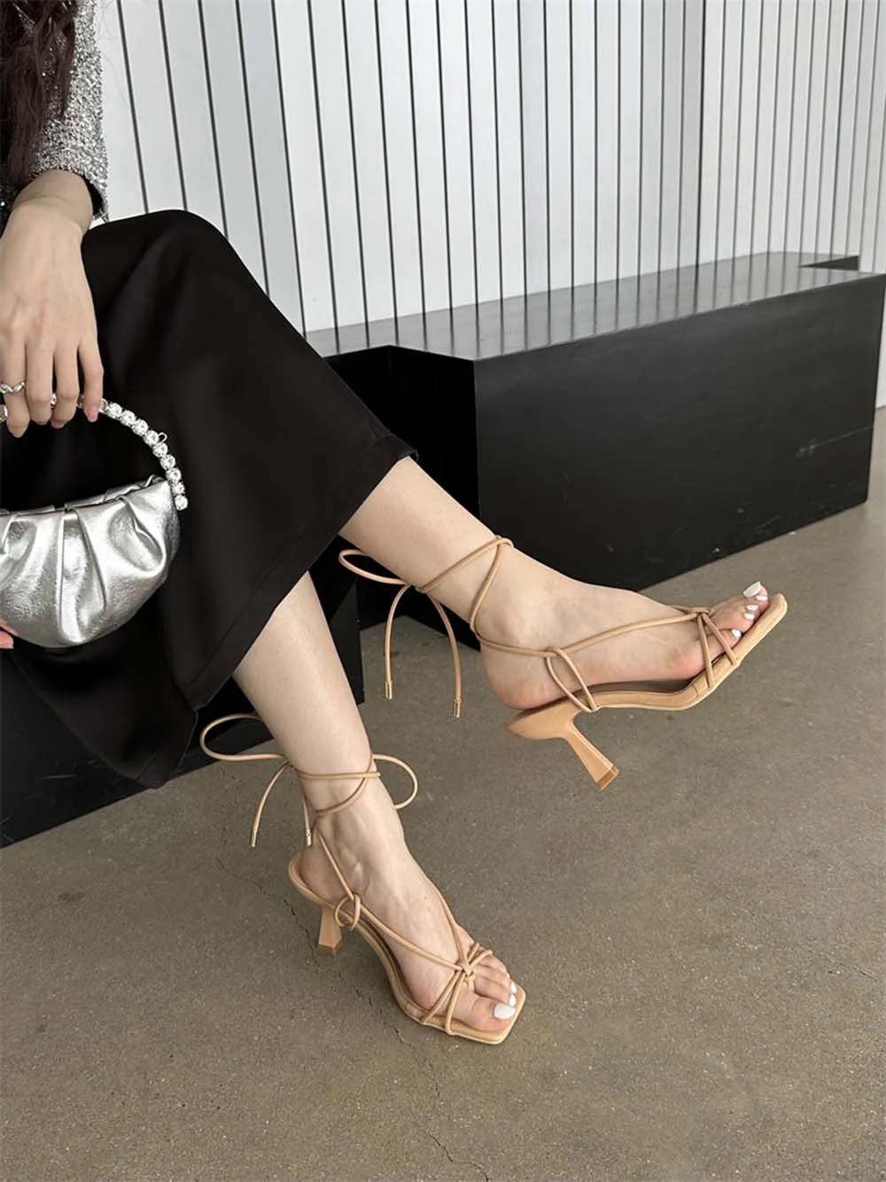 Advbridge Gladiator Women Sandals Thin High Heels Narrow Band Stiletto Fashion Party Pumps Size 35-39 Beige Black Ankle Strap Sexy Sandals