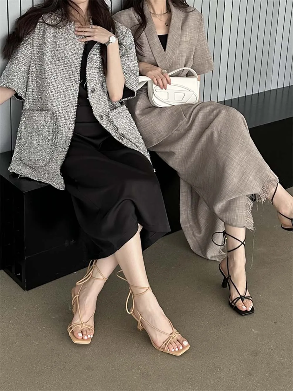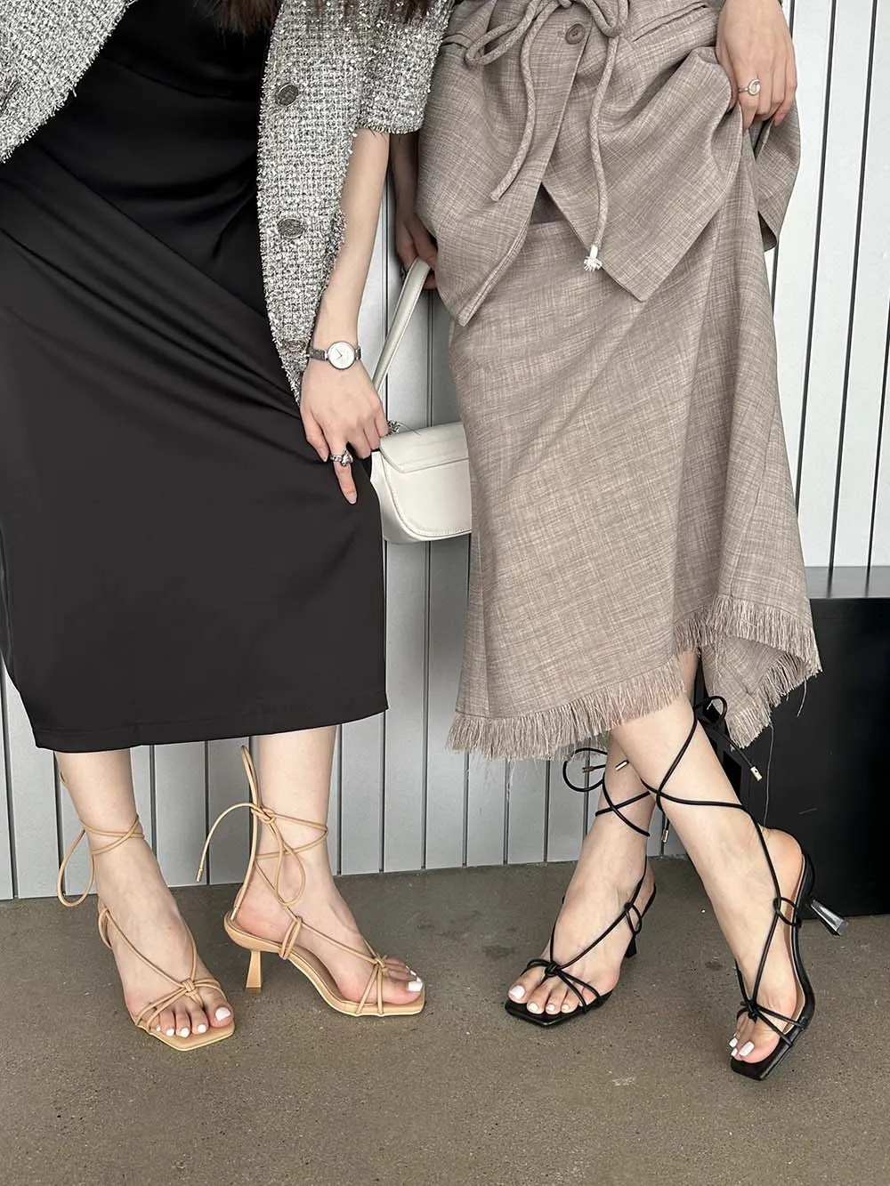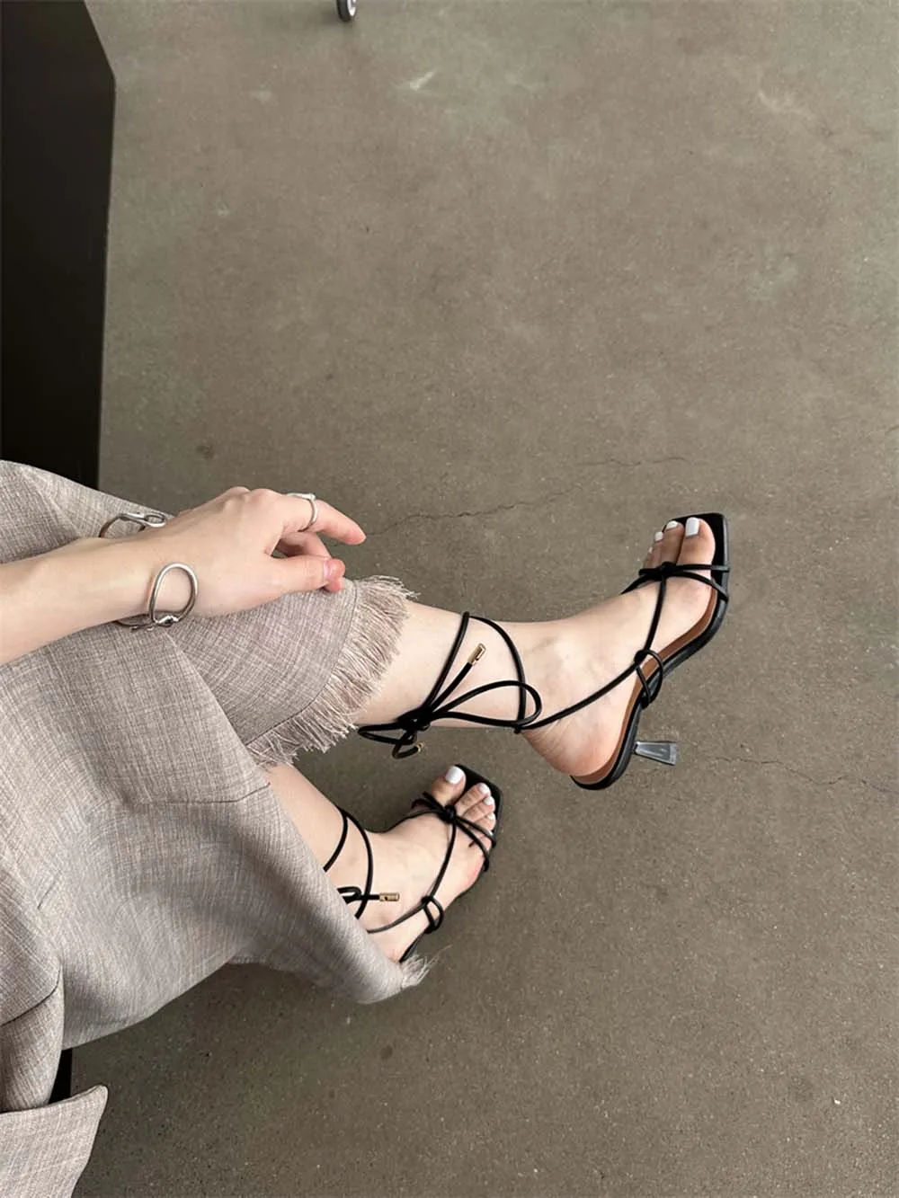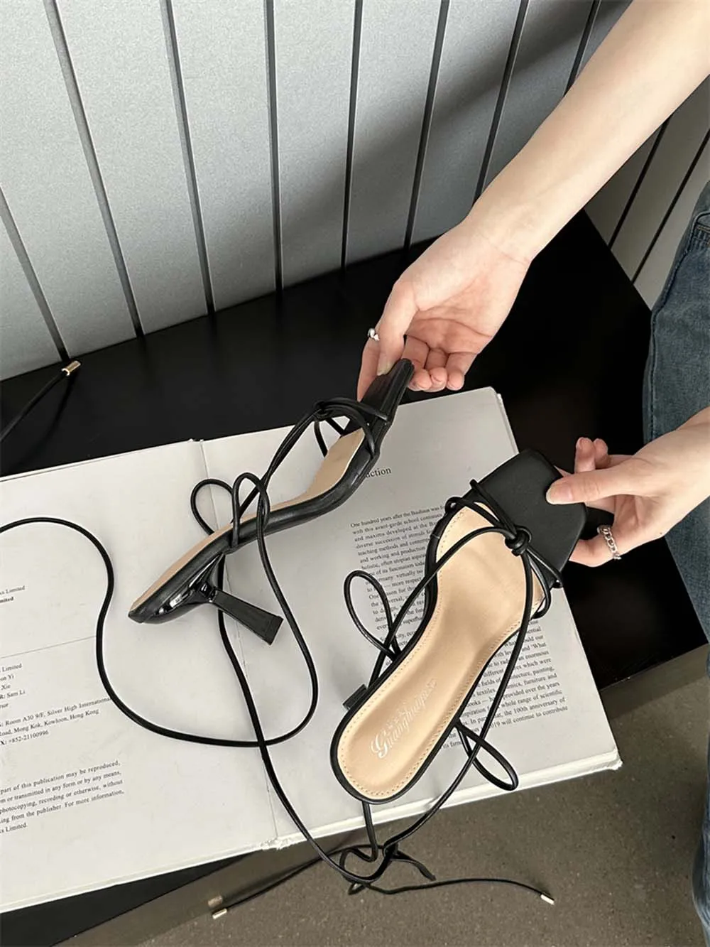 Advbridge Gladiator Women Sandals Thin High Heels Narrow Band Stiletto Fashion Party Pumps Size 35-39 Beige Black Ankle Strap Sexy Sandals