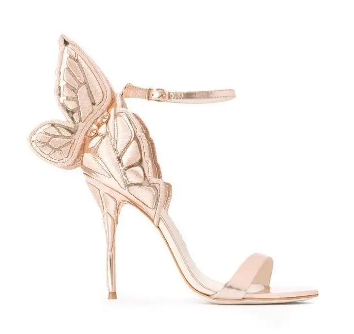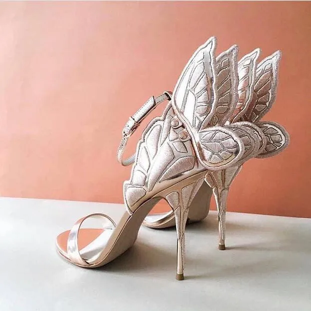 Advbridge Glitter Embroidery Butterfly Wing High Heel Sandals Women Angel Wings Ankle Wrap Pumps Open Toe Real Leather Party High Heels