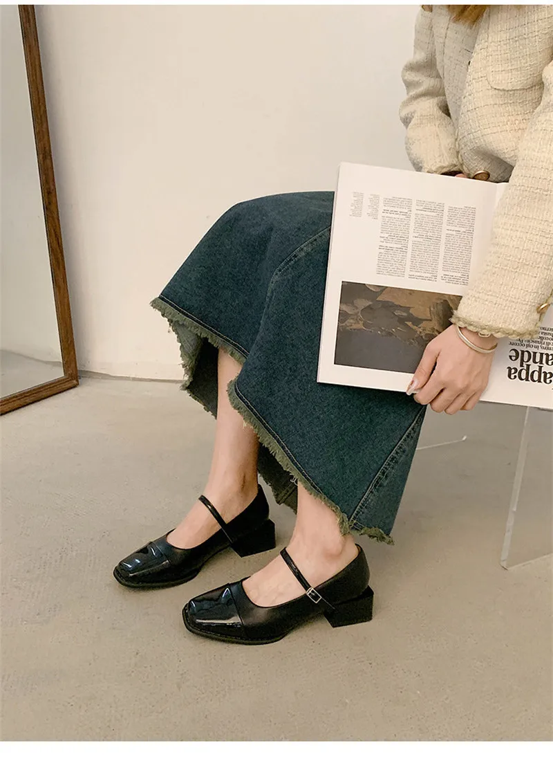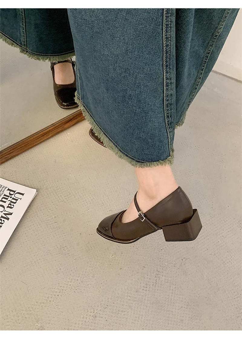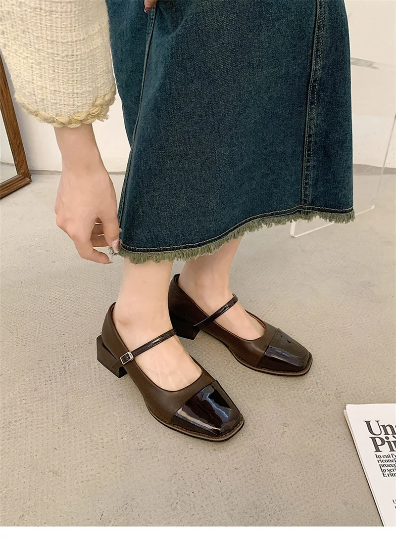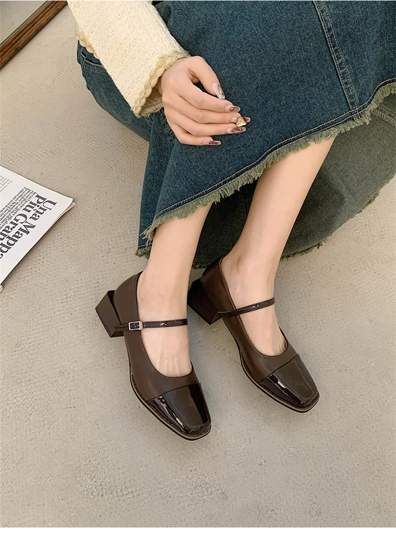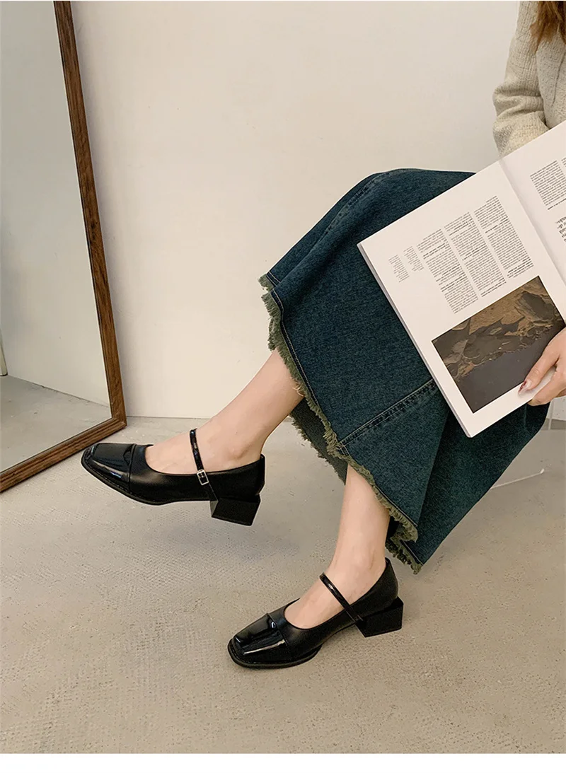 Advbridge Mary Jane Women Shoes Pumps Thick High Heels Shoes Square Toe Woman Lolita Spring Fashion Party Genuine Leather Shoes Female New