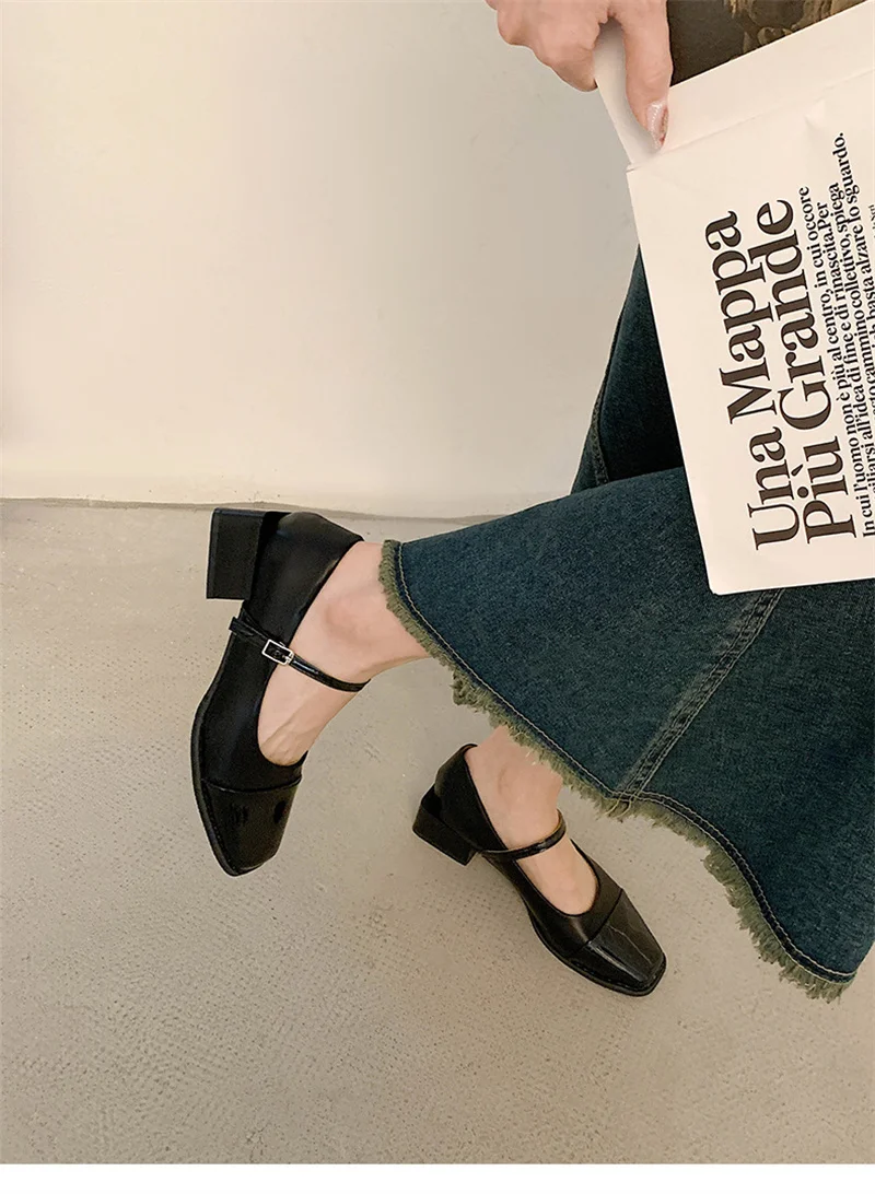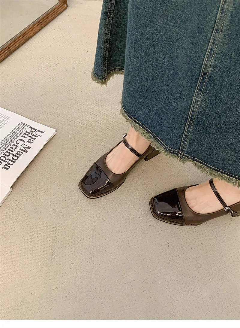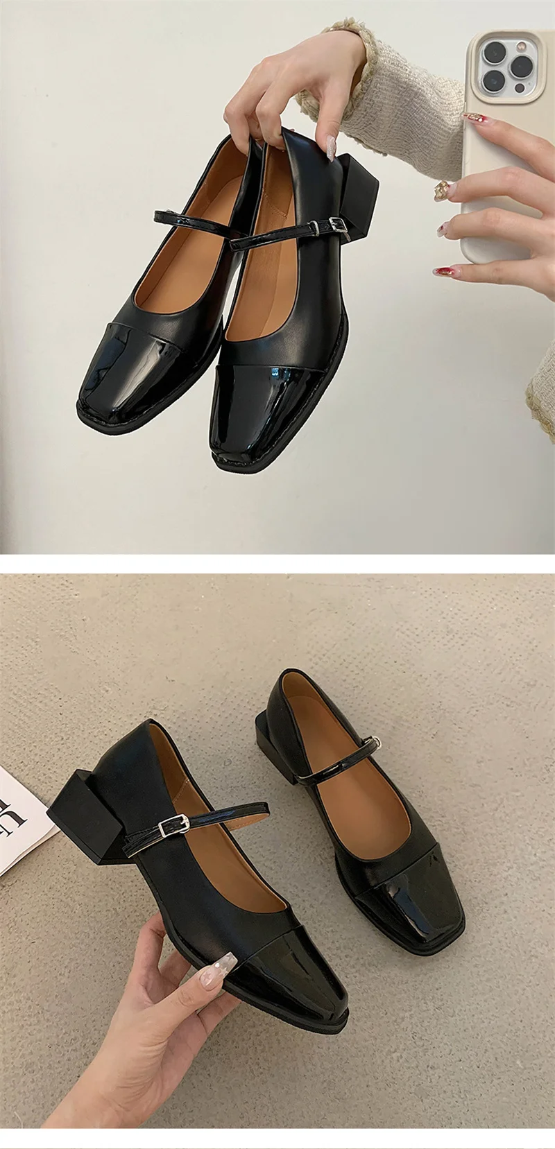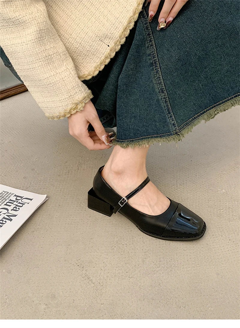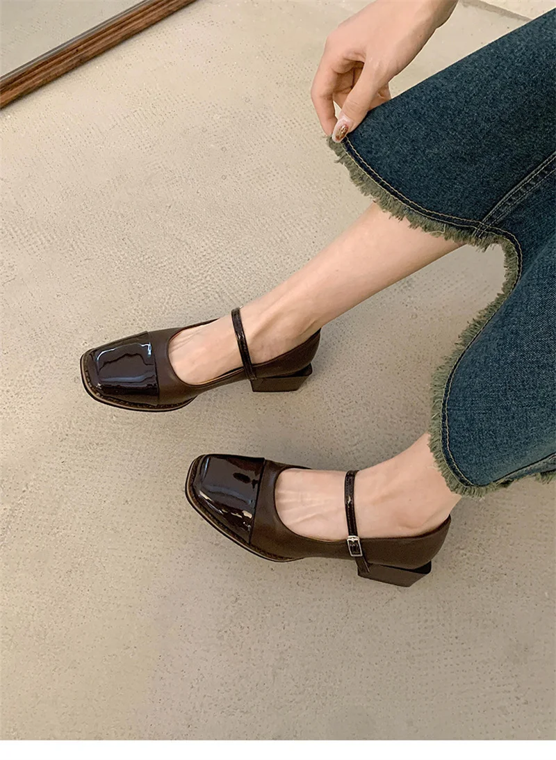 Advbridge Mary Jane Women Shoes Pumps Thick High Heels Shoes Square Toe Woman Lolita Spring Fashion Party Genuine Leather Shoes Female New