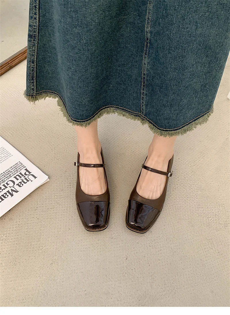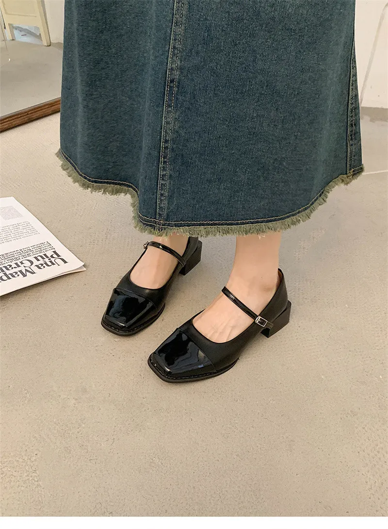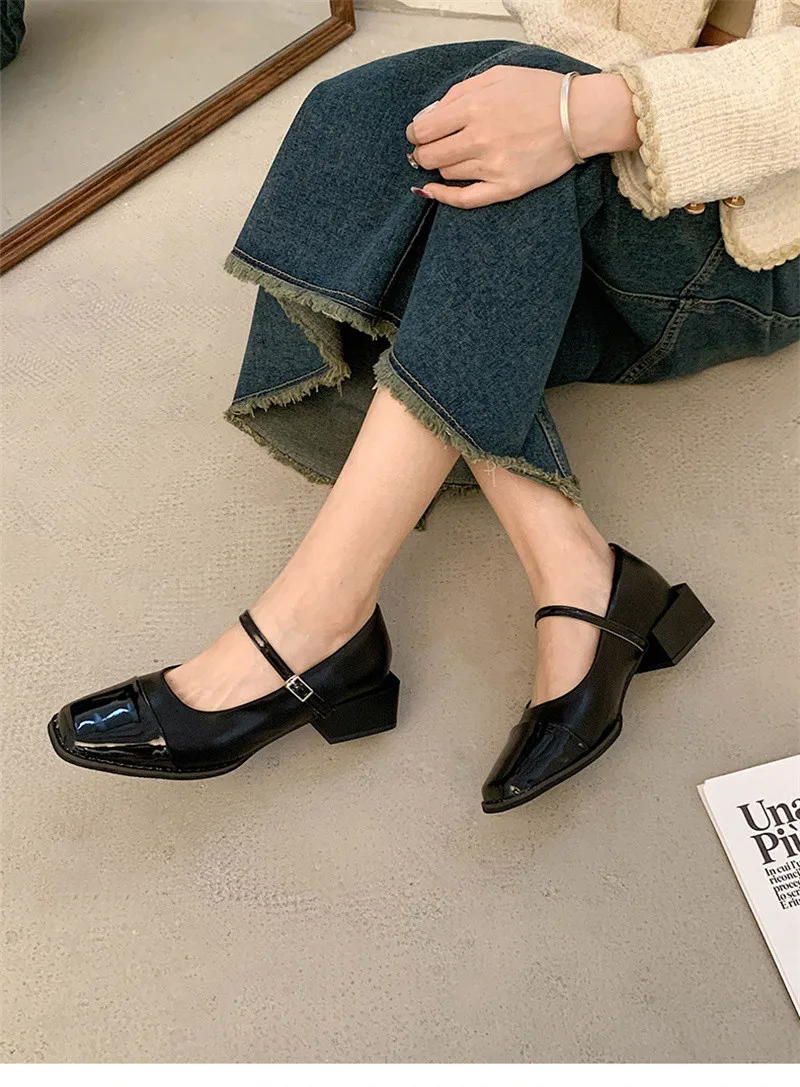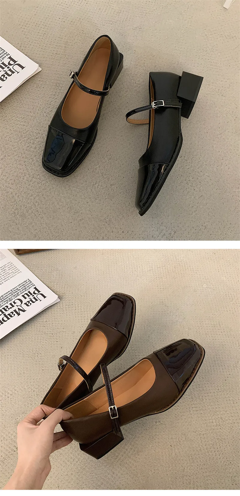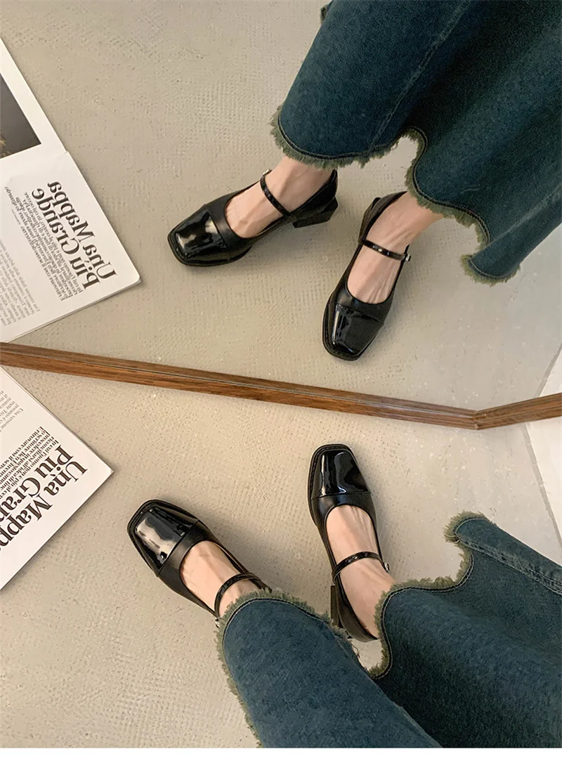 Advbridge Mary Jane Women Shoes Pumps Thick High Heels Shoes Square Toe Woman Lolita Spring Fashion Party Genuine Leather Shoes Female New