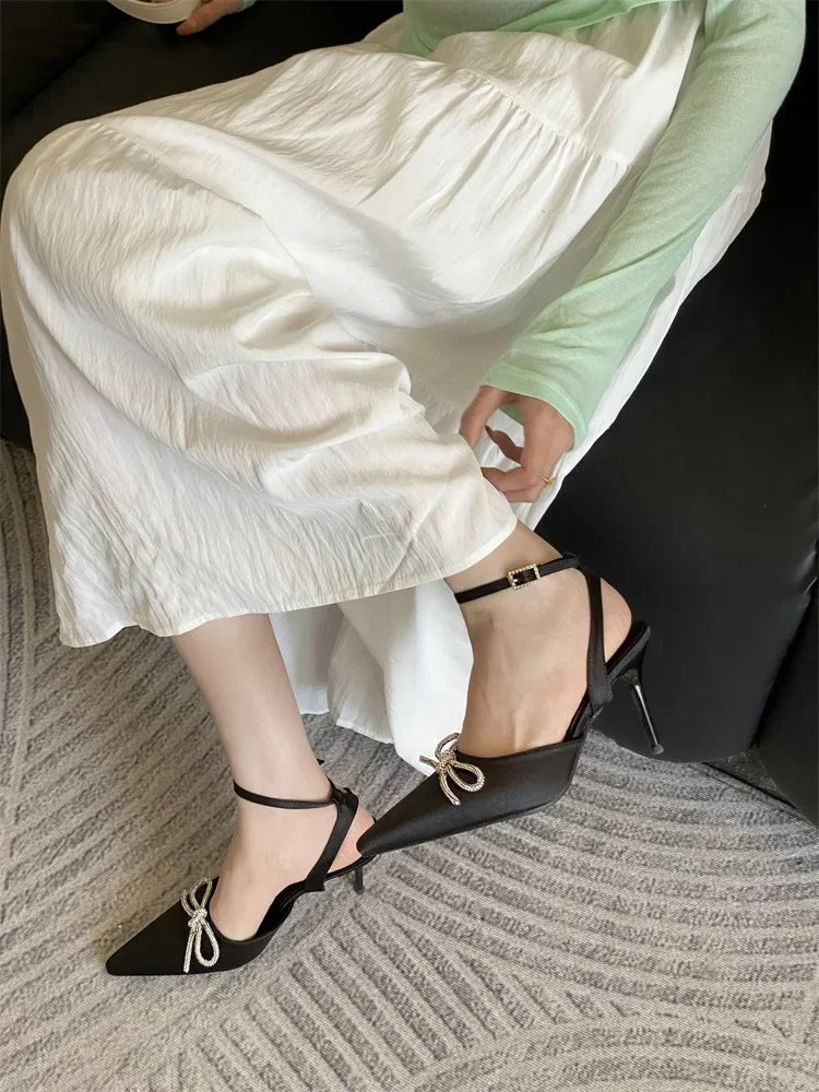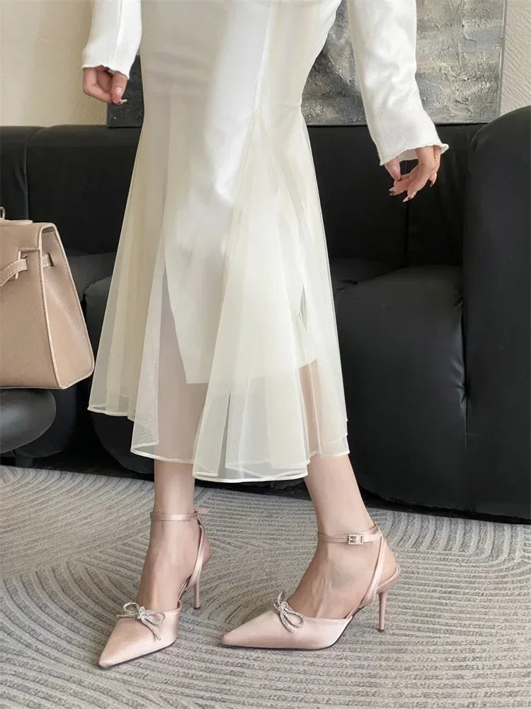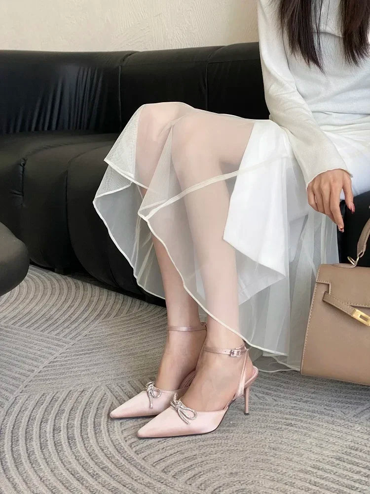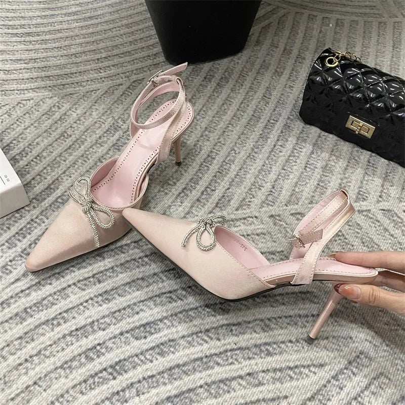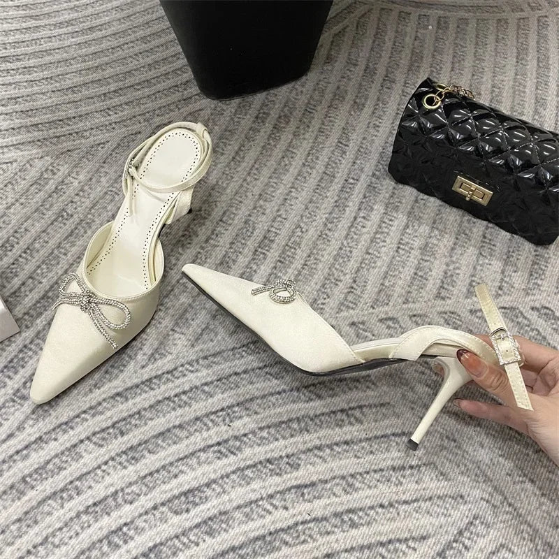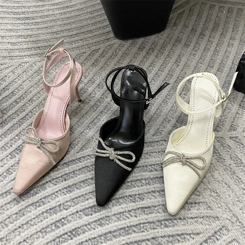 ADVBRIDGE  -  New Design Crystal Butterfly-knot Thin High Heels Women Pumps Elegant Buckle Strap Pointed Toe Wedding Party Shoes