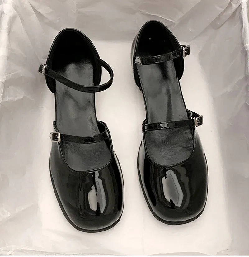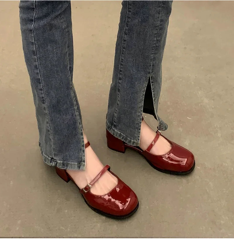 Advbridge New Design Mary Jane Shoes Buckle Pumps Women Elegant Shallow Hollow Thick Heel Casual Shoes Ladies Office Party Leather Shoes