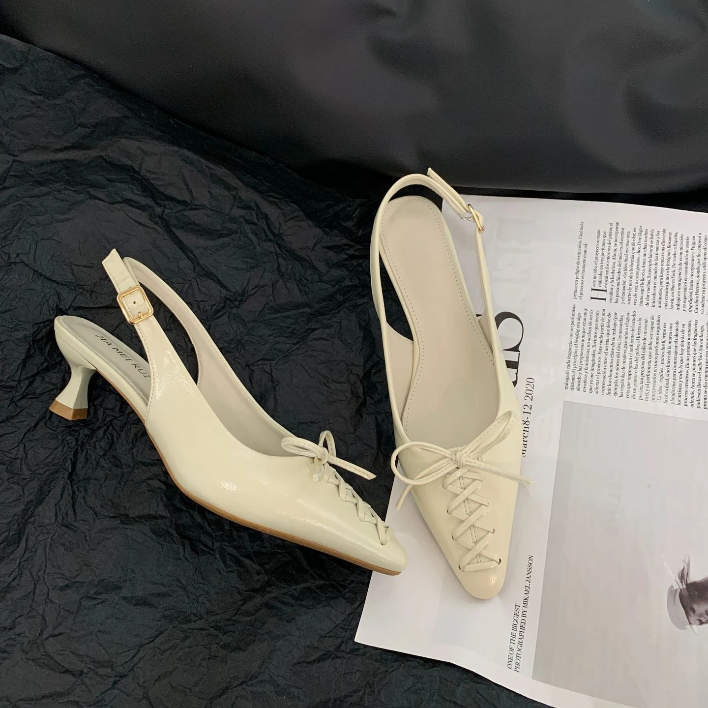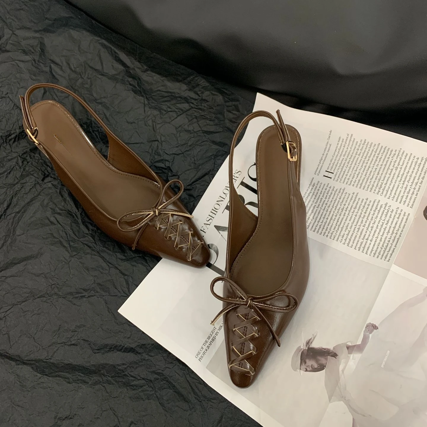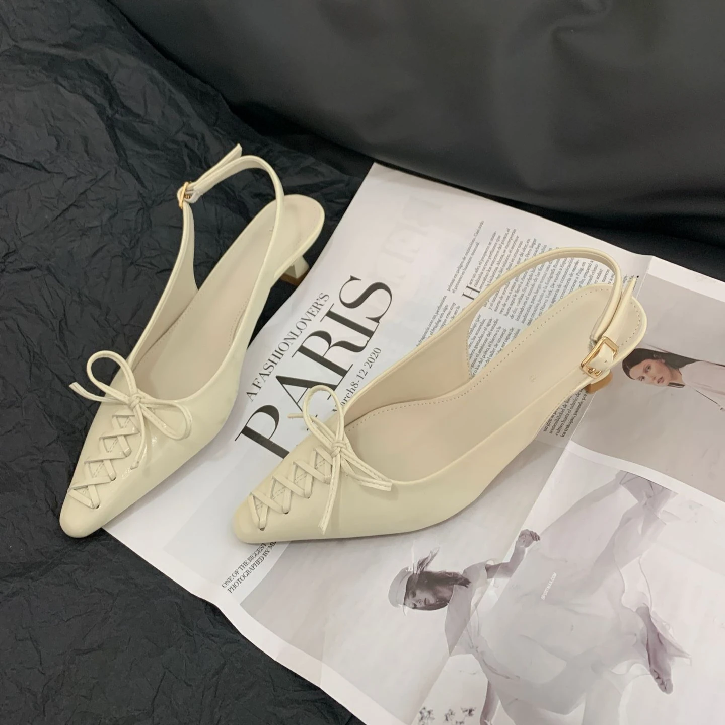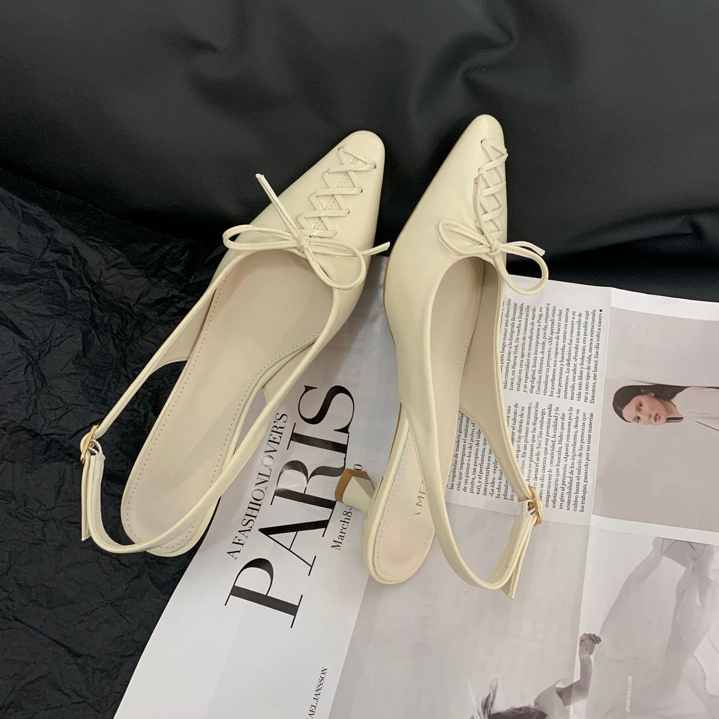 ADVBRIDGE - New Designer Sandals for Women Summer Slingback High Heels Dress Shoes Cross-tied Shallow Fashion Low Heel Mules Pumps Women