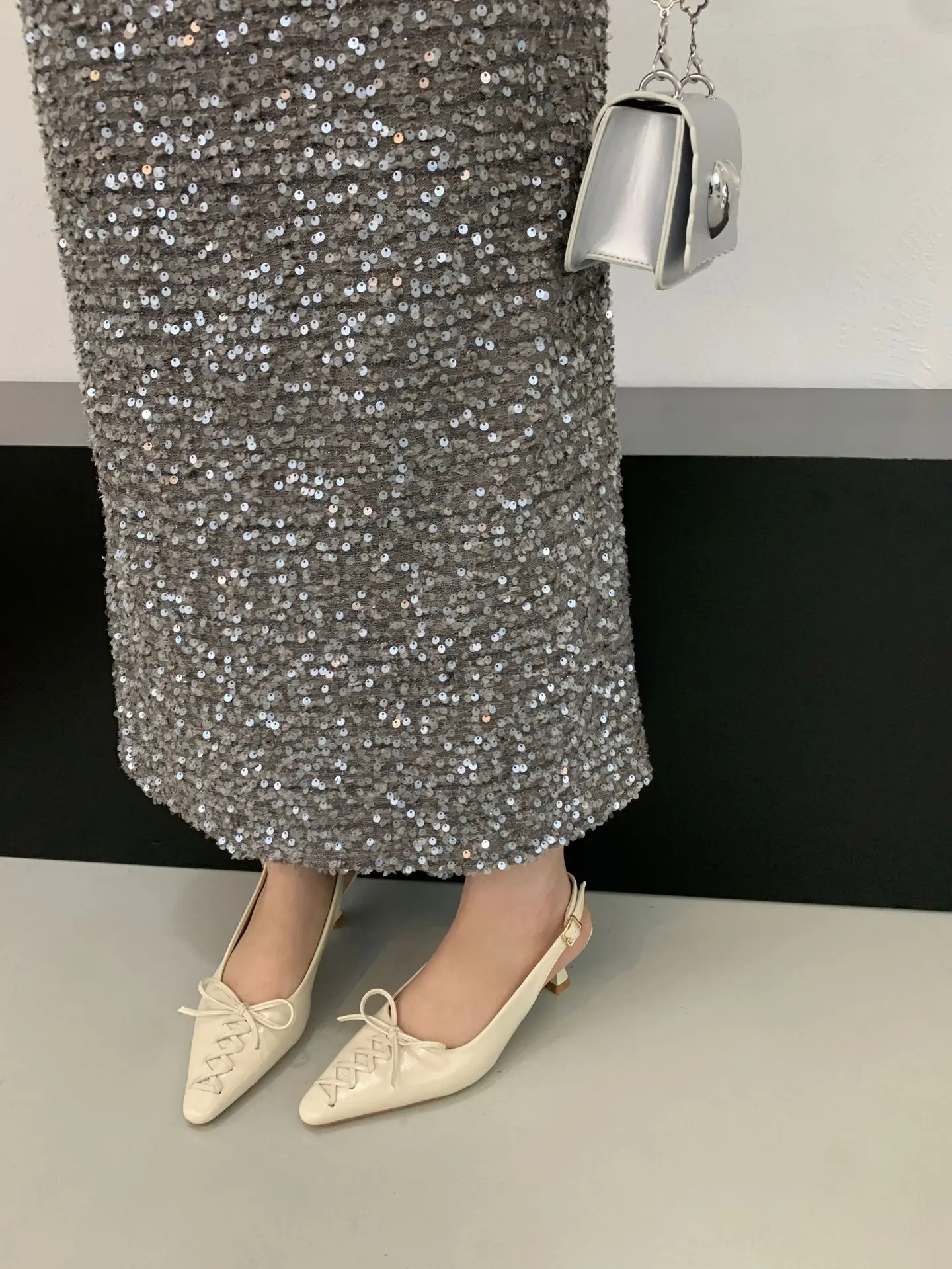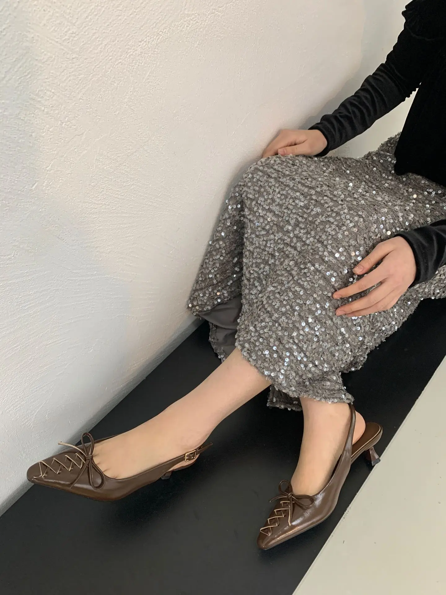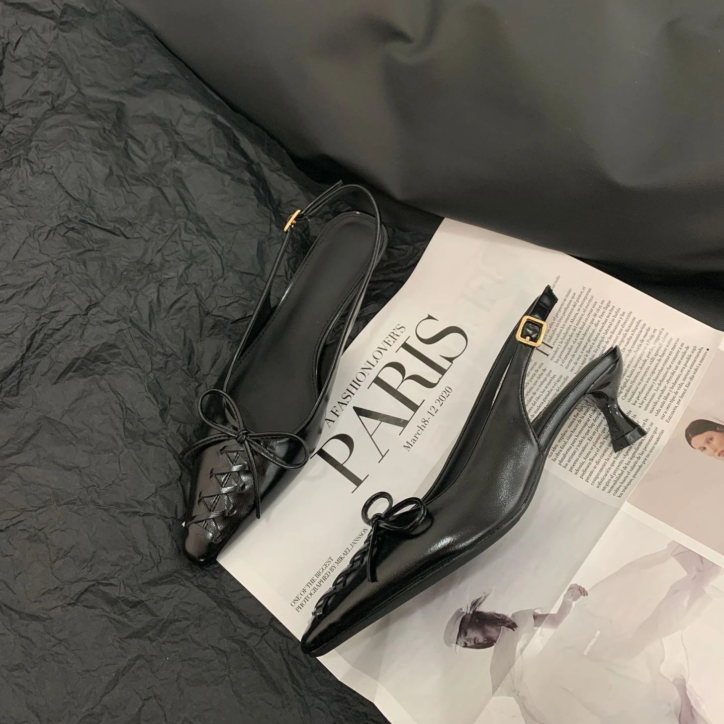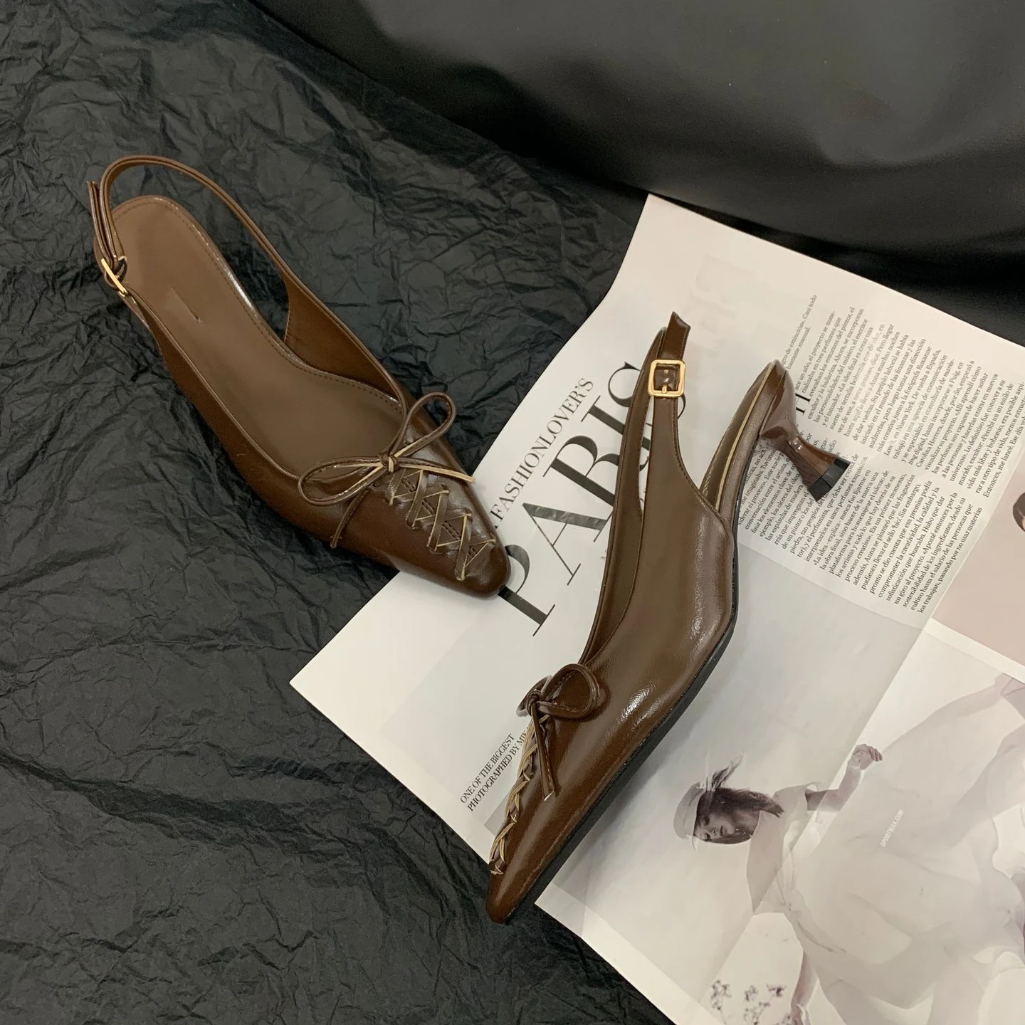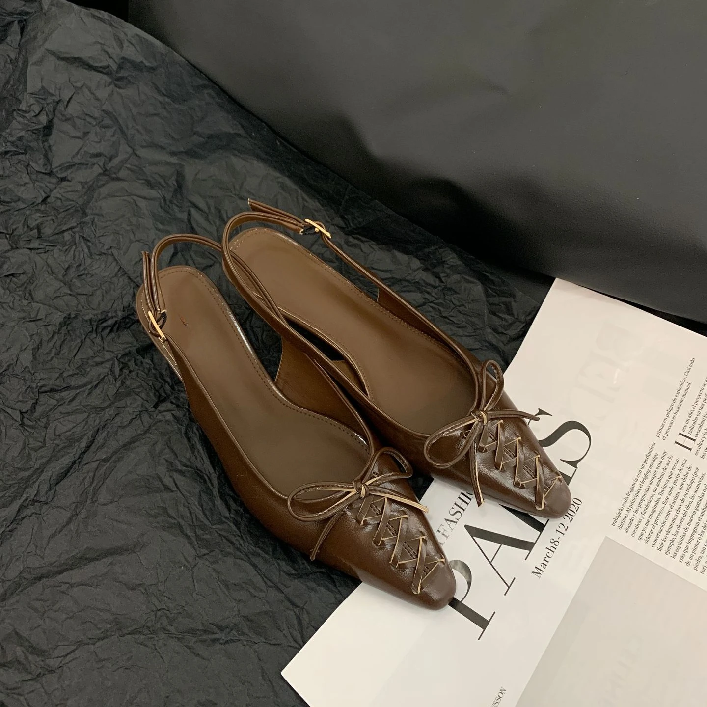 ADVBRIDGE - New Designer Sandals for Women Summer Slingback High Heels Dress Shoes Cross-tied Shallow Fashion Low Heel Mules Pumps Women