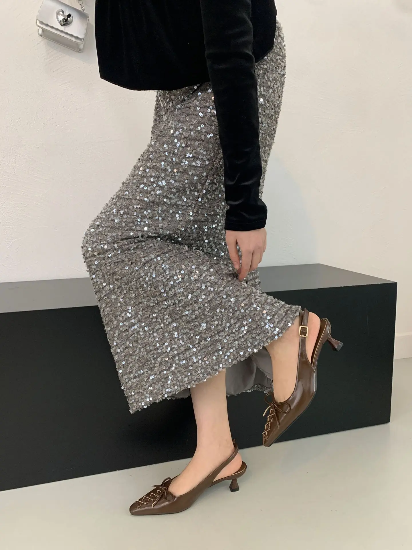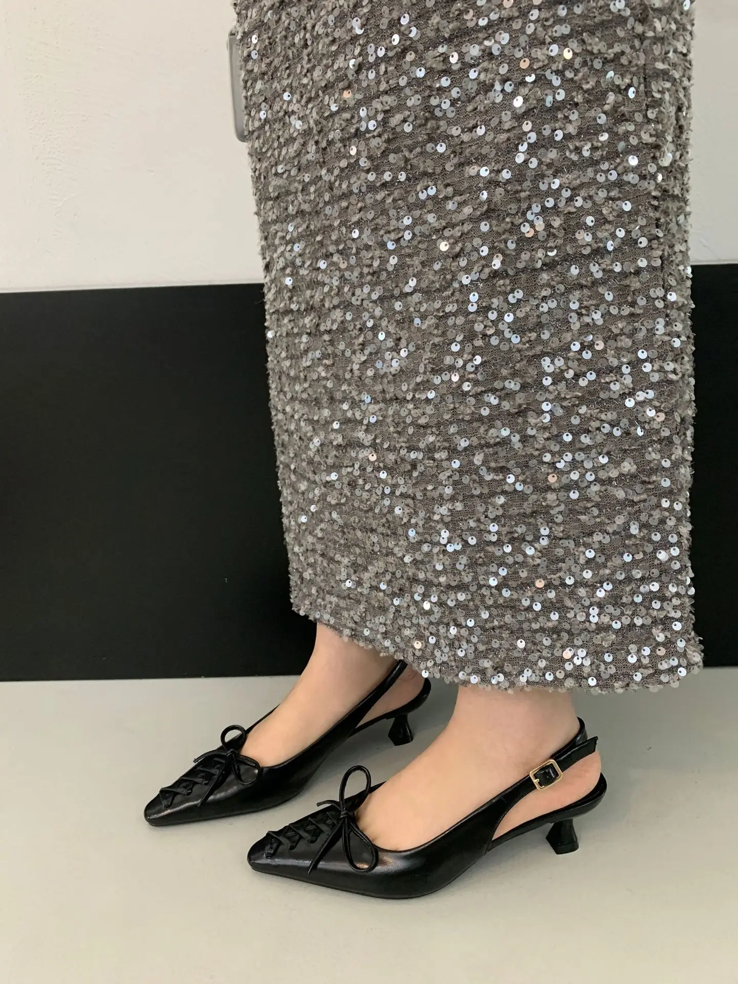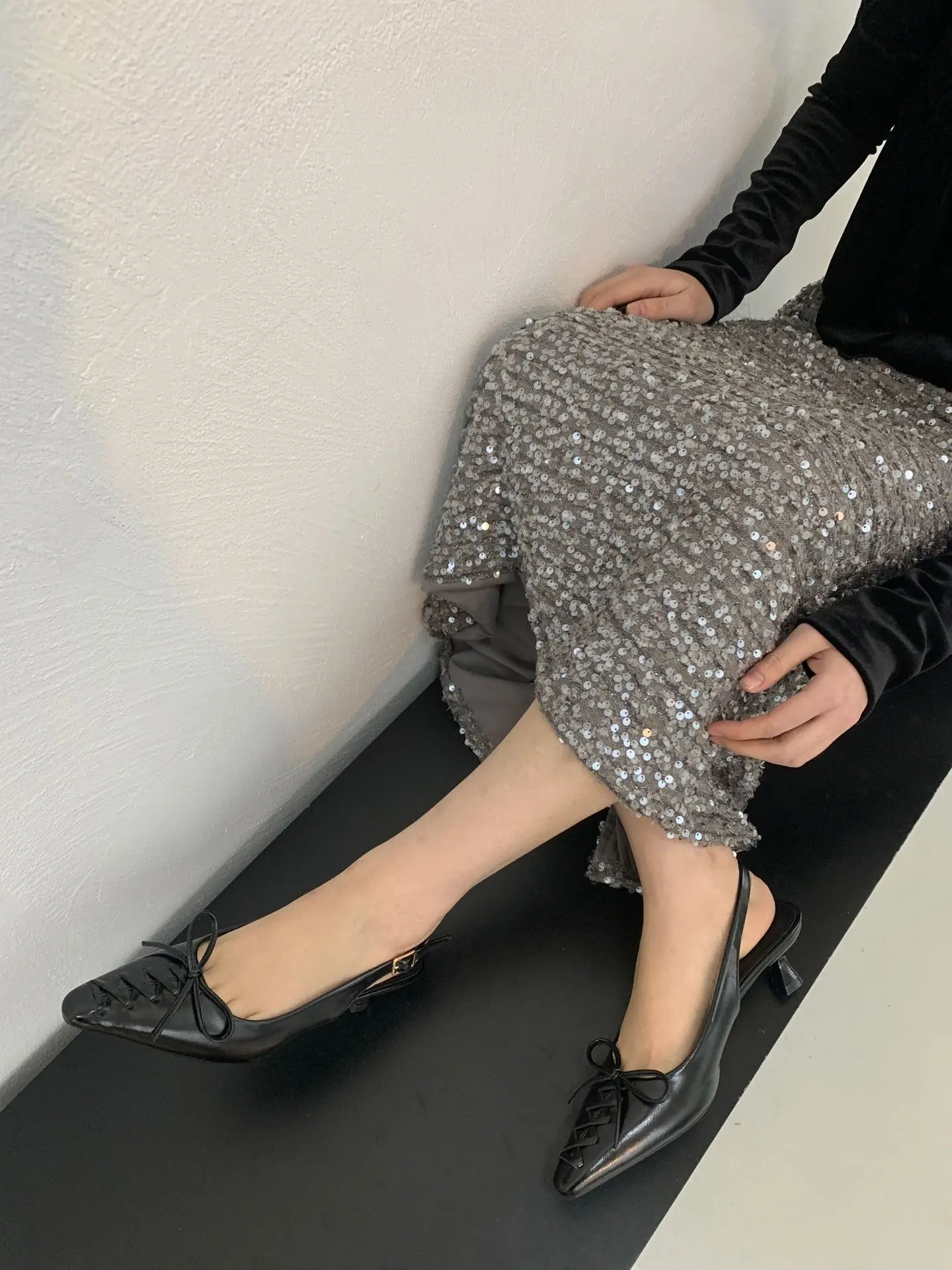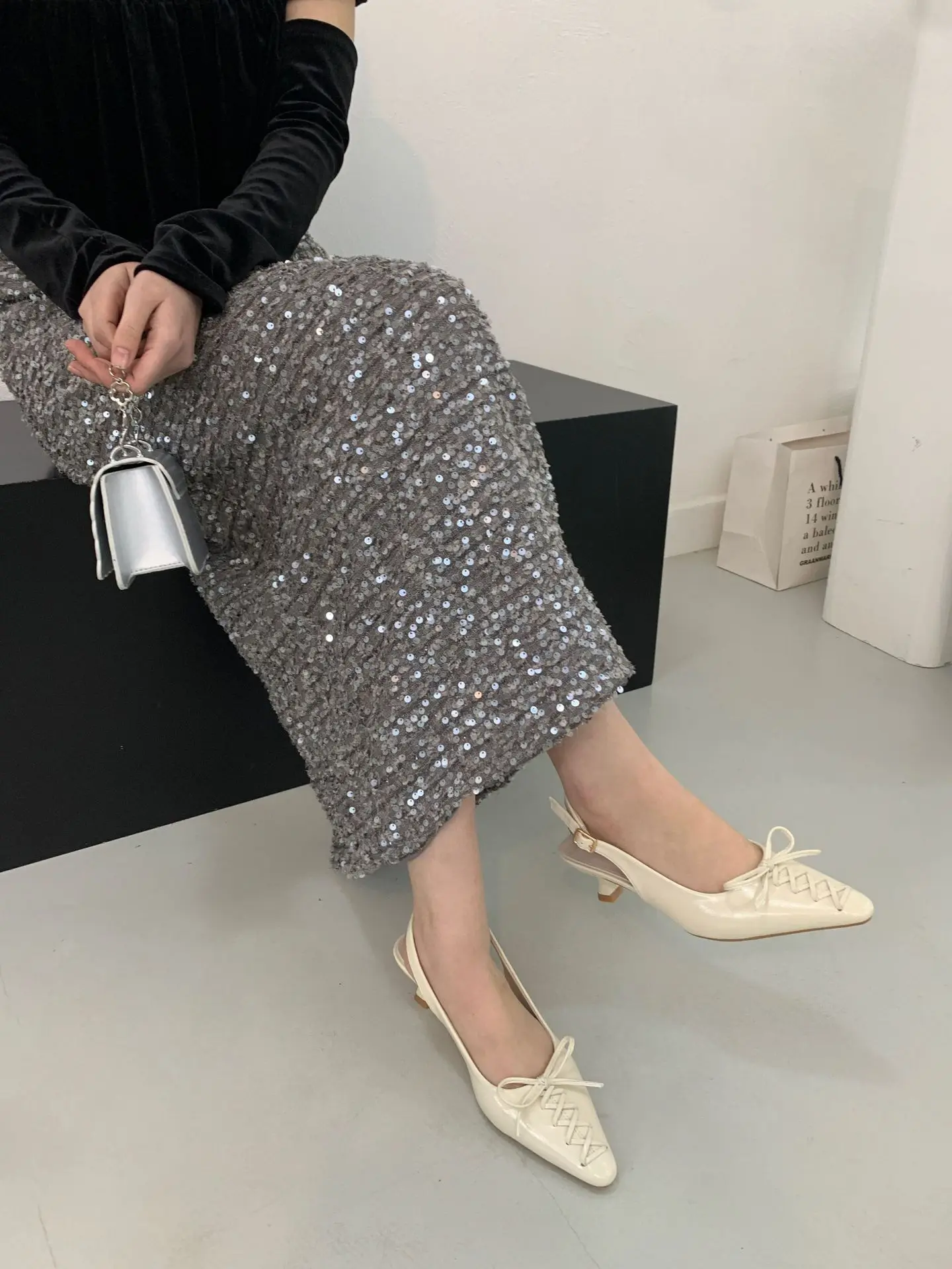 ADVBRIDGE - New Designer Sandals for Women Summer Slingback High Heels Dress Shoes Cross-tied Shallow Fashion Low Heel Mules Pumps Women