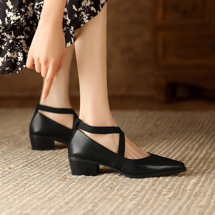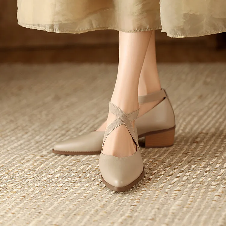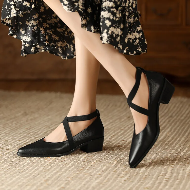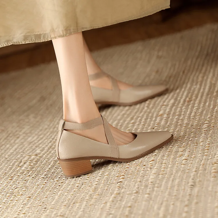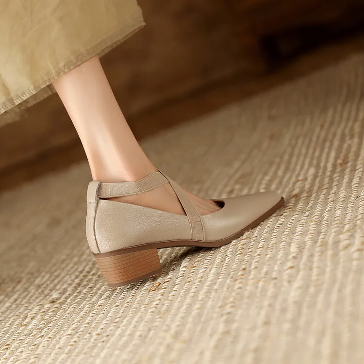 Advbridge New Fashion Genuine Leather Women Pumps Pointed Toe Summer Shoes Chunky Heels Shoes for Women Handmade Zapatos De Mujer