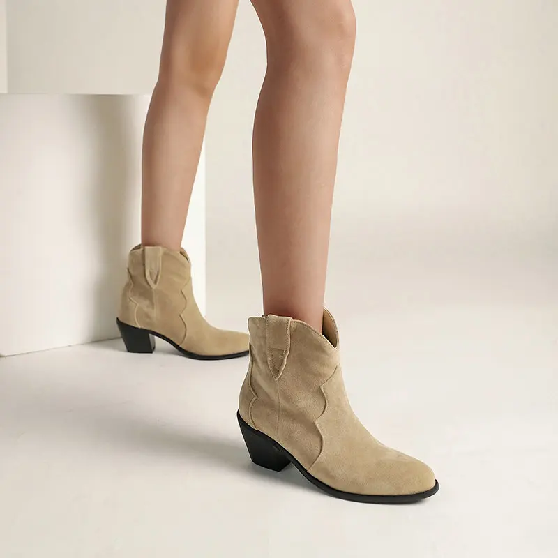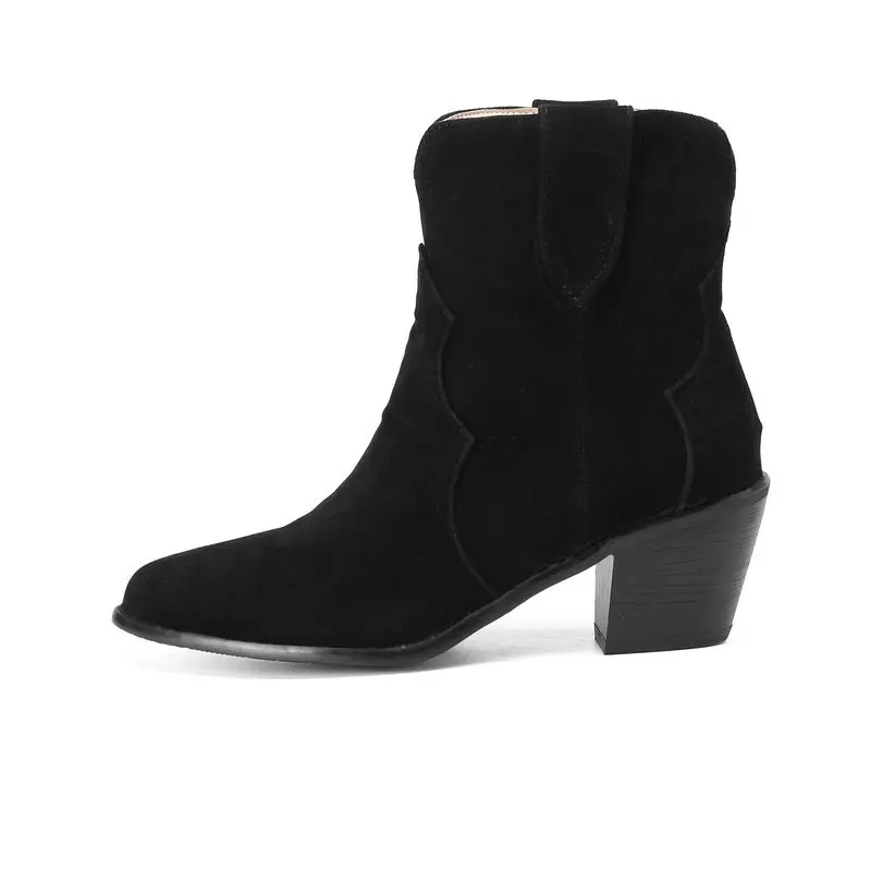 Advbridge New Women Western Ankle Boots Female Fashion Platform Pointed Toe Designer Shoes Slip-On High Heels Ladies Retro Pumps