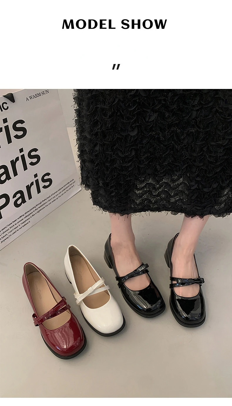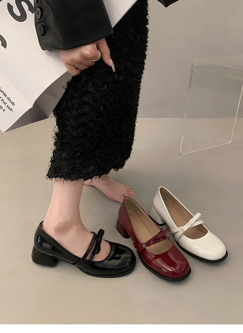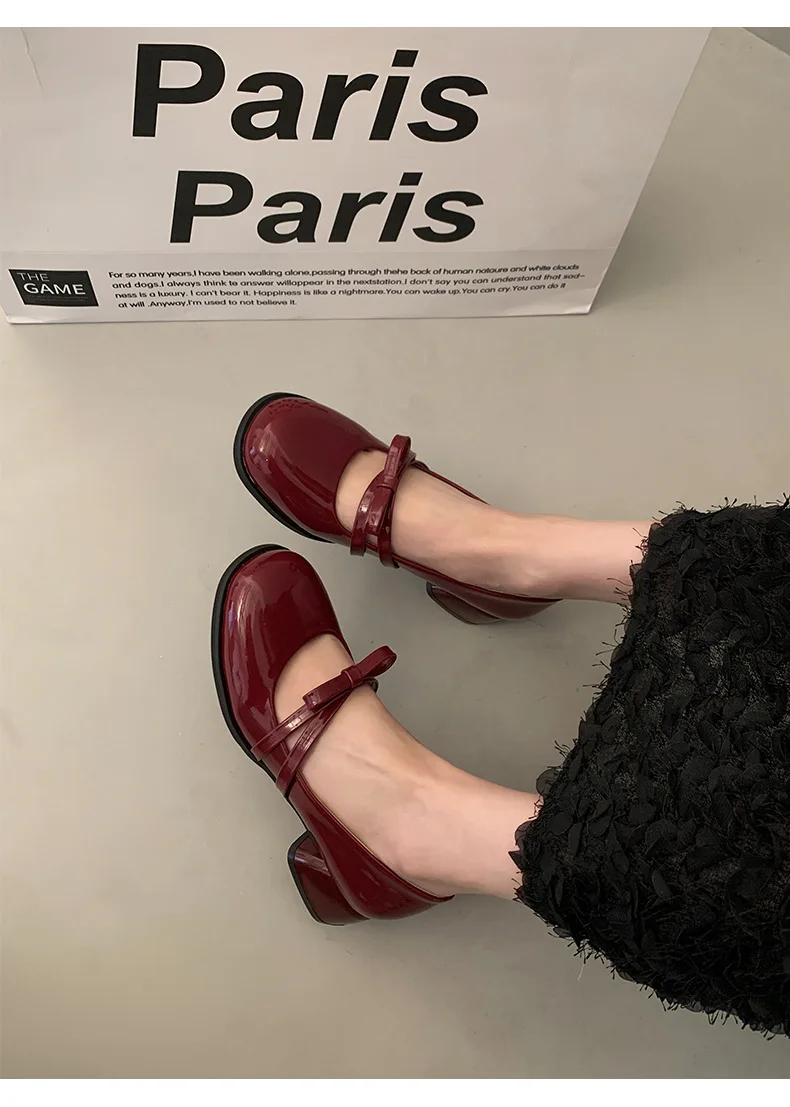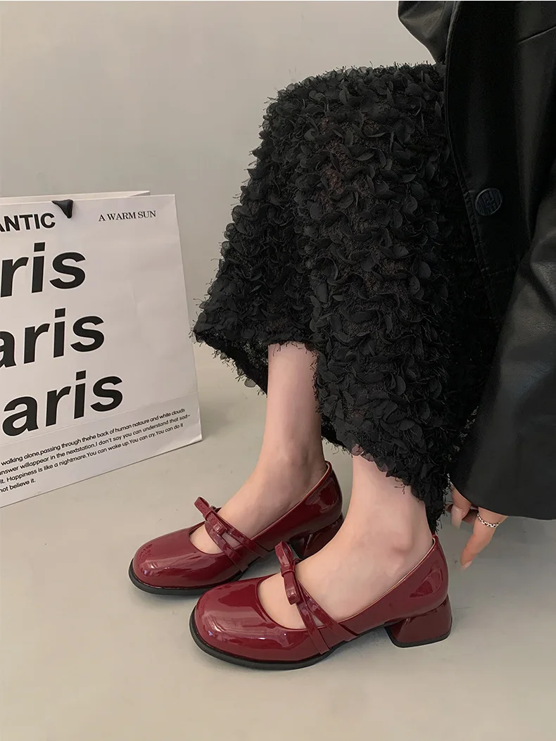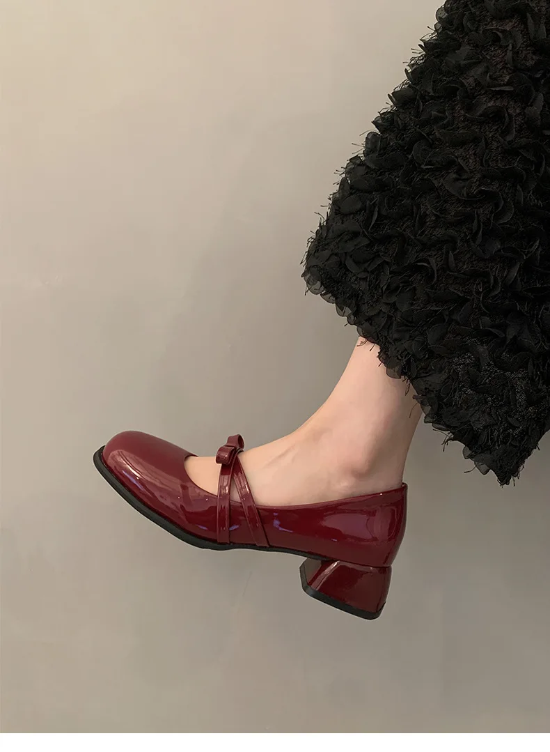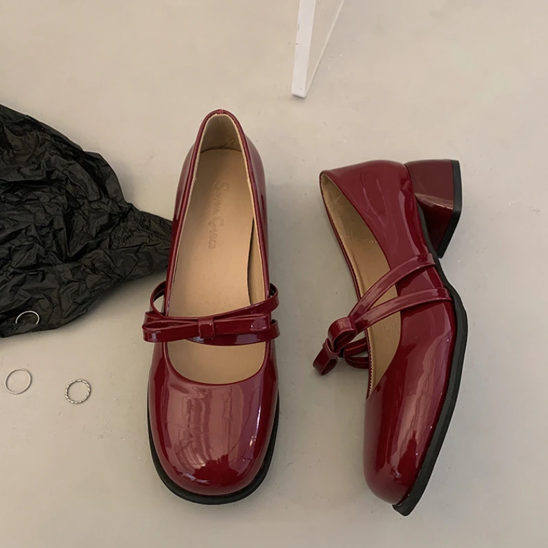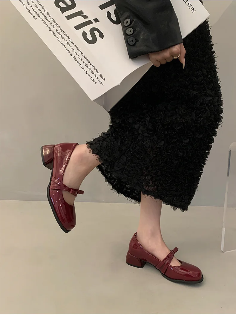 Advbridge Red Vintage High Heeled Leather Shoes Women New Spring Summer Thick Heel Mary Jane Pumps Elegant Woman Shoes with Low Heels