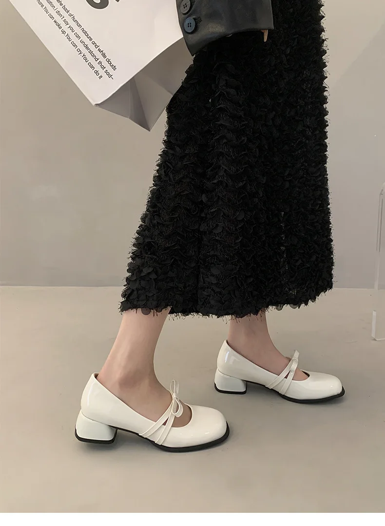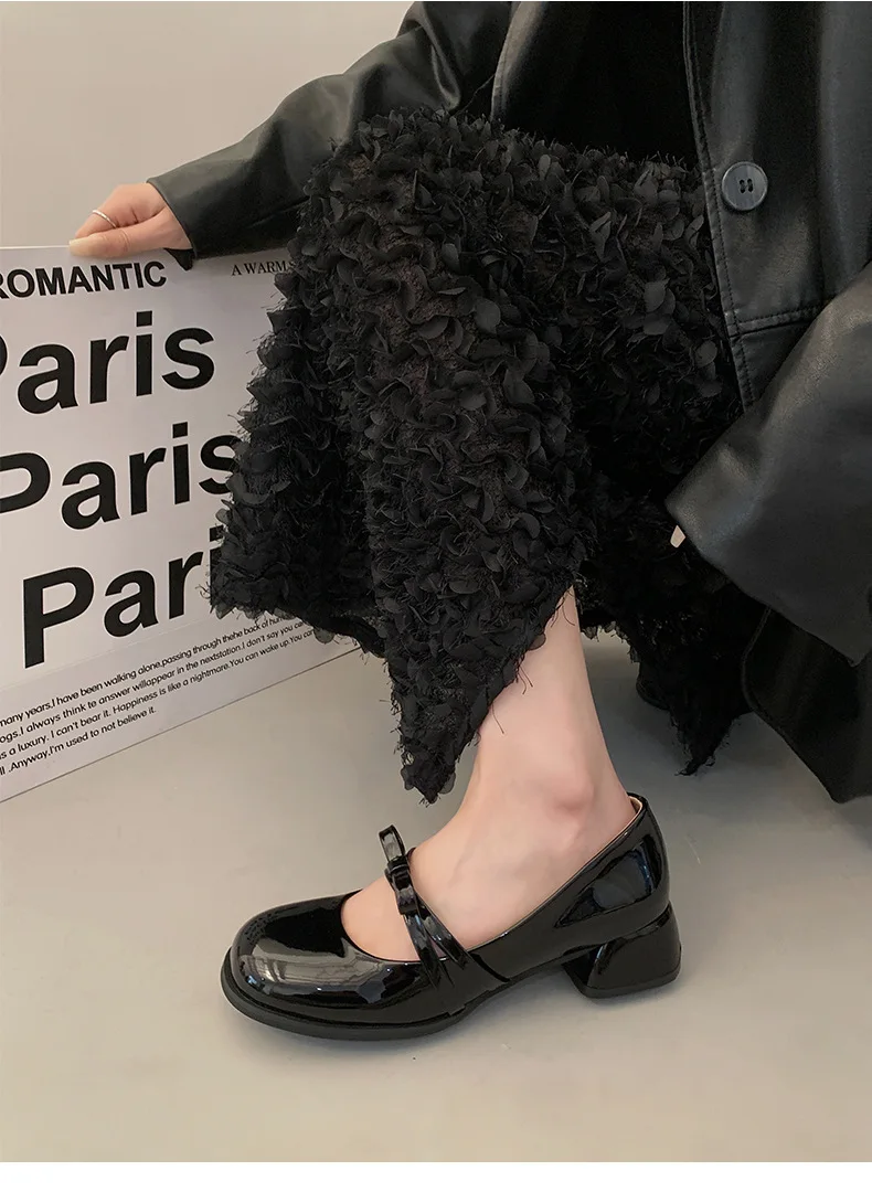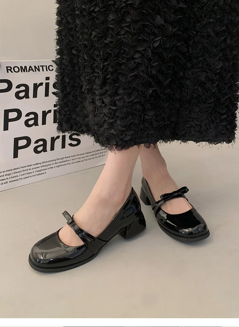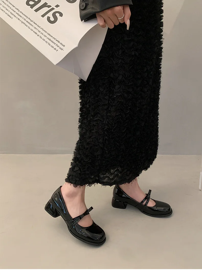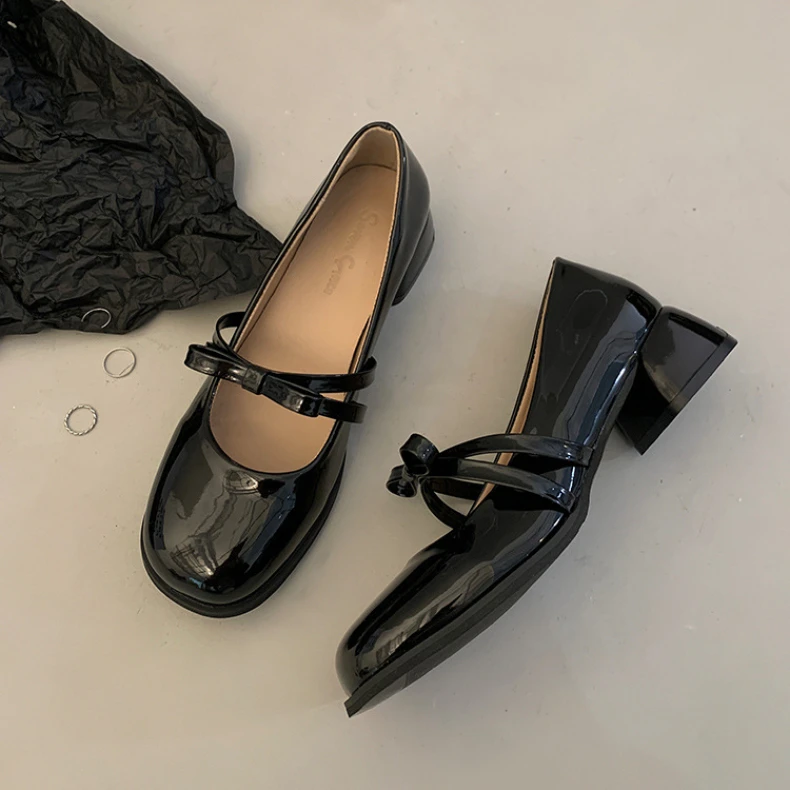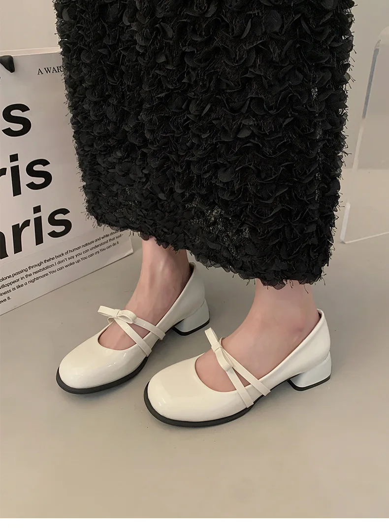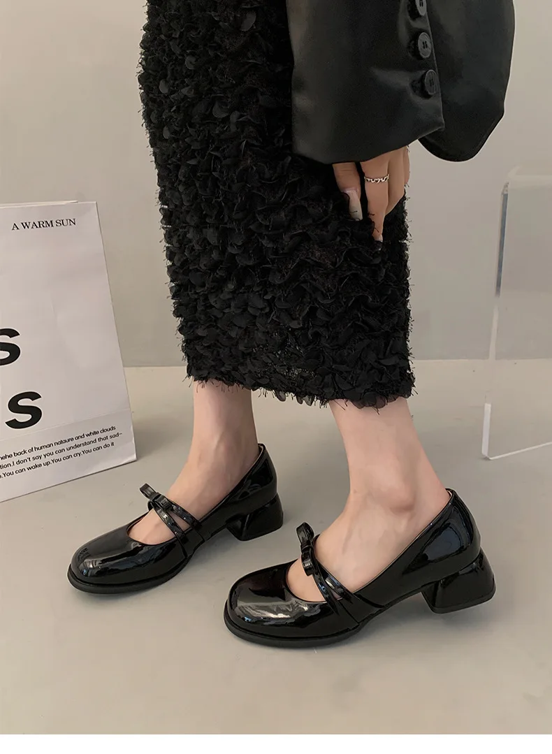 Advbridge Red Vintage High Heeled Leather Shoes Women New Spring Summer Thick Heel Mary Jane Pumps Elegant Woman Shoes with Low Heels
