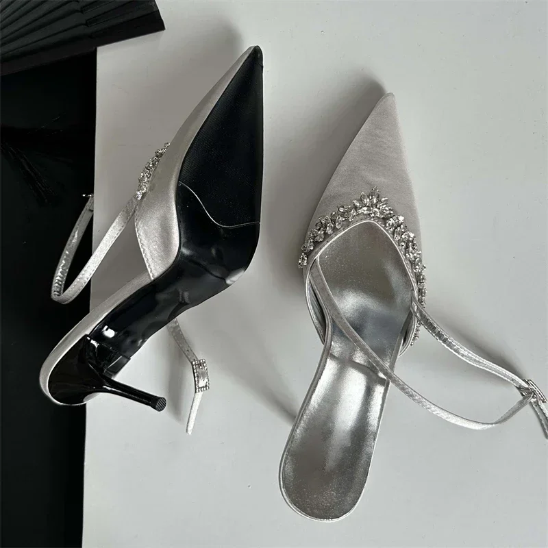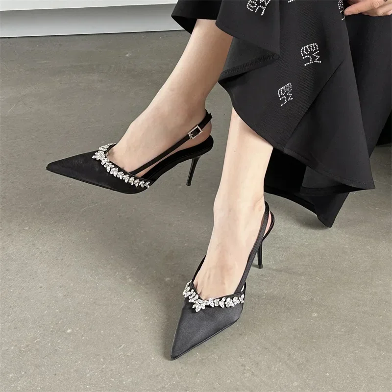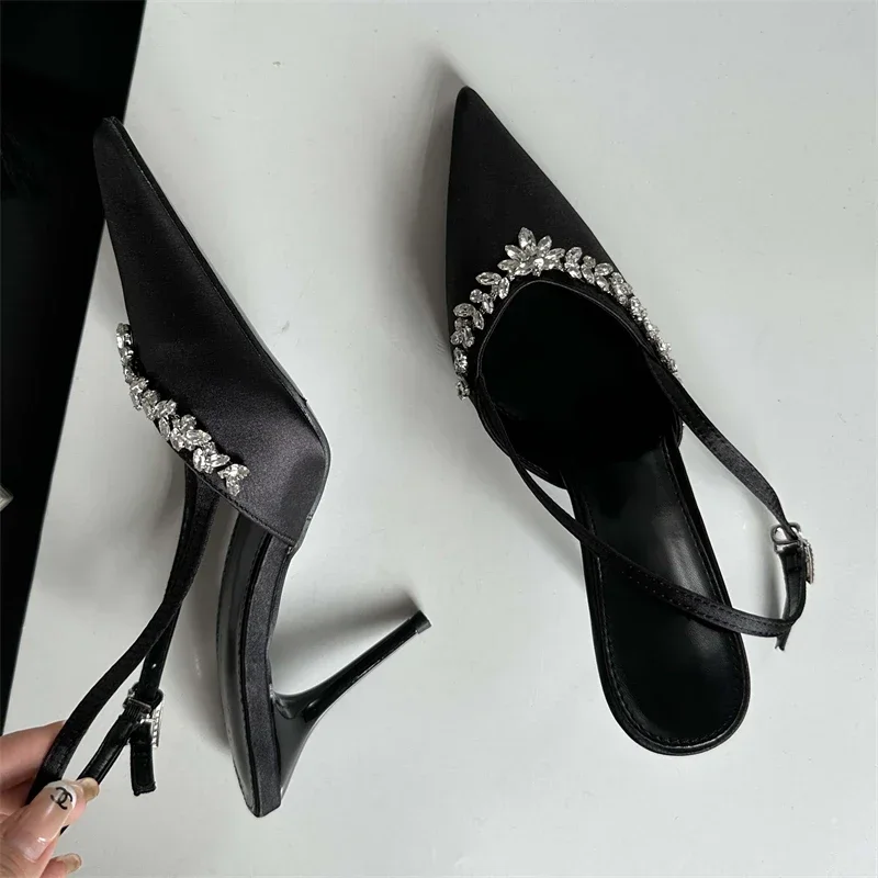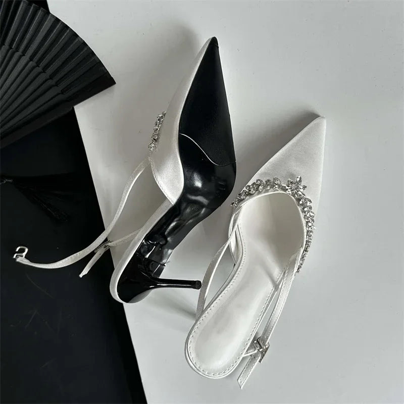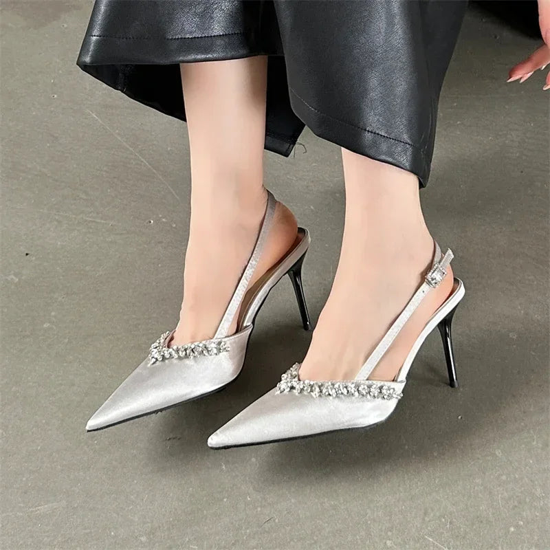 ADVBRIDGE - Satin CRYSTAL Rhinestone Women Pumps Fashion Slingbacks Buckle Strap Bridal Thin Heels Shoes Zapatillas De Mujer