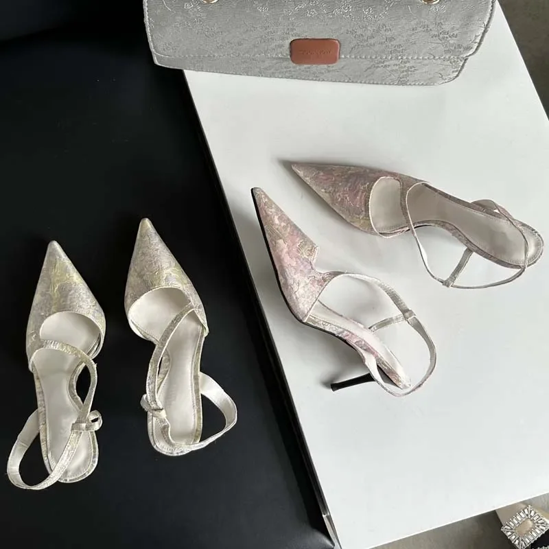 Advbridge Sexy Elegant Flower Women Pumps Sandals Thin Heels Shoes 2024 Spring Pointed Toe Shallow Slingback Mules Tacones Mujer