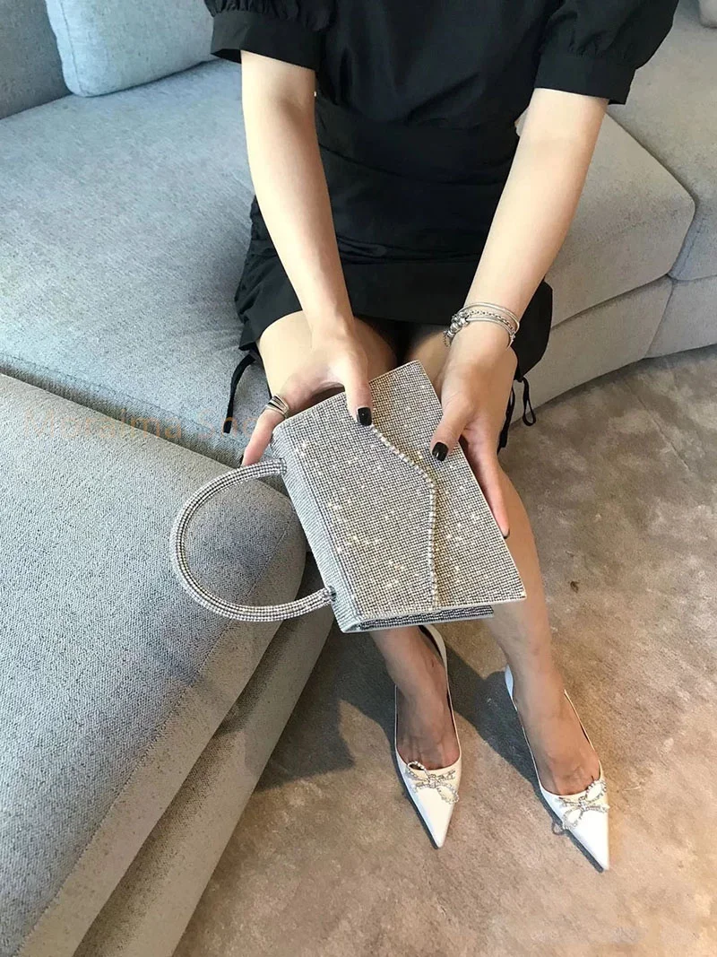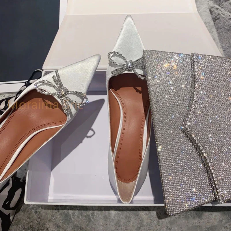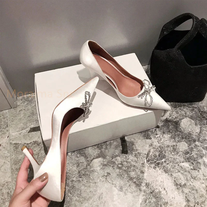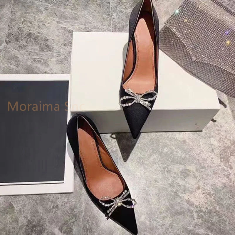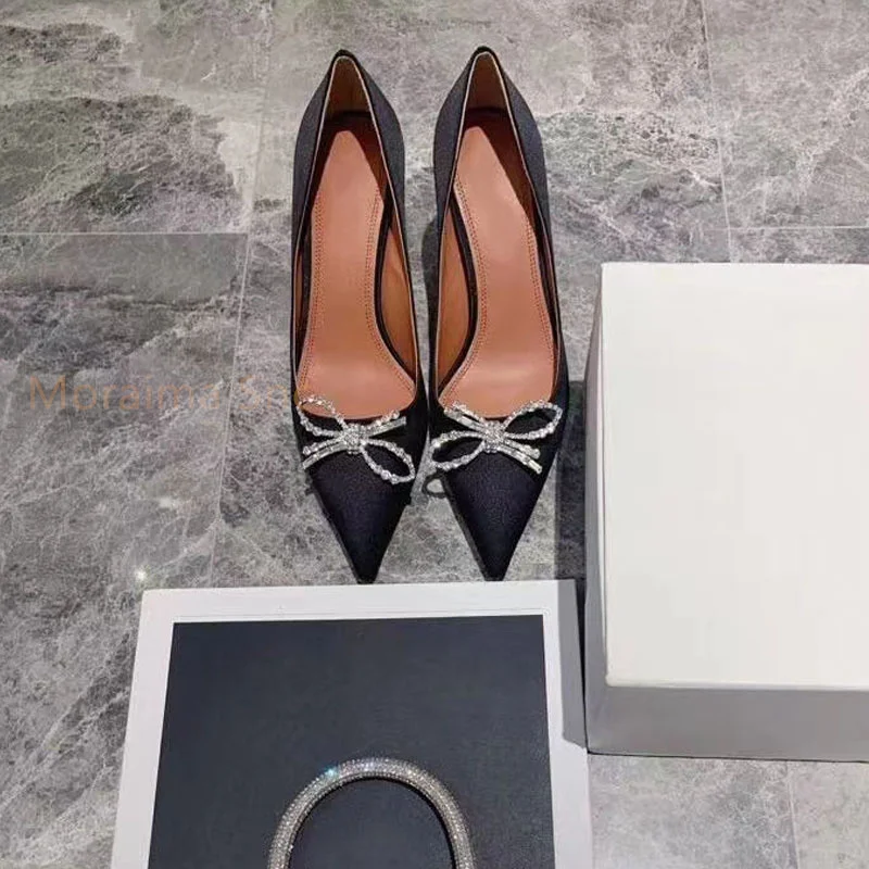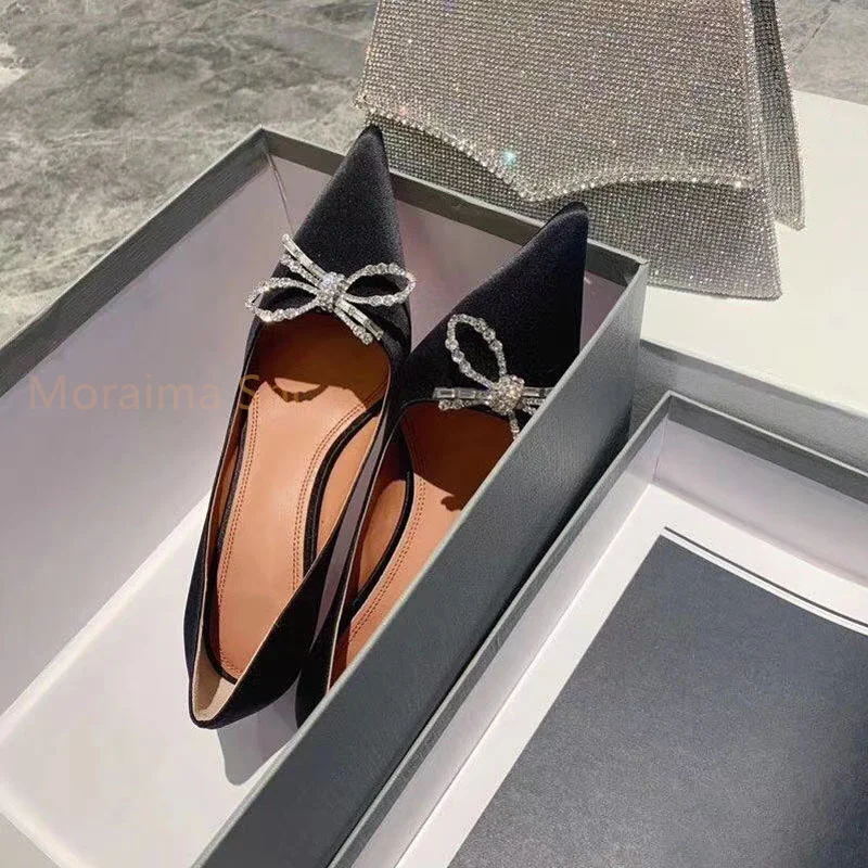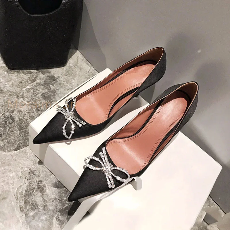 Advbridge Silk Pointed Toe Women Pumps Shallow Black High -Heeled Shoes Rhinestone Butterfly Knot Office Lady Casual Shoes Spring Autumn