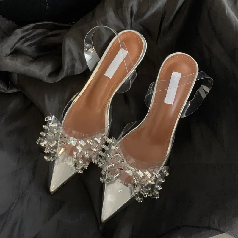 ADVBRIDGE - Spring Butterfly-knot Crystal Women Pumps PVC Transparent Heels Elegant Pointed Toe Party Prom Mules Shoes Zapatos Mujer