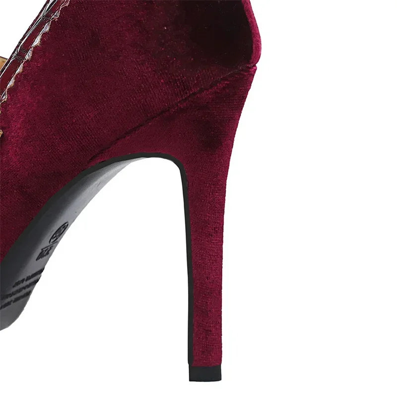 Advbridge Women 10cm High Heels Pointed Toe Pumps Fashion Lady Stiletto High Heels Burgundy Wedding Bridal Velvet Mary Janes Party Shoes