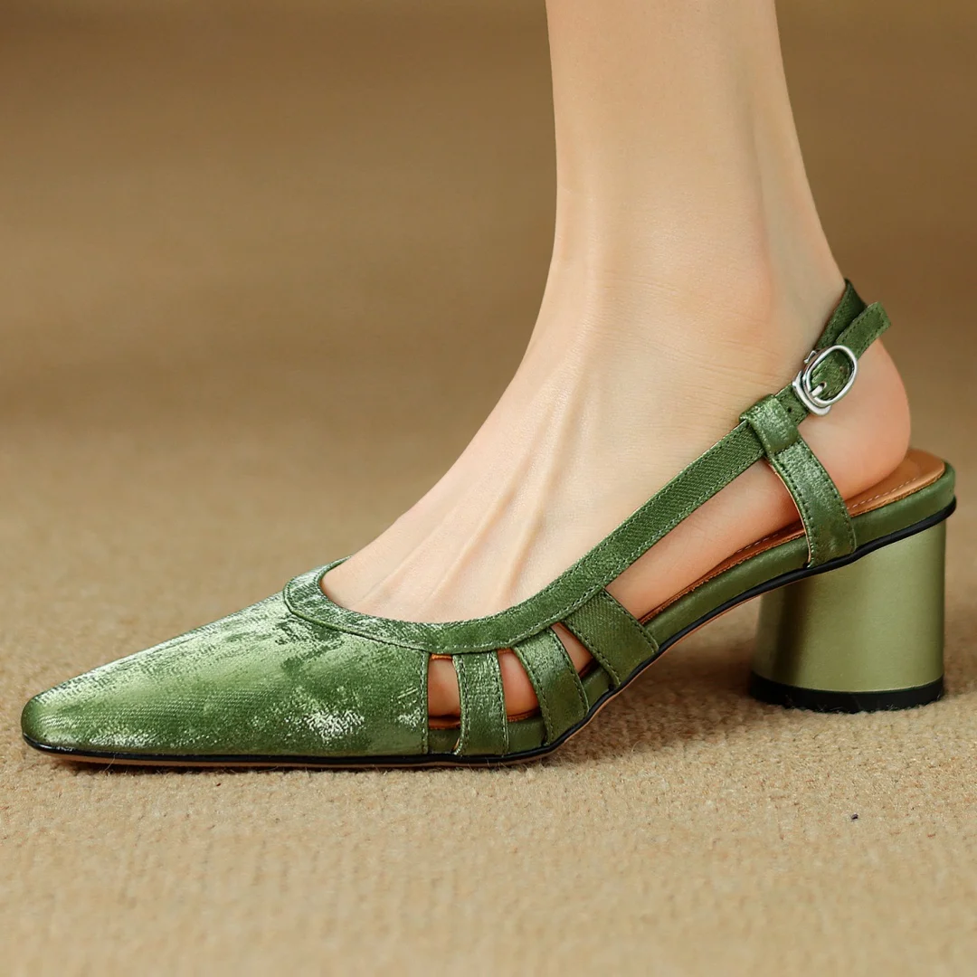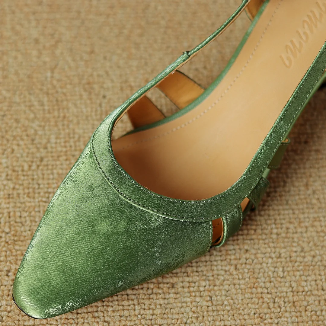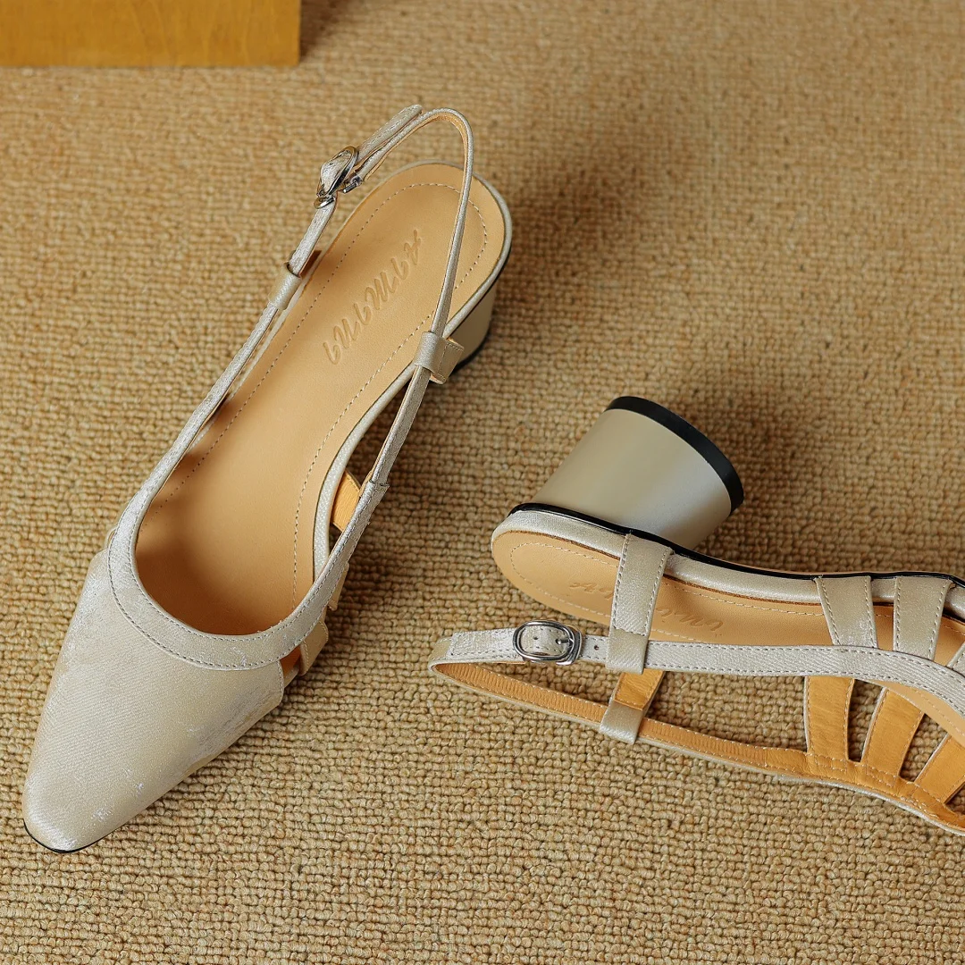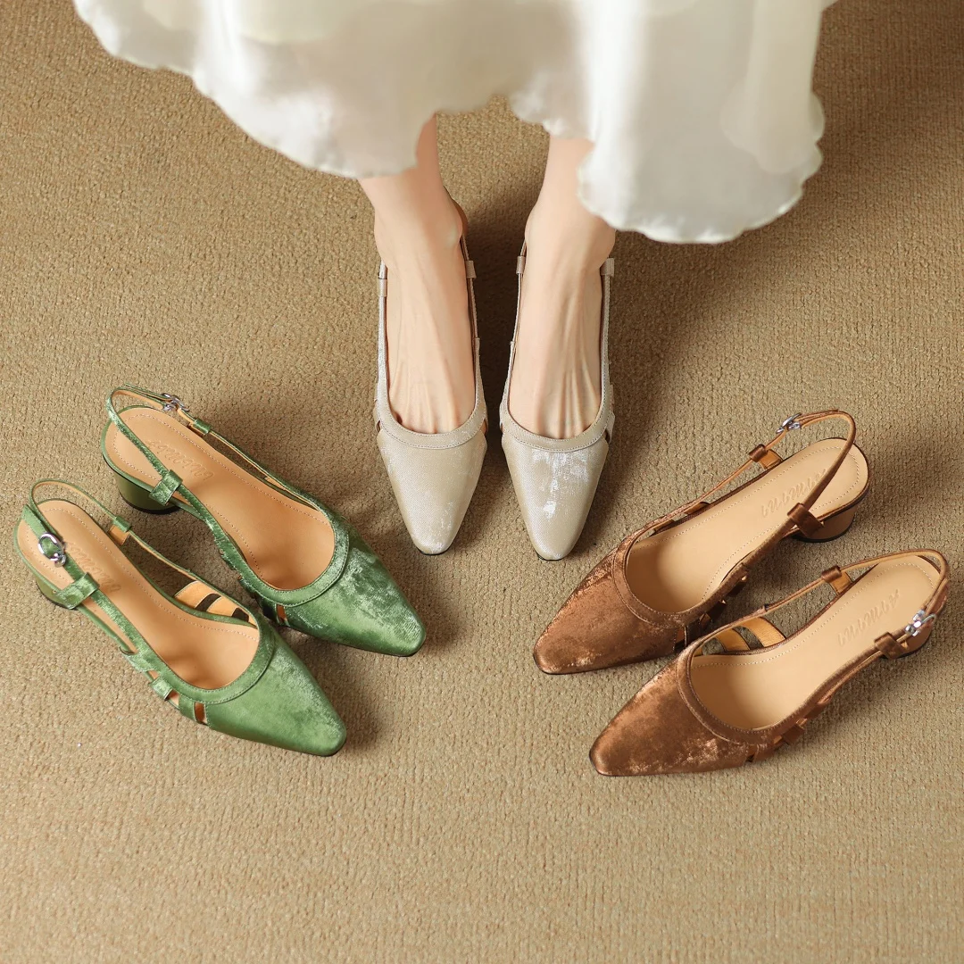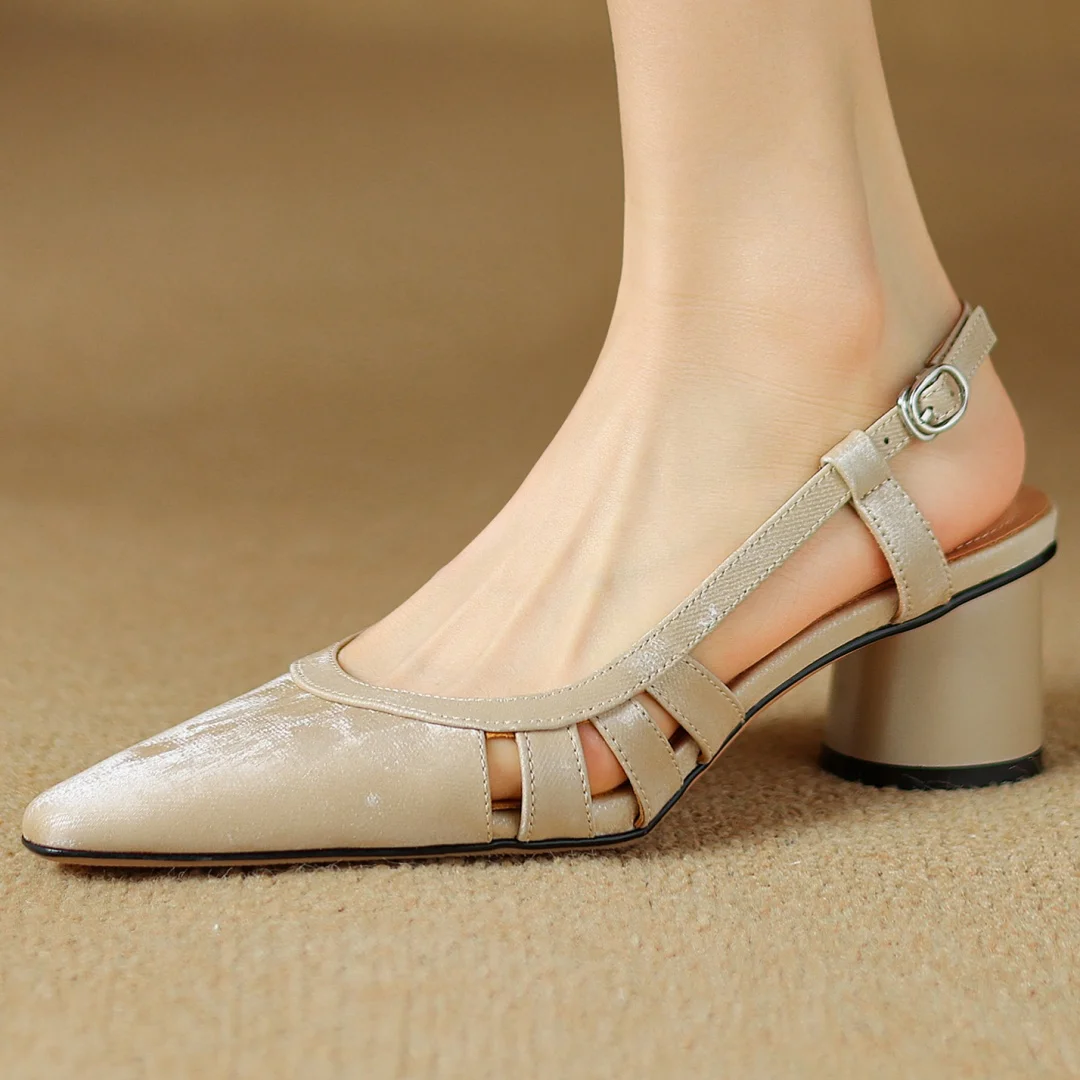 ADVBRIDGE - Women's leather slingback 5.5cm round med heel pointed toe sandals elegant ladies slim daily summer dress pumps shoes