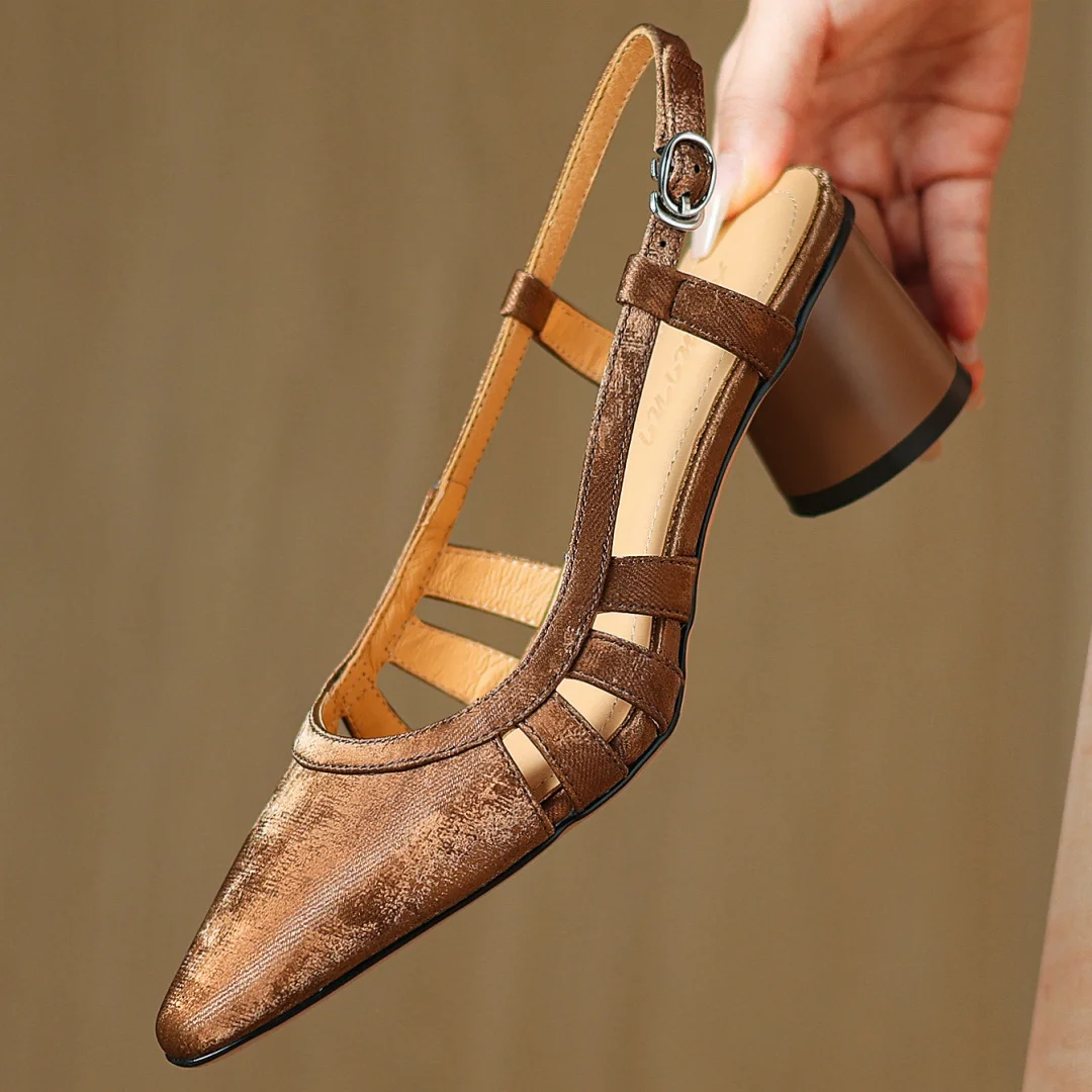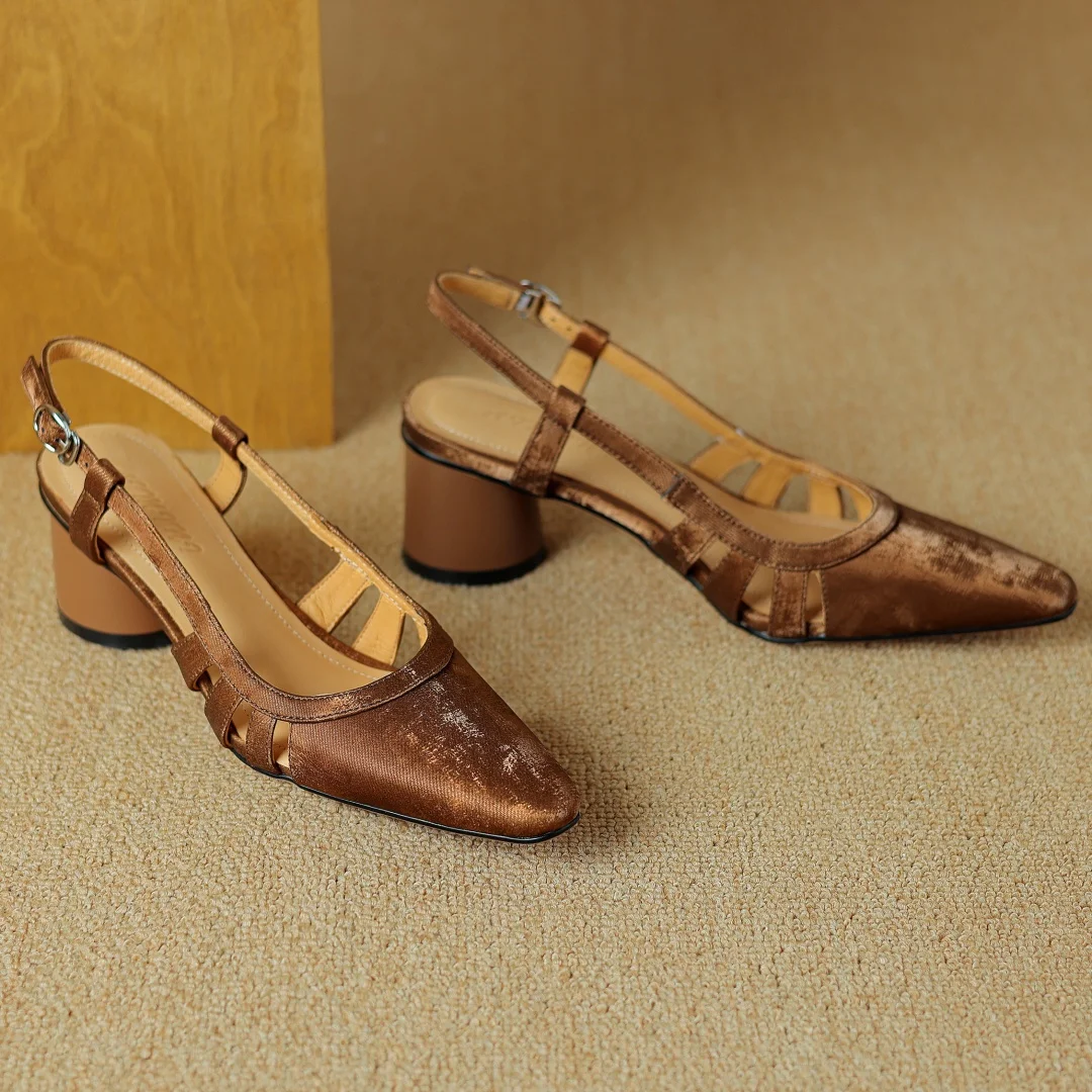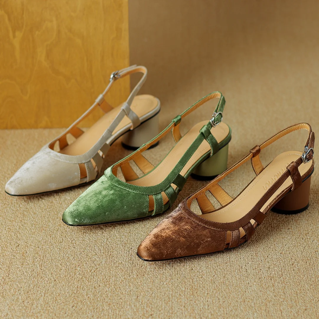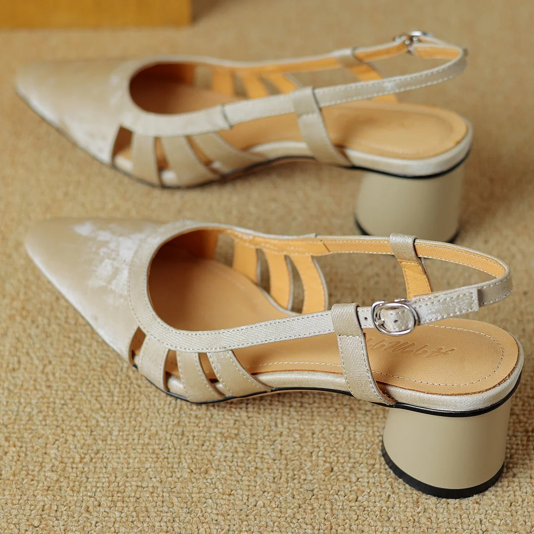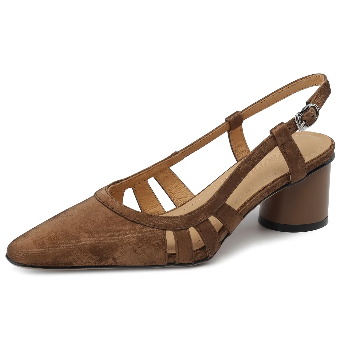 ADVBRIDGE - Women's leather slingback 5.5cm round med heel pointed toe sandals elegant ladies slim daily summer dress pumps shoes