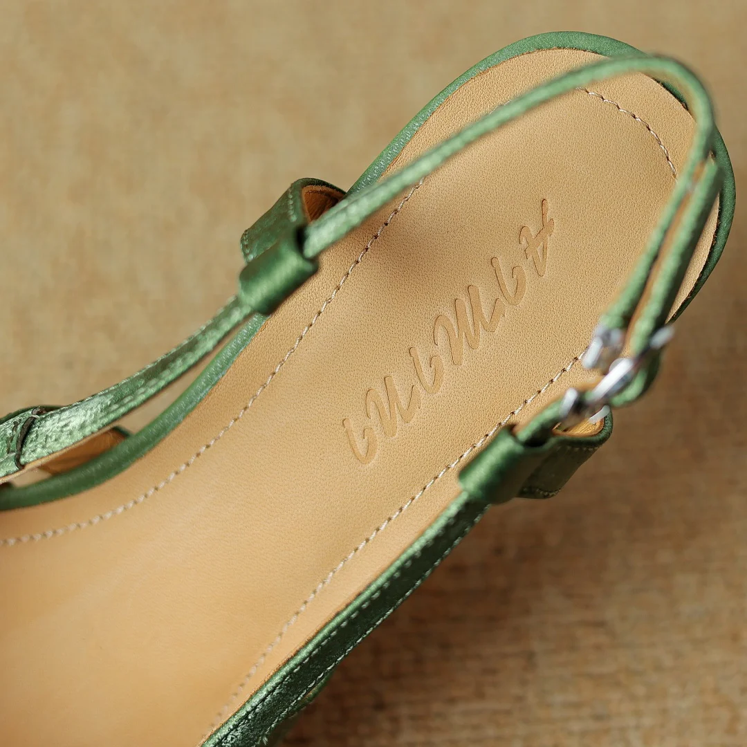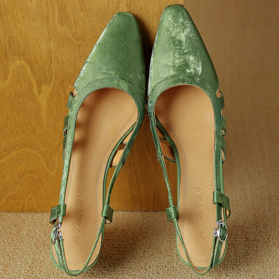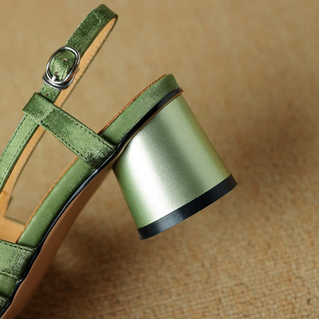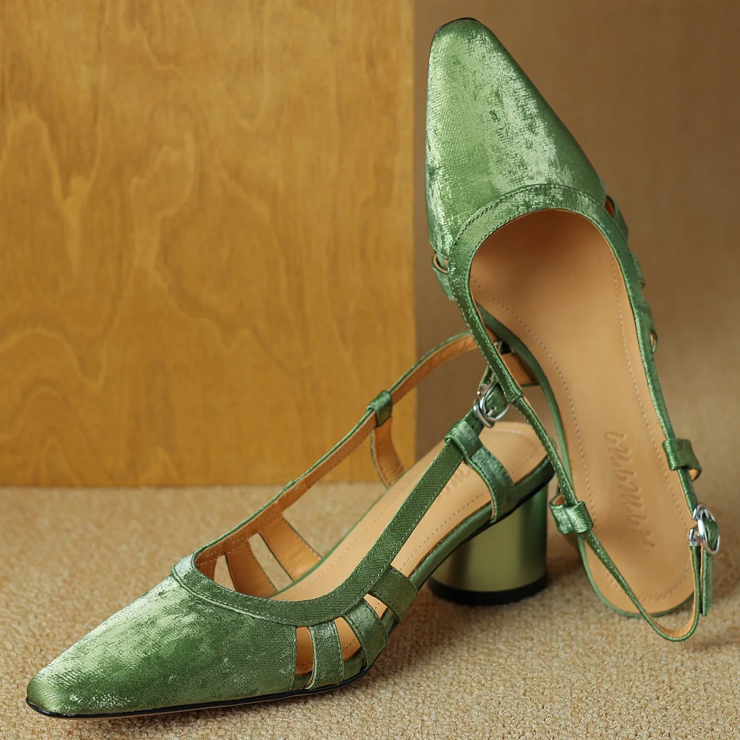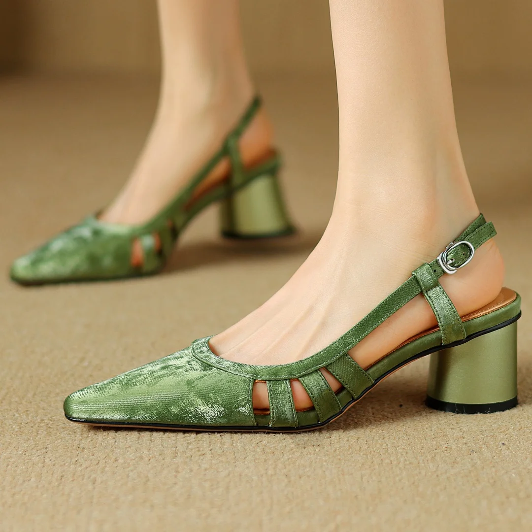 ADVBRIDGE - Women's leather slingback 5.5cm round med heel pointed toe sandals elegant ladies slim daily summer dress pumps shoes