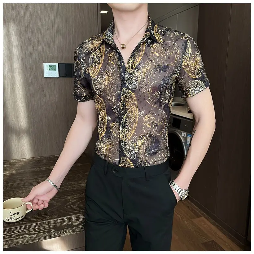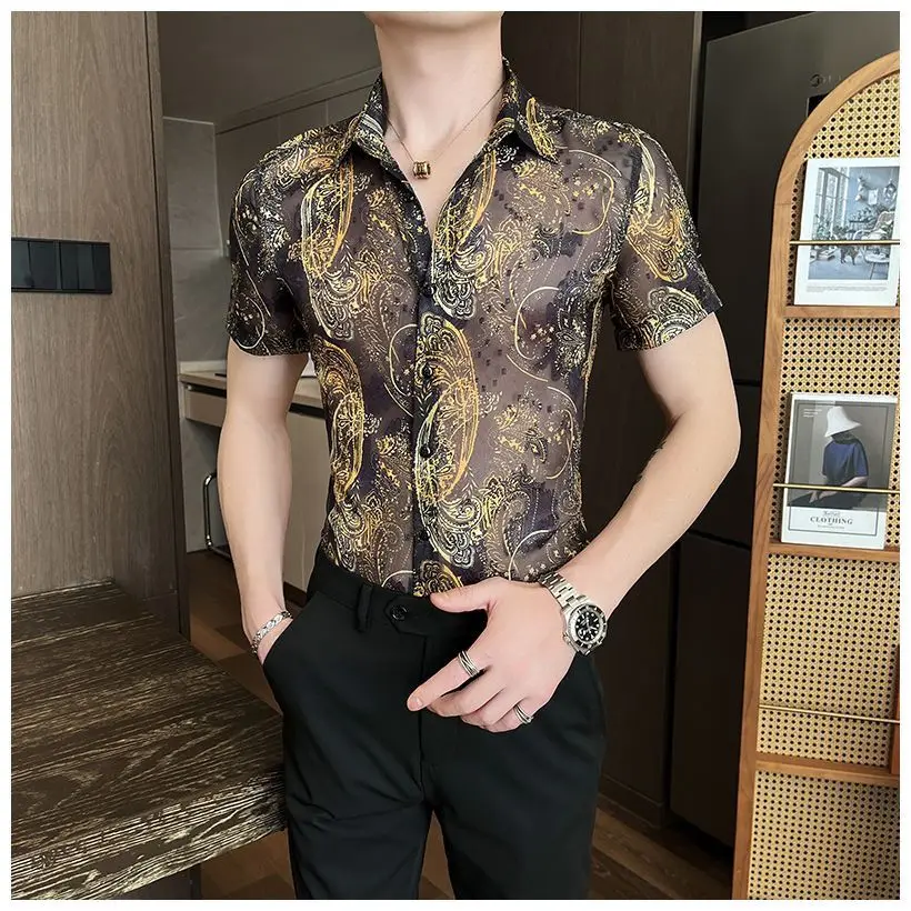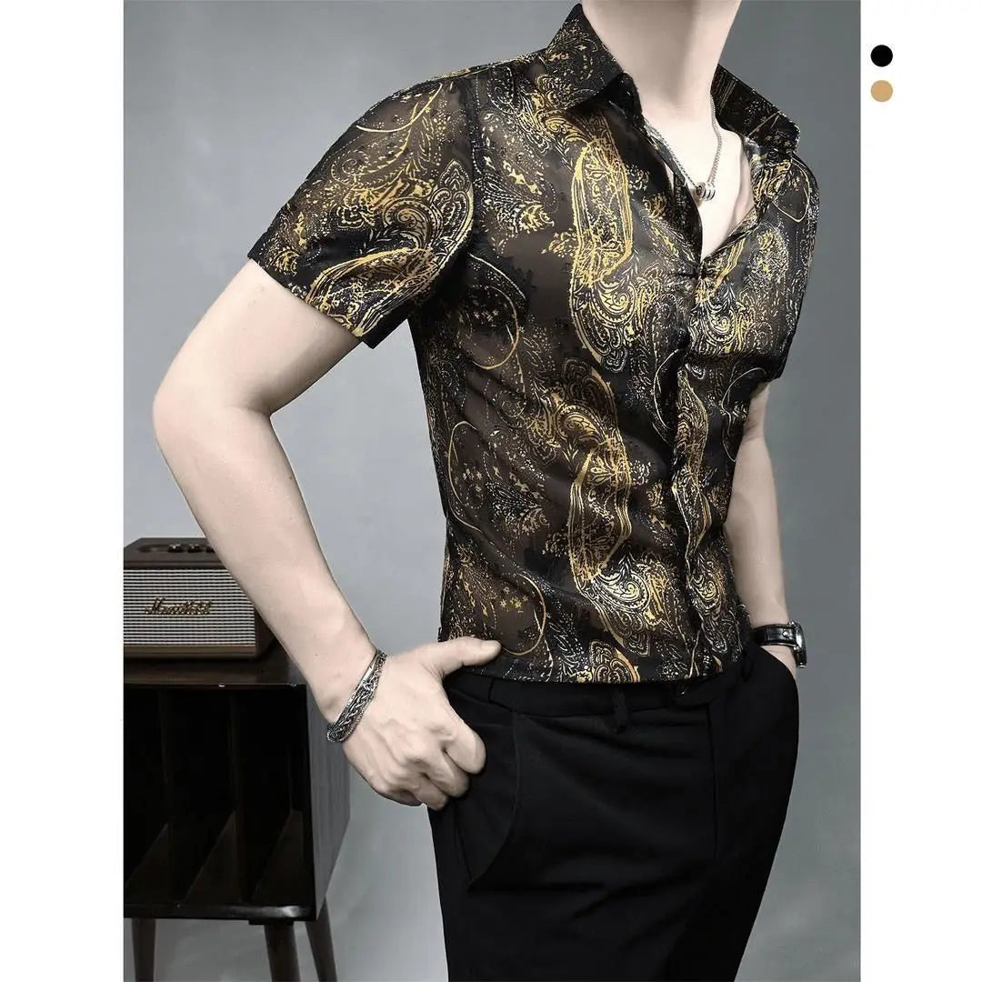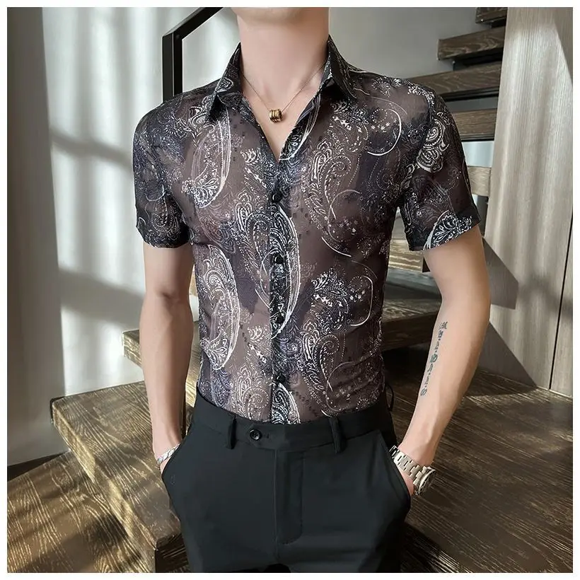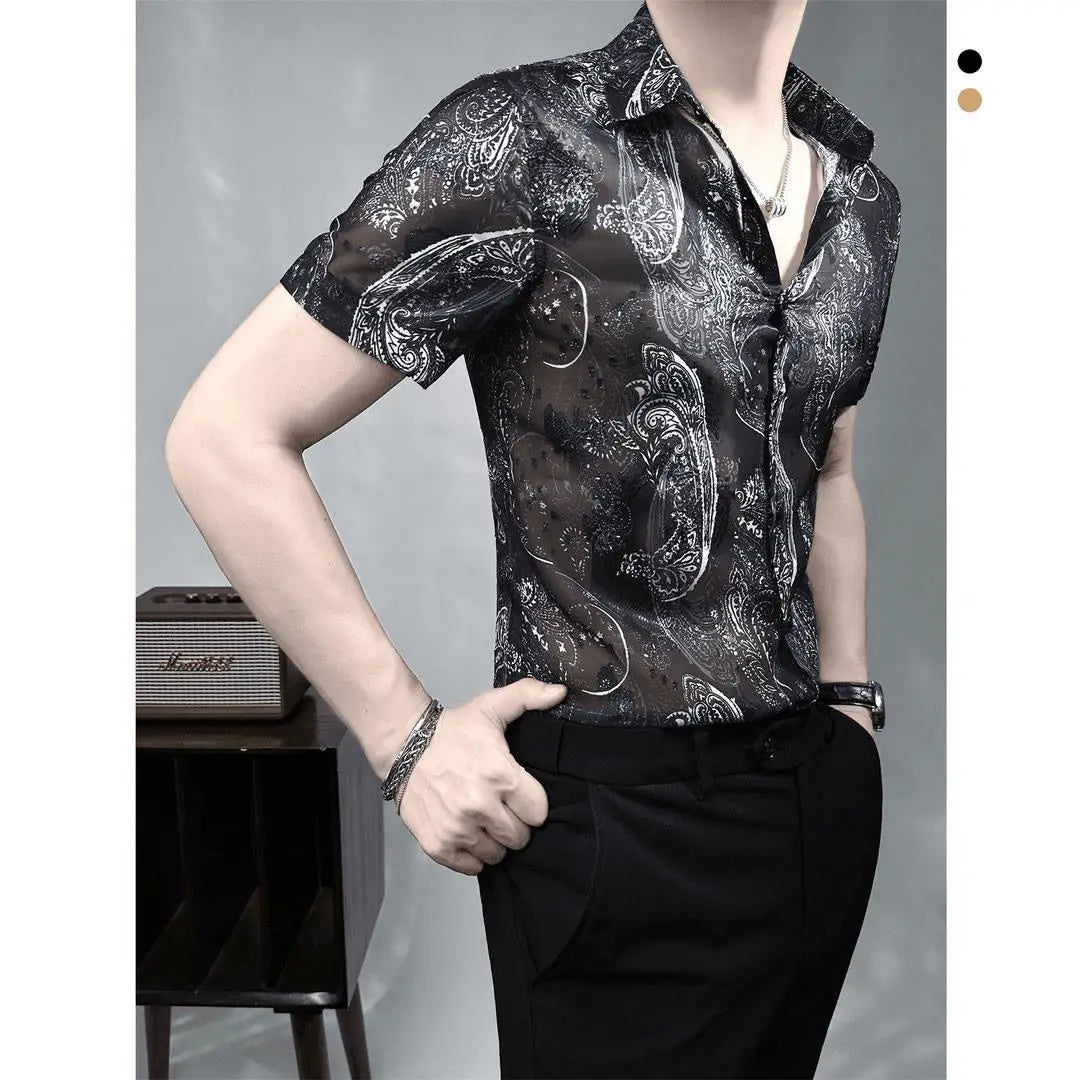 Advbridg  Men's short-sleeved shirt, ice silk fabric, thin and new style high-end casual summer printed shirt