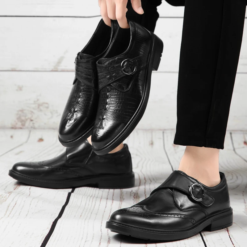Advbridge 100% Genuine Leather Men Shoes England Business Dress Casual Comfortable Dad Shoes Men Scalp Non-slip Footwear Big Size 47