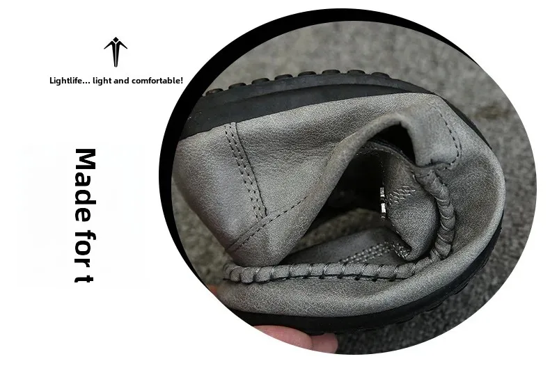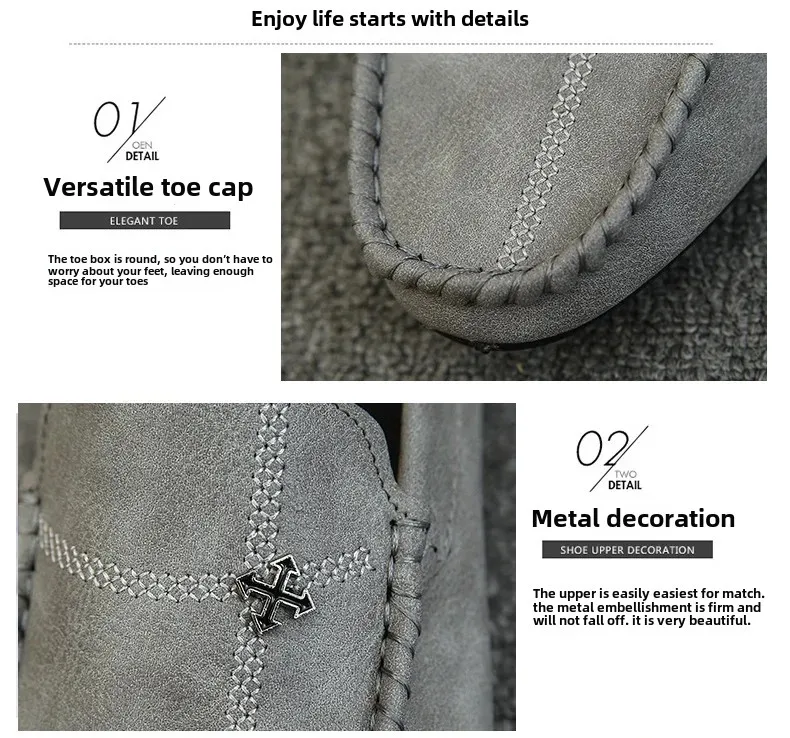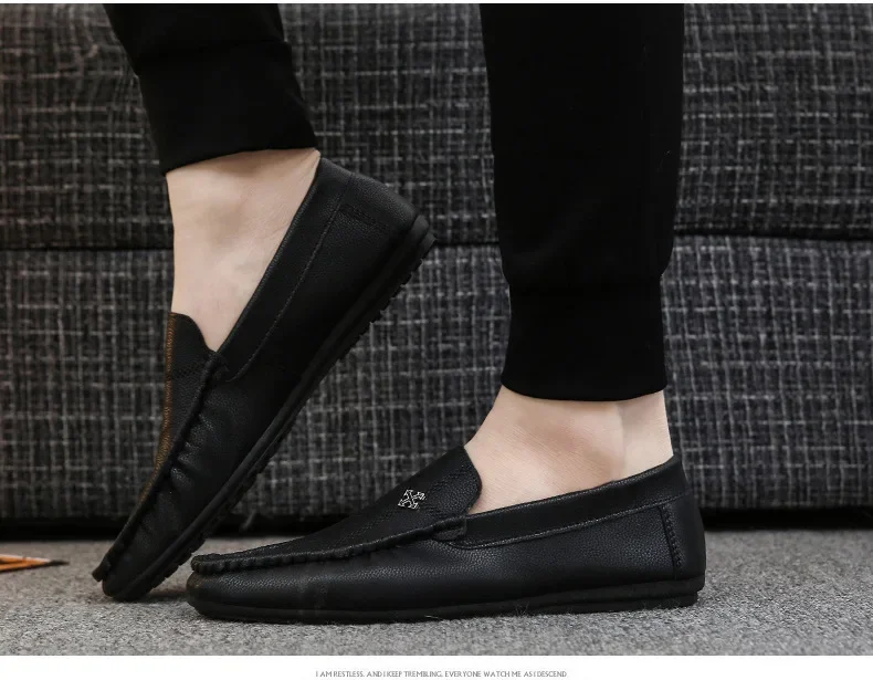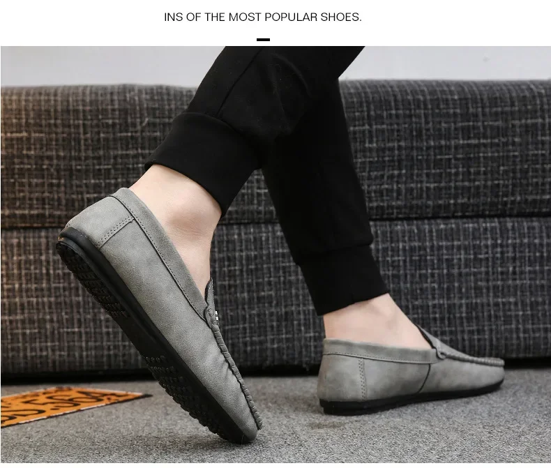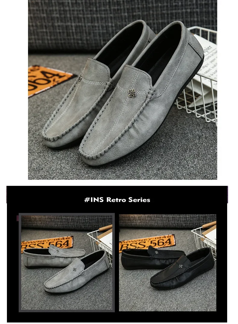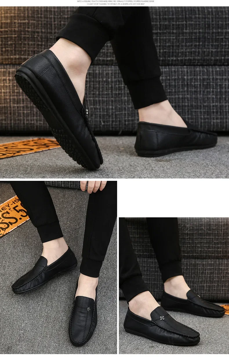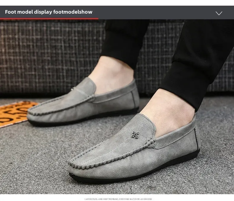 ADVBRIDGE - Casual Low-Top Men's Leather Shoes New Spring British Style Soft Sole Driving Shoes Trendy Lazy Shoes Rubber Face Material
