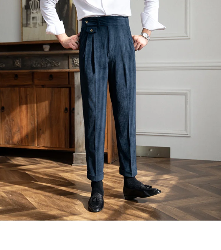 Advbridge High Quality Corduroy Trousers Pant For Man High Waist Office Dress Trouser Italian Men Busines Pant Pantalon Para Hombres