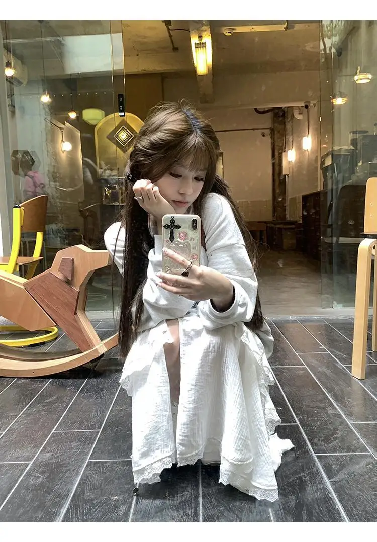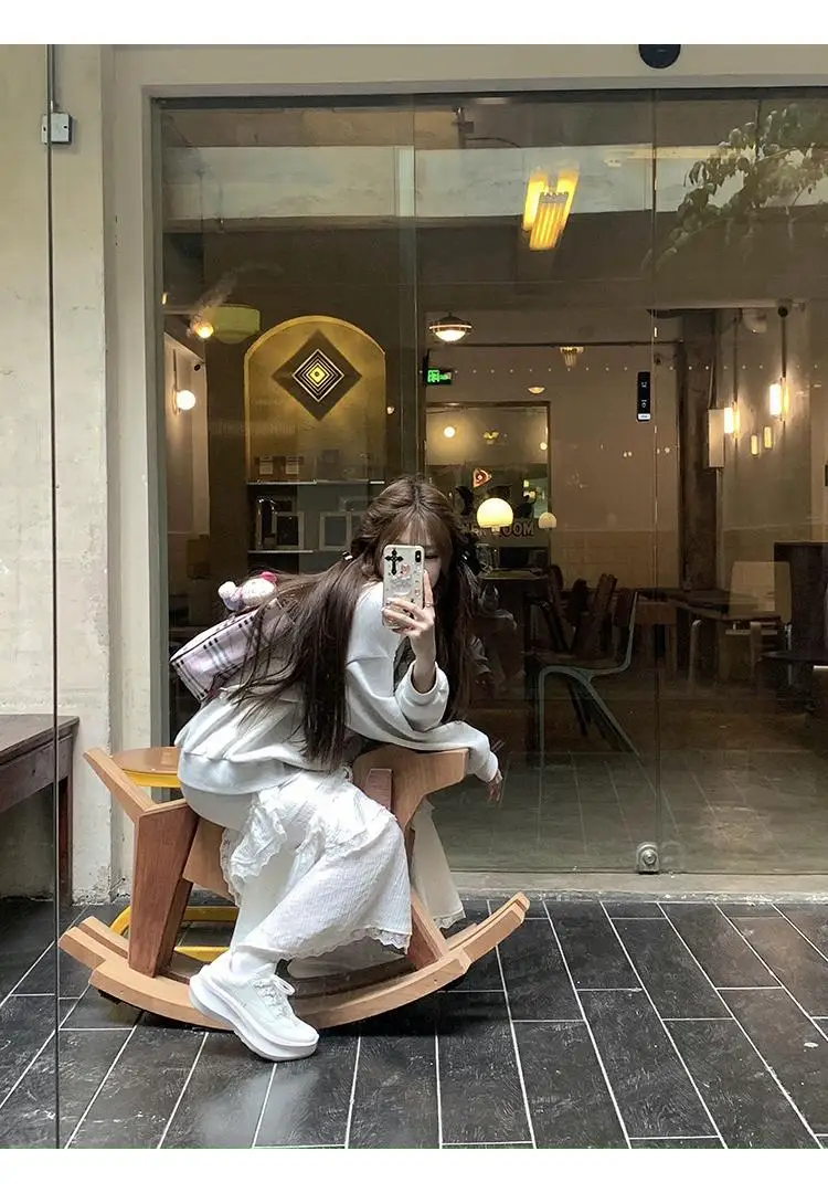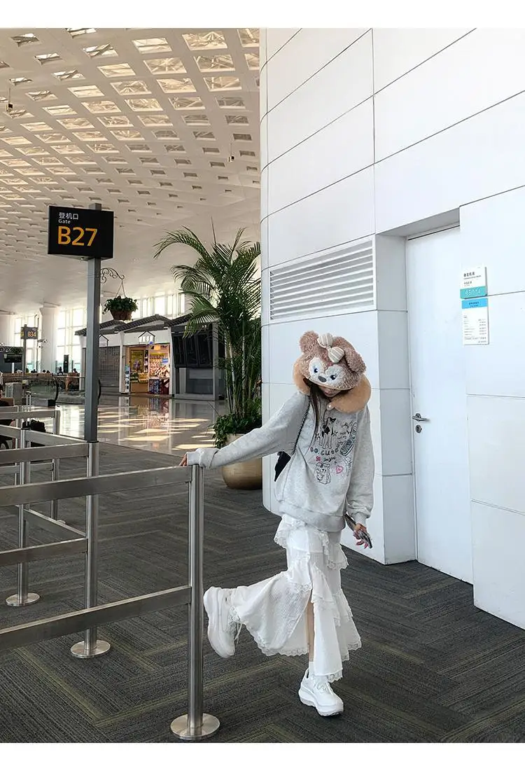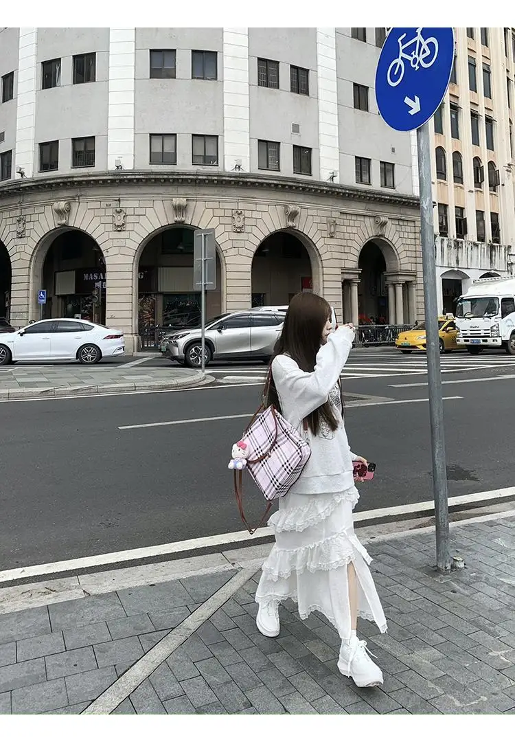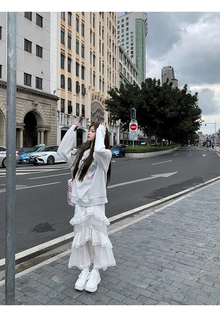 Advbridge - Irregularity Design Ruffled Edge Long Skirt Slim Waistline Skirts for Woman High Waist Lace Splicing Skirt Korean Fashion Faldas
