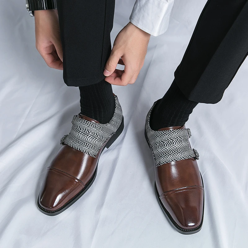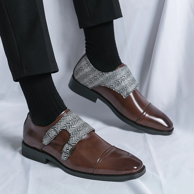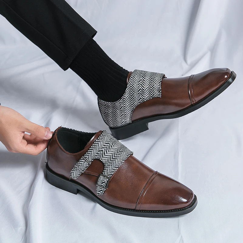 Advbridge Luxury Mens Evening Dress Social Loafer Buckle Monk Strap Casual Business Wedding Shoes for Men Gentleman Fashion Derby Shoes