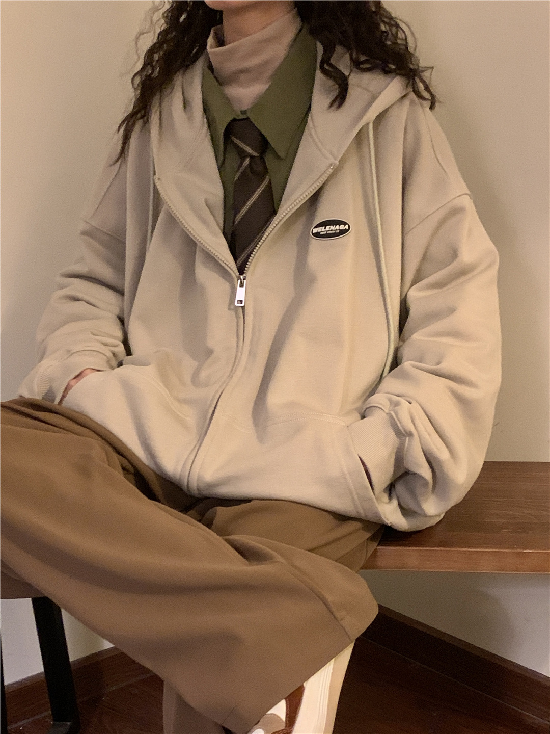 Advbridge New Spring Autumn Wear Loose Y2k Zip Up Hoodie Women American Style Oversize Lazy Casual Zipper Cardigan Sweatshirt Coat