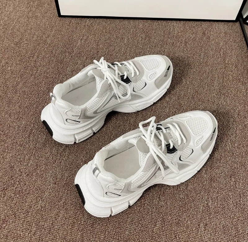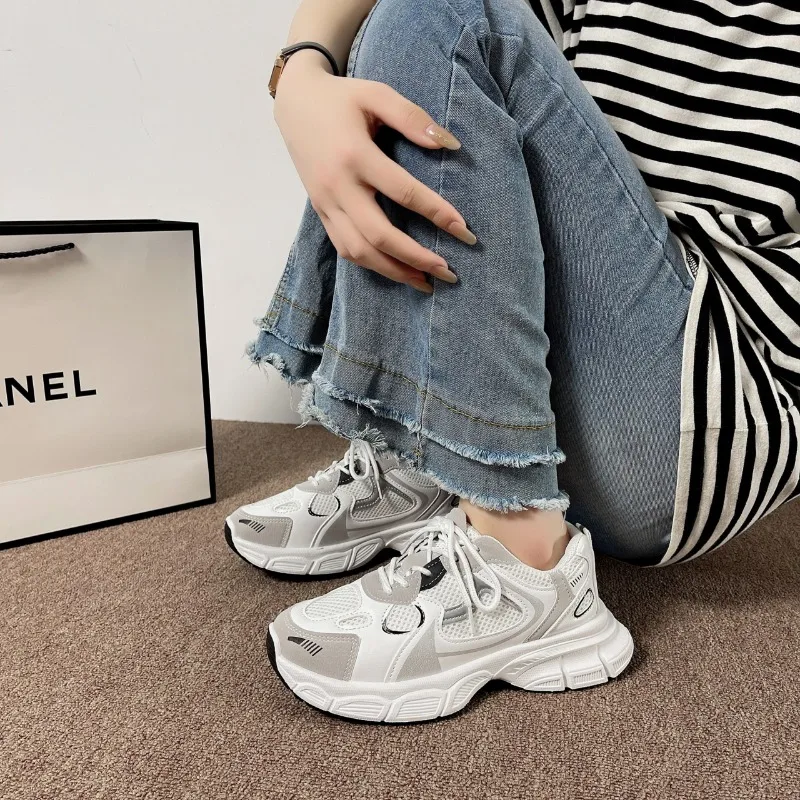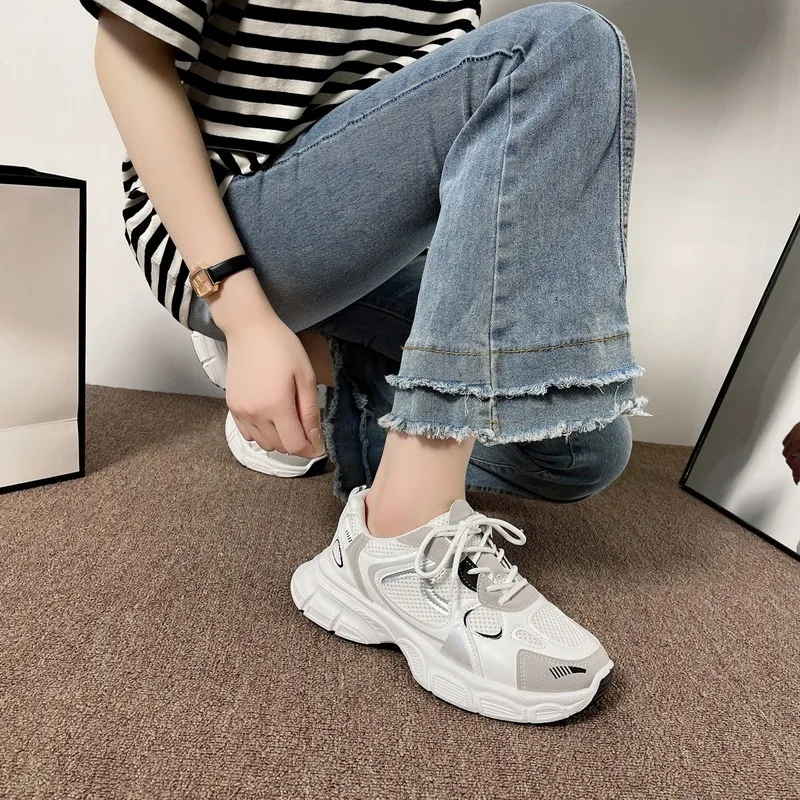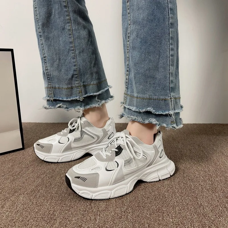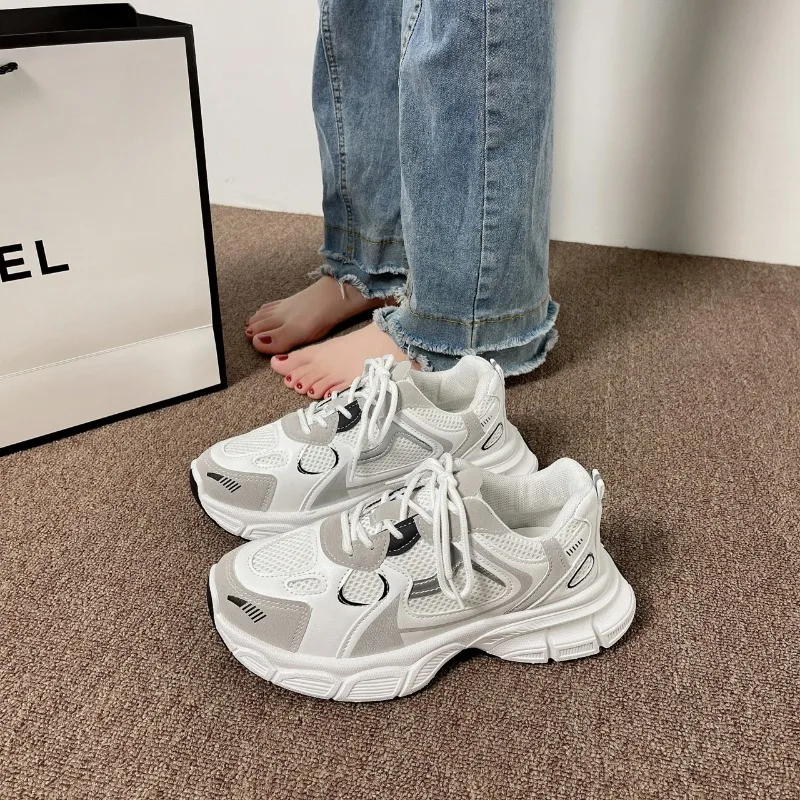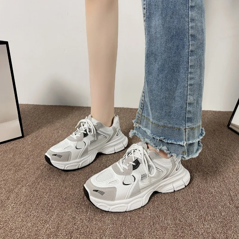ADVBRIDGE - Outdoor Leather+Mesh Breathable Chunky Jogging Sneakers Summer Women Platform Flat Shoes Woman White Casual Walking Trainers
