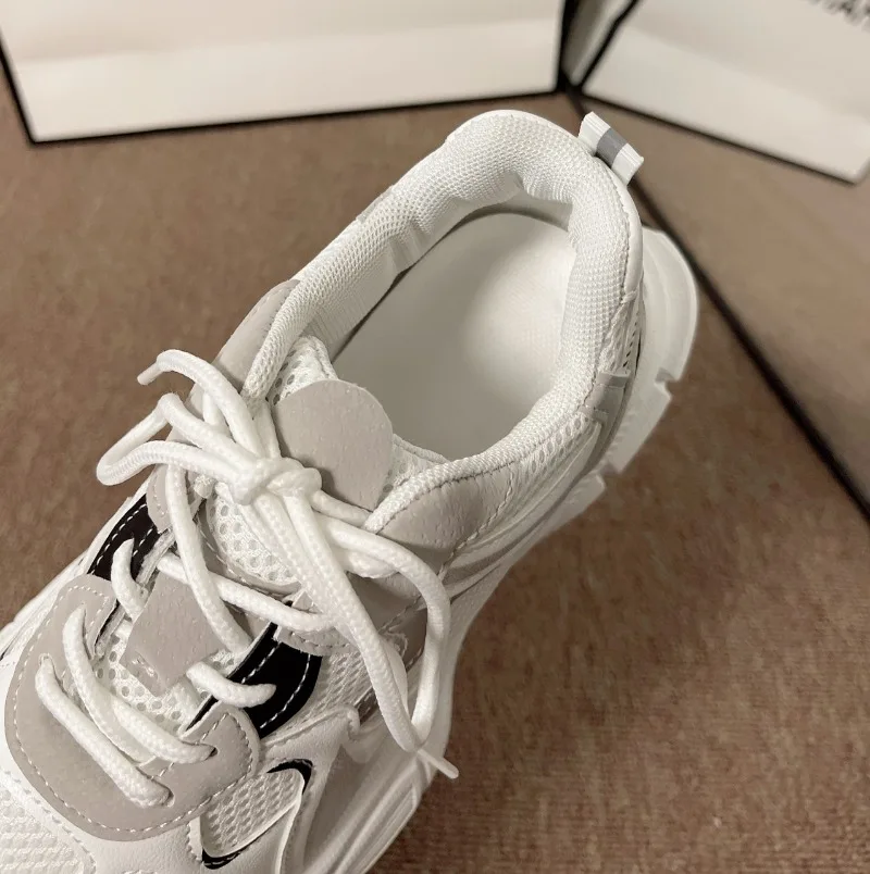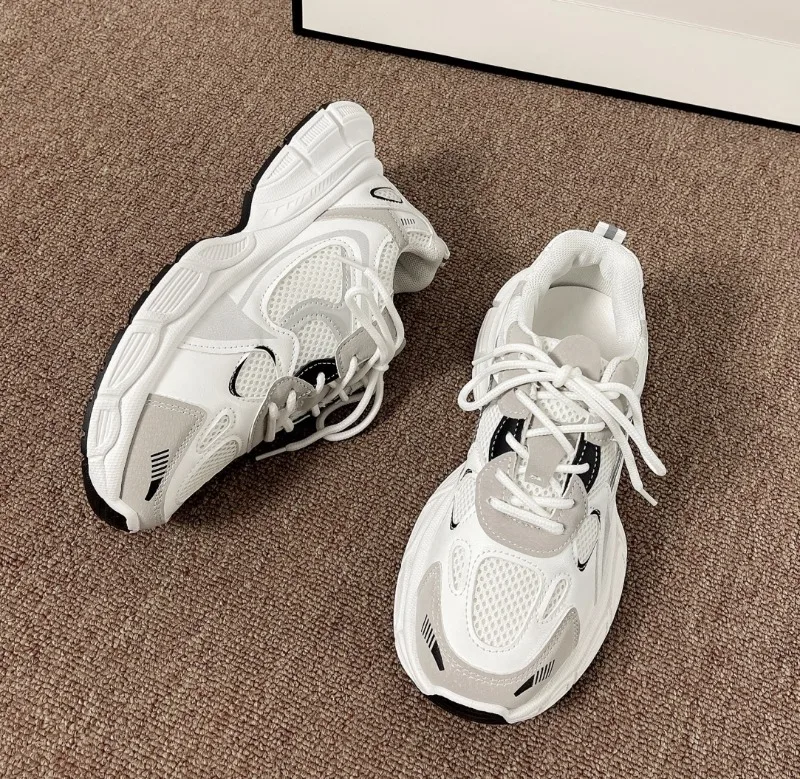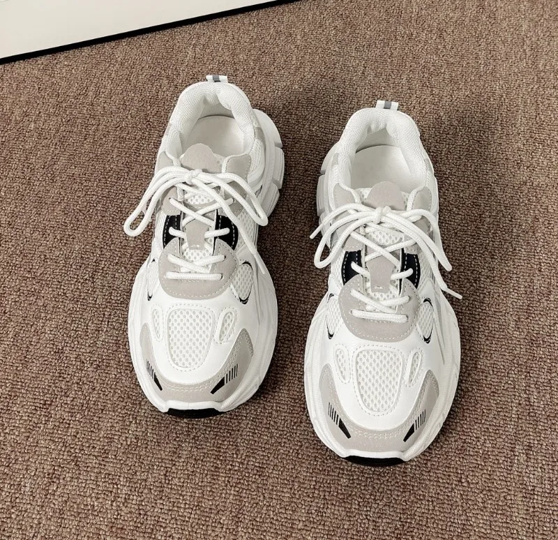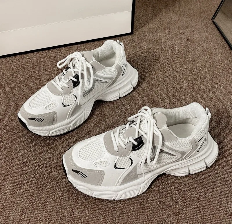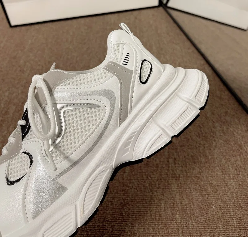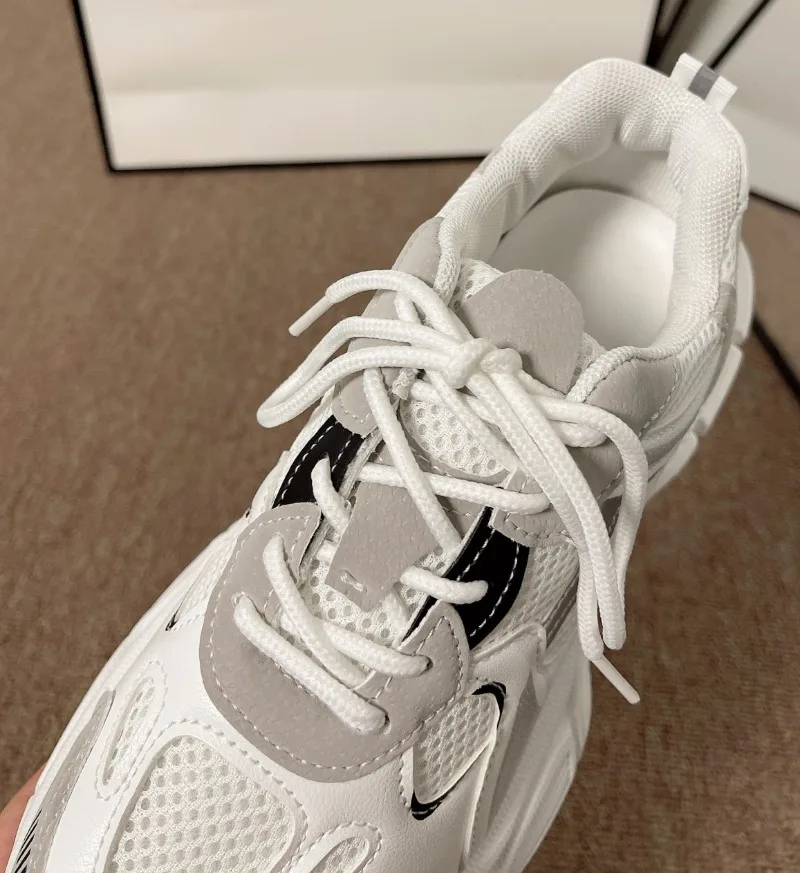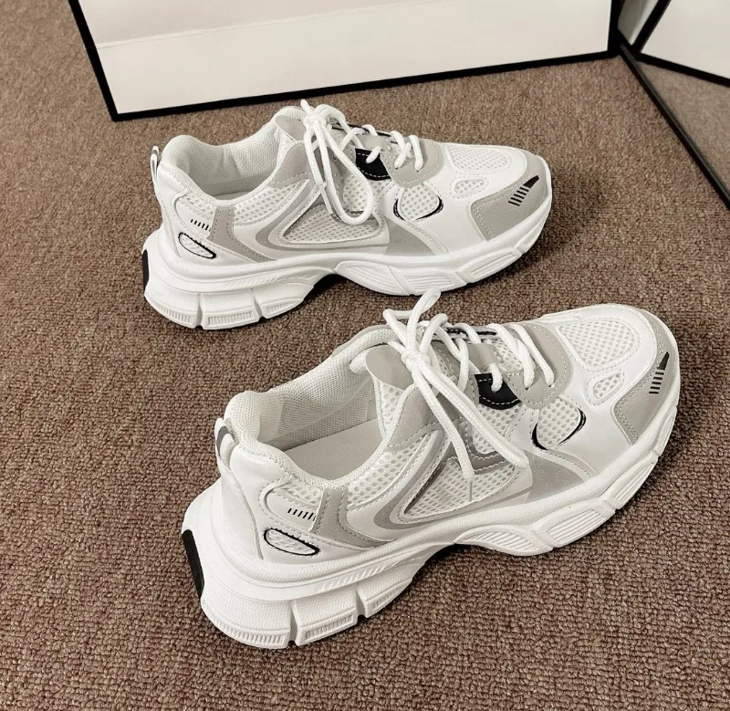 ADVBRIDGE - Outdoor Leather+Mesh Breathable Chunky Jogging Sneakers Summer Women Platform Flat Shoes Woman White Casual Walking Trainers