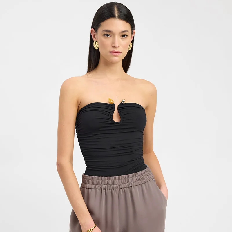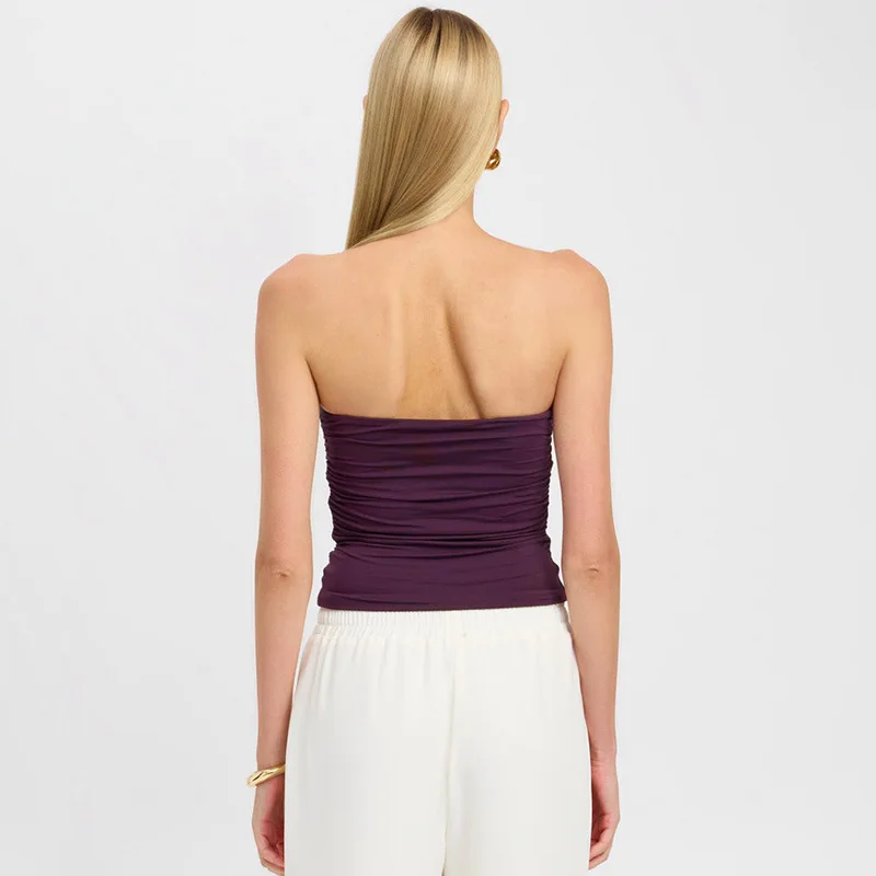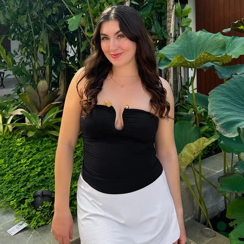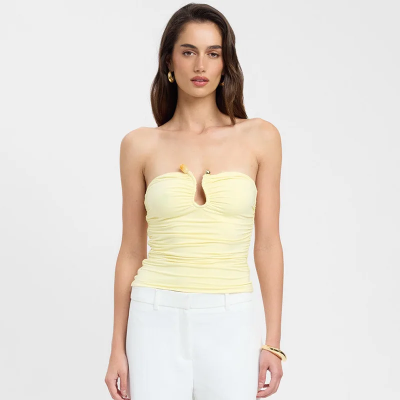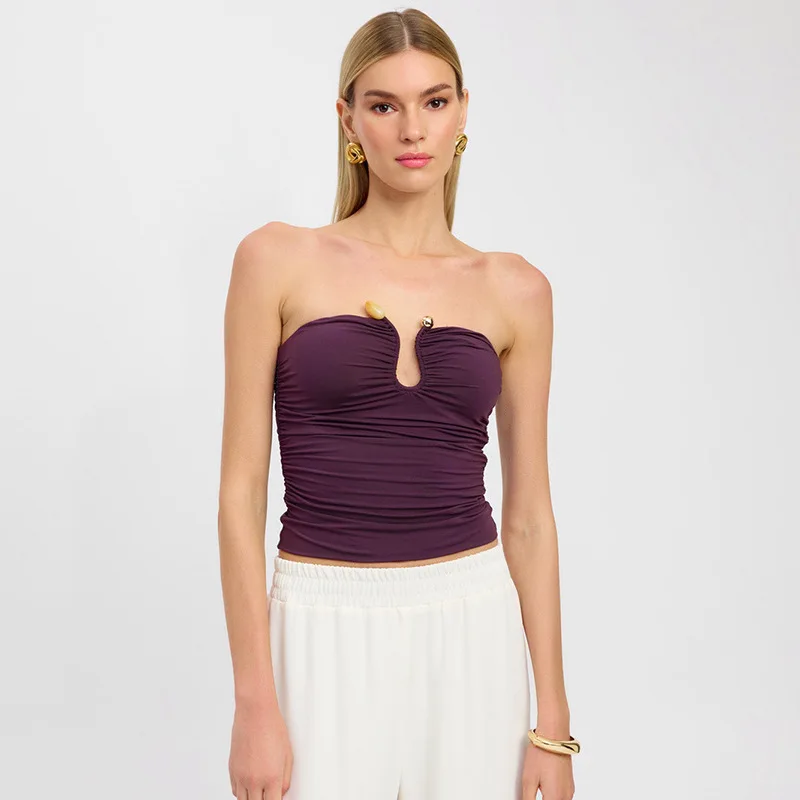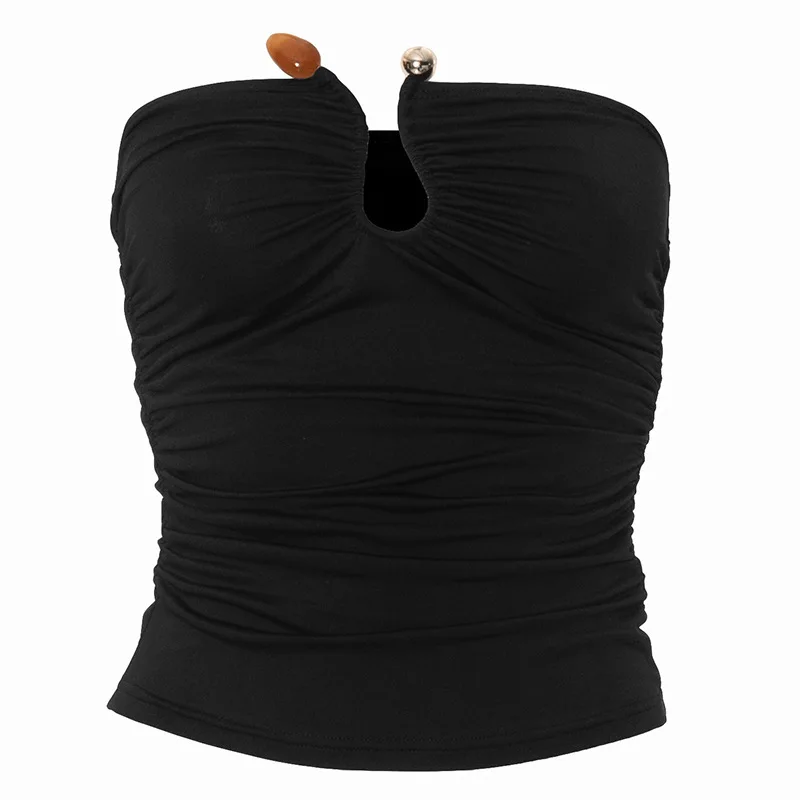 Advbridge Solid Wrapped Chest Metal Decoration Bare Back Super Short Top Shrink Fold Agate Sleeveless One Line Shouler Vest