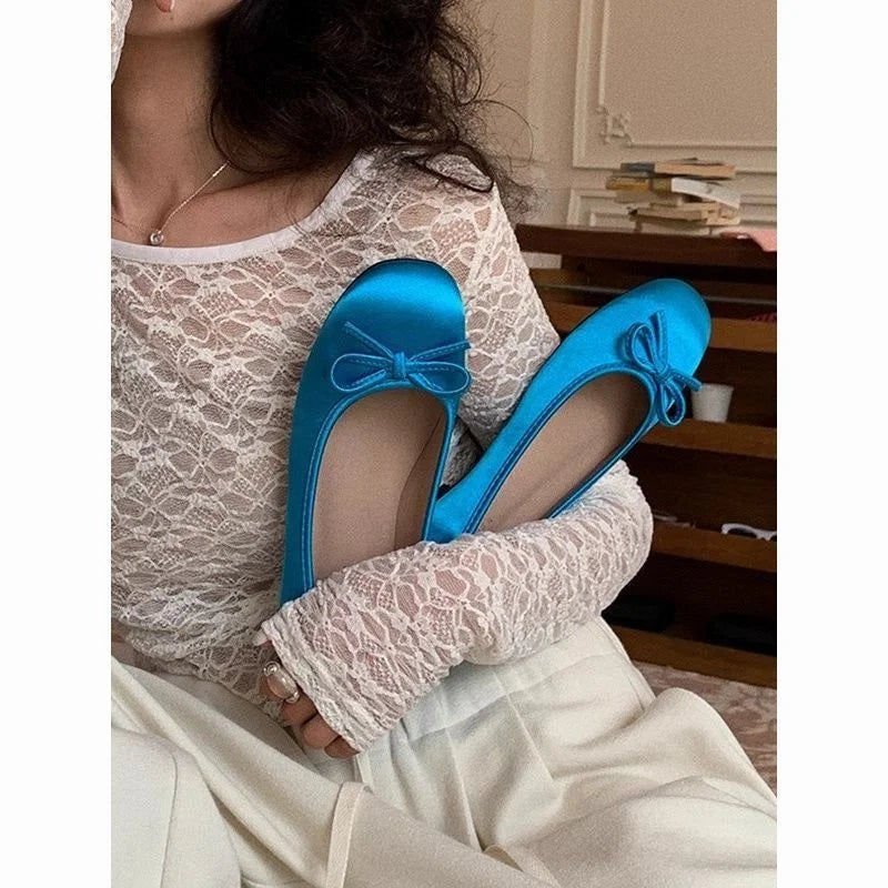 ADVBRIDGE - Spring Women's round Toe Knot Flat Shoes Versatile Low Cut Flat Heel Suitable for Skirts Bean Bean Shoes Comfortable Casual