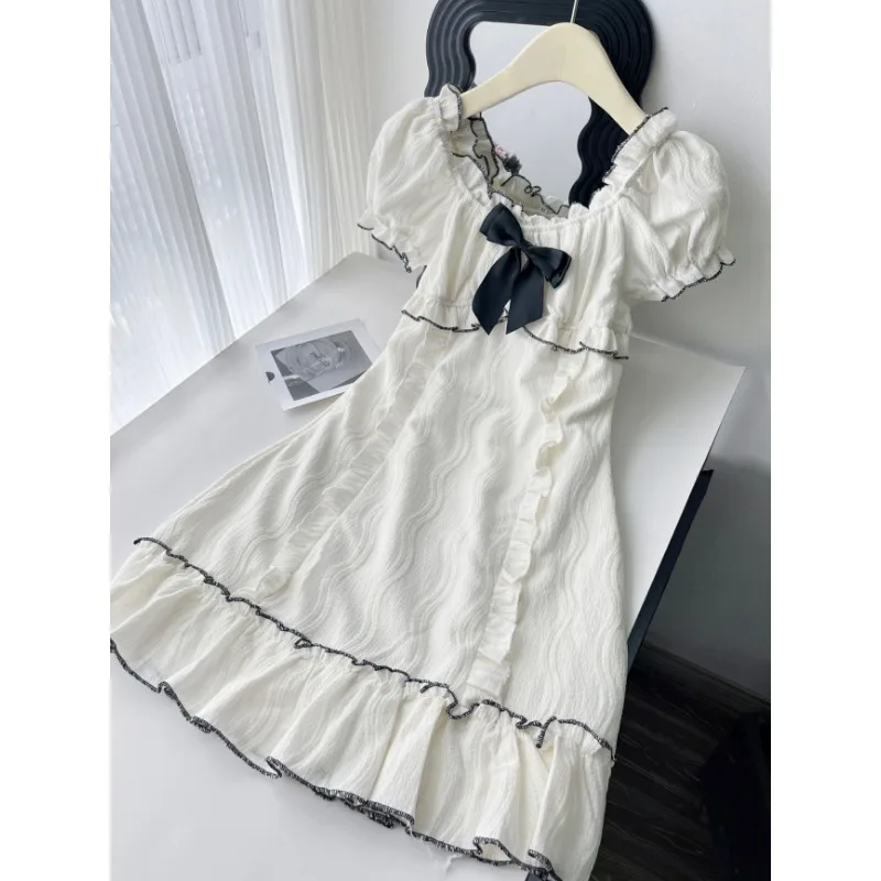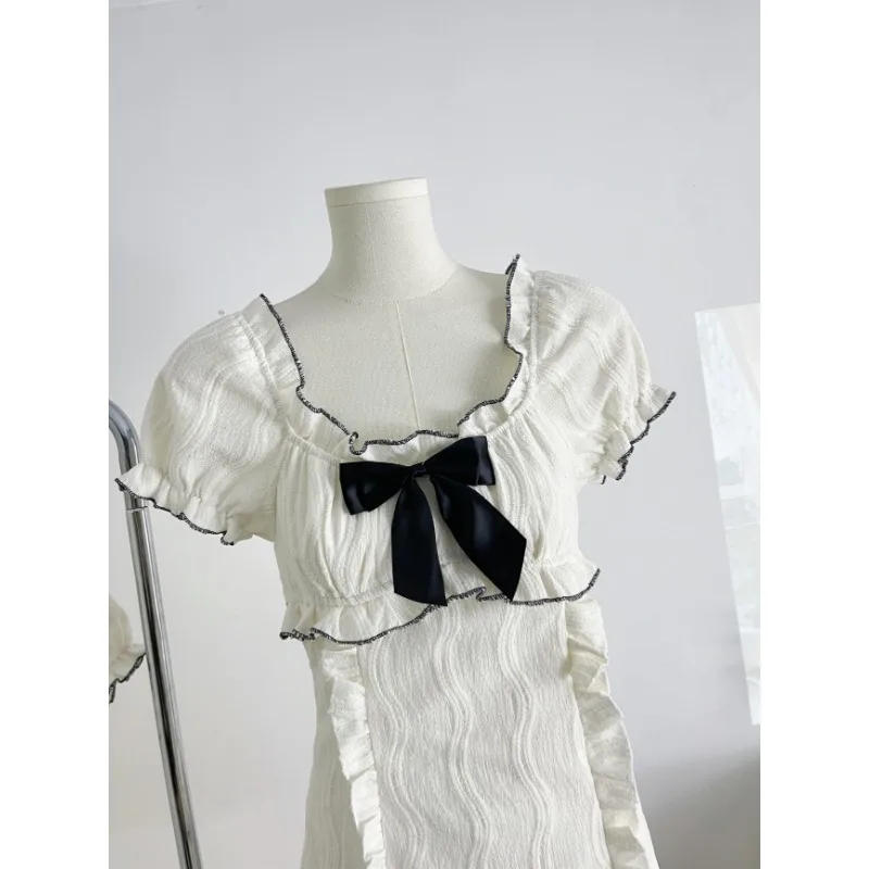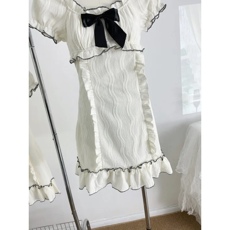 Advbridge Summer Woman Short Sleeve Y2k Mini Dress Party Slim Sweet Bow Dress Casual Outwear One Piece Dress Korean Fashion Chic