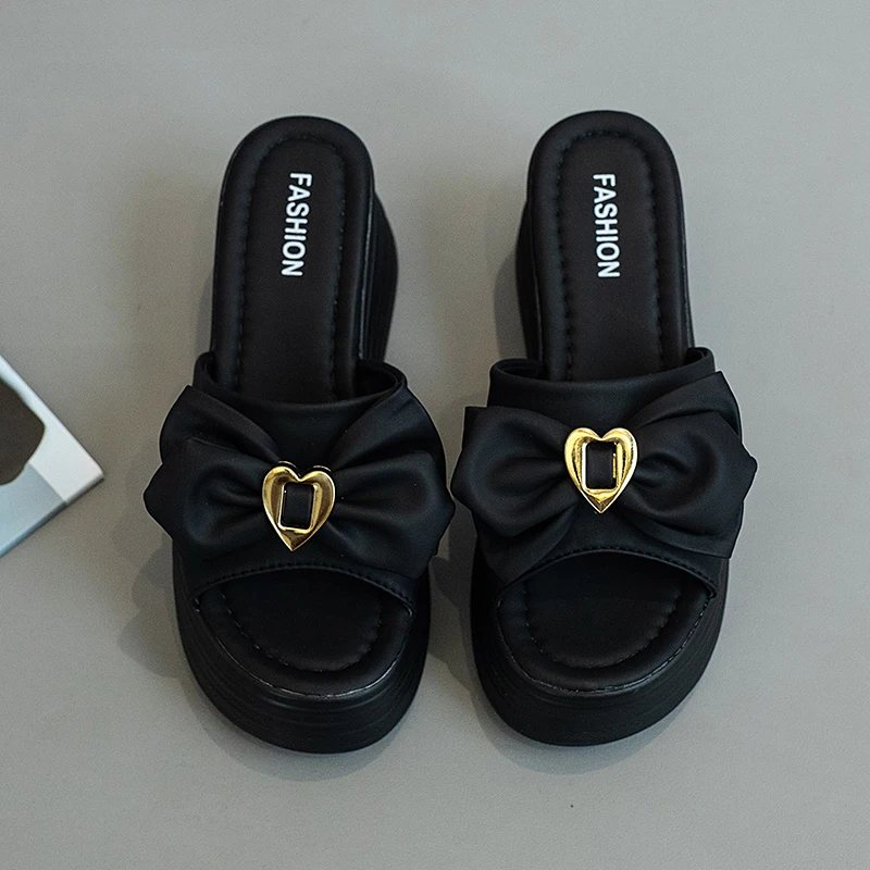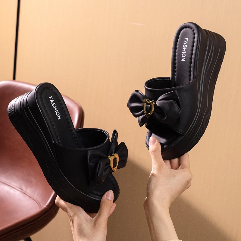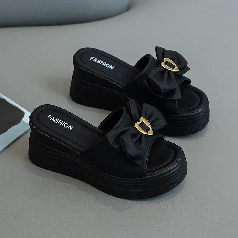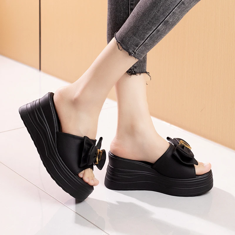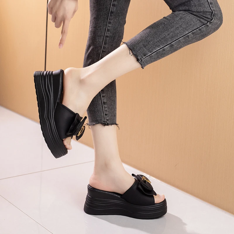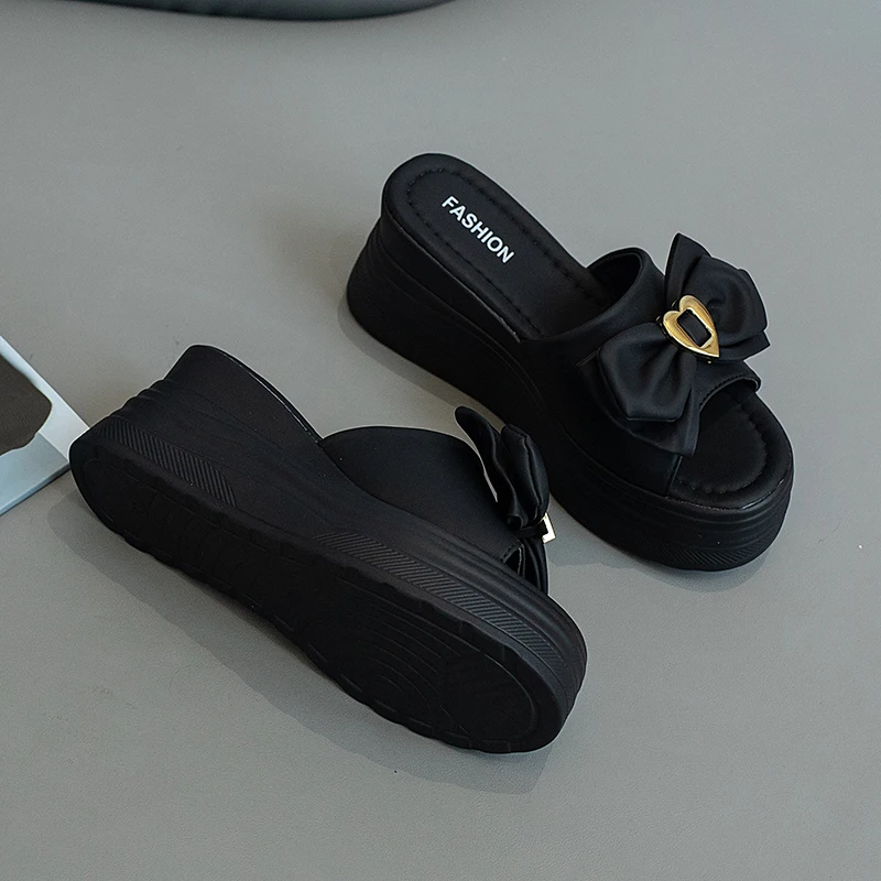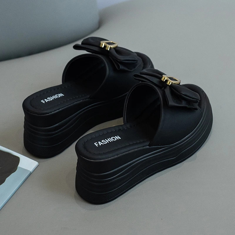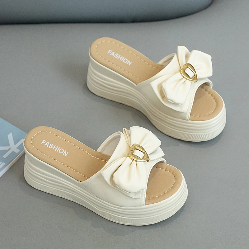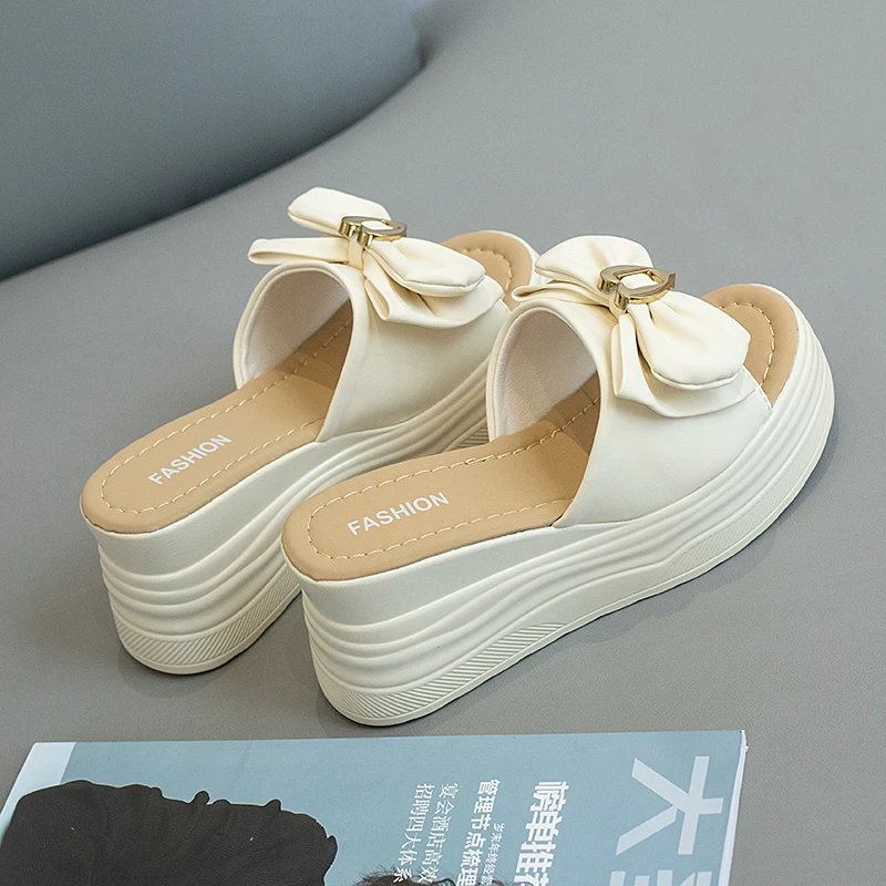 ADVBRIDGE - Summer Women High Heels One-word Flat Slippers Bow knot Height Increasing Slides Woman Outdoor Thick Sole Shoes Platform Sandals