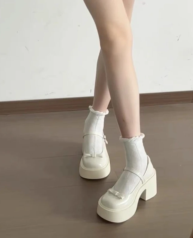 ADVBRIDGE - Woman Pumps with Medium Heels Platform Bow Mary Jane Shoes for Women High Quality Wholesale Casual Young Korean Style Y2k Spring