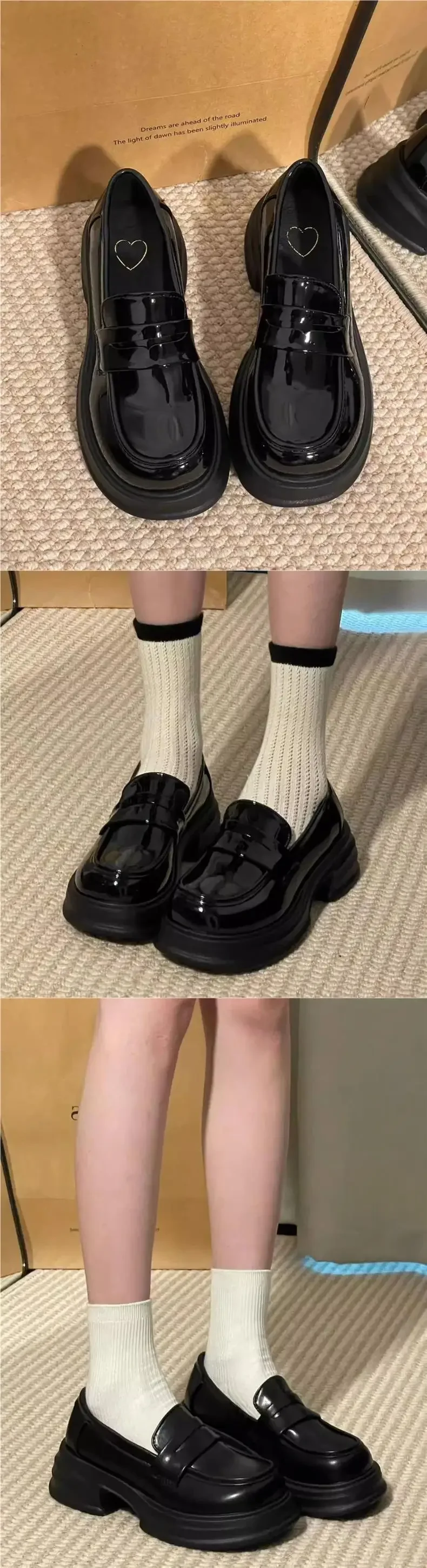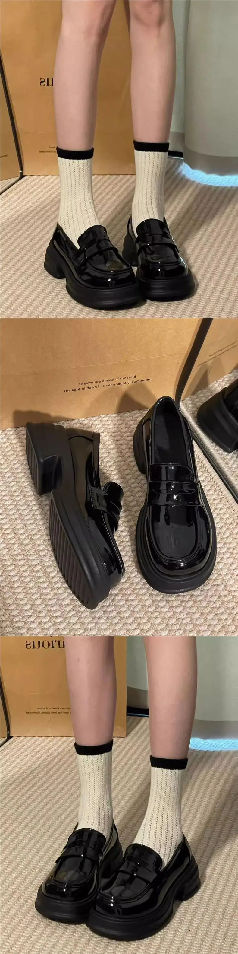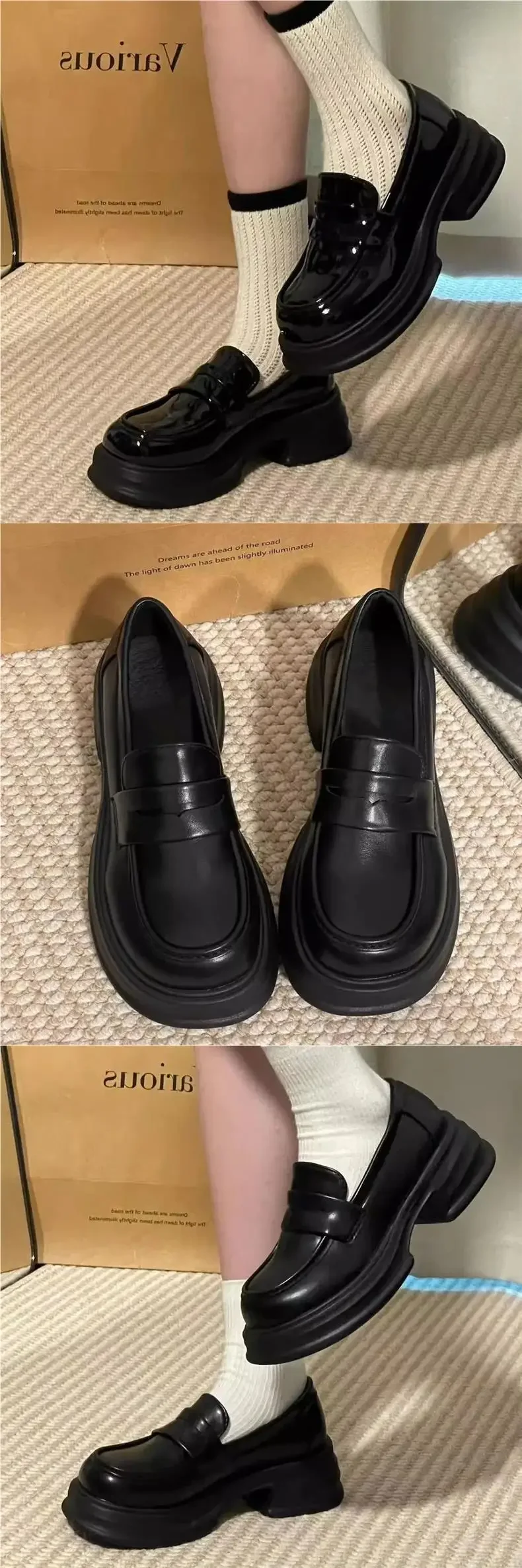 ADVBRIDGE - Women's Retro British Style Black Leather Shoes 34-46 Large Size Uniform Single Shoes Thick Bottom Flat Heels round Toe