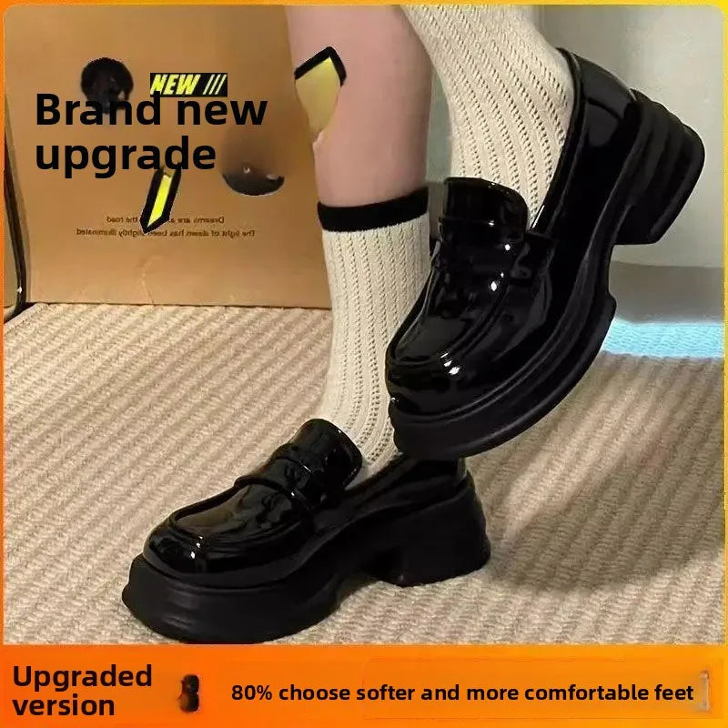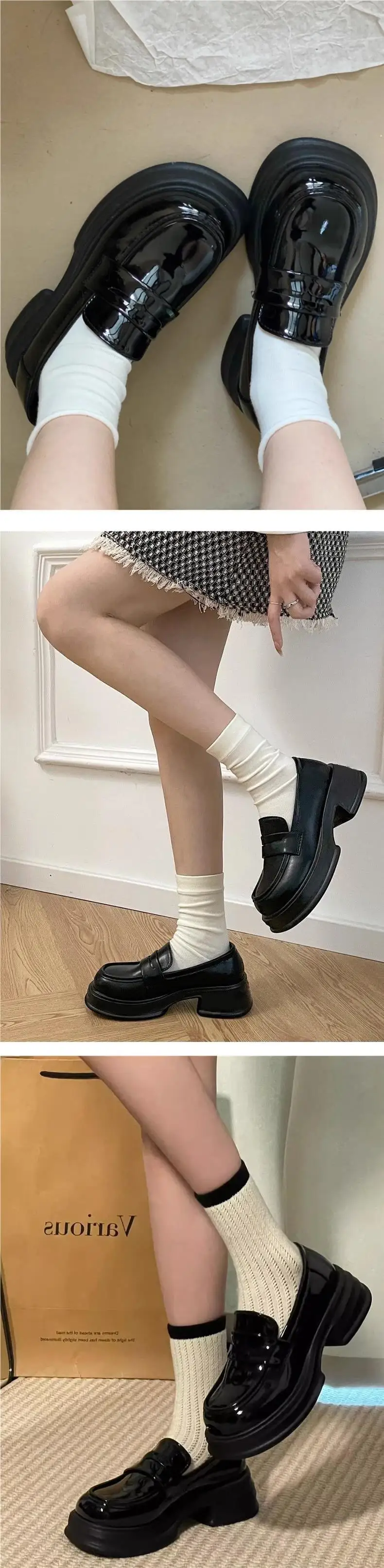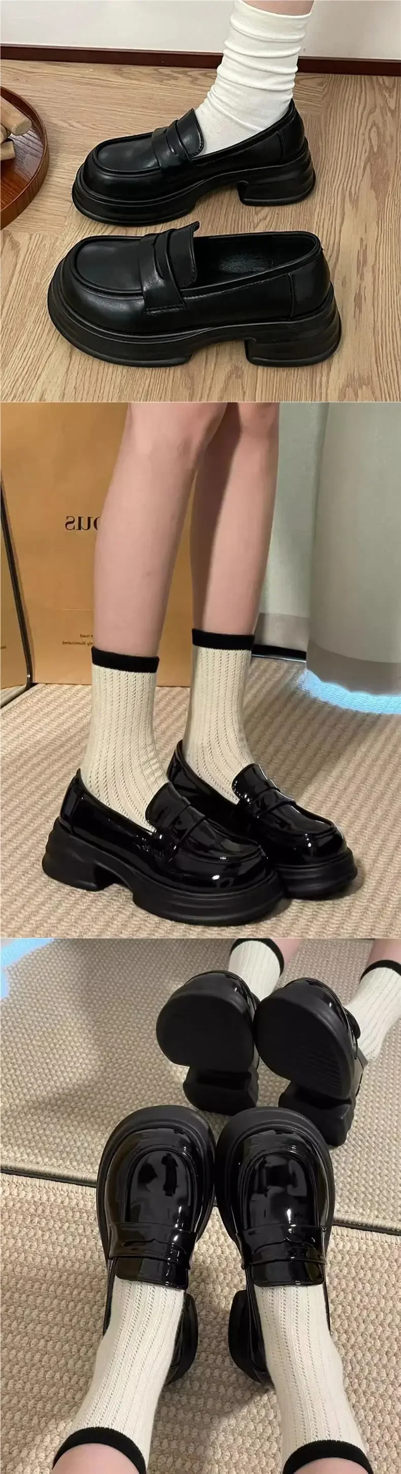 ADVBRIDGE - Women's Retro British Style Black Leather Shoes 34-46 Large Size Uniform Single Shoes Thick Bottom Flat Heels round Toe