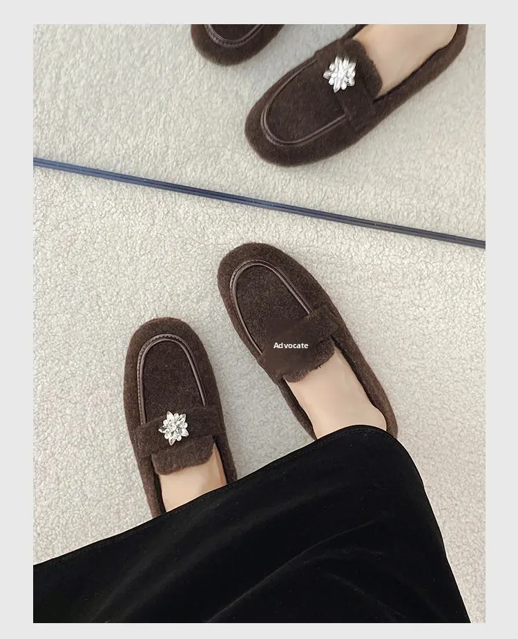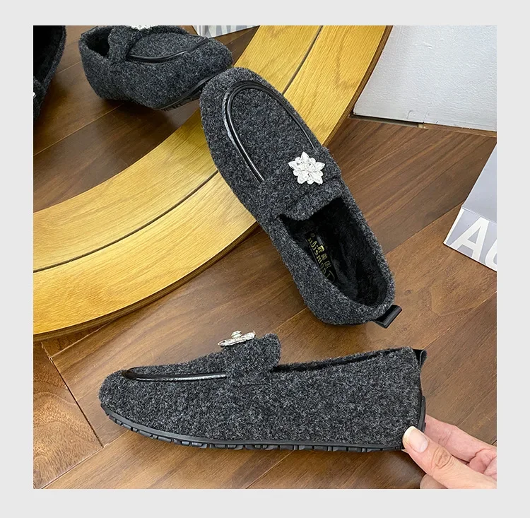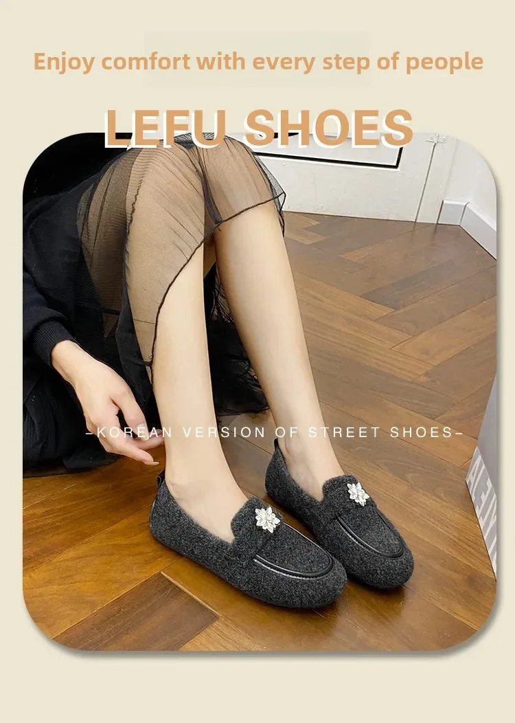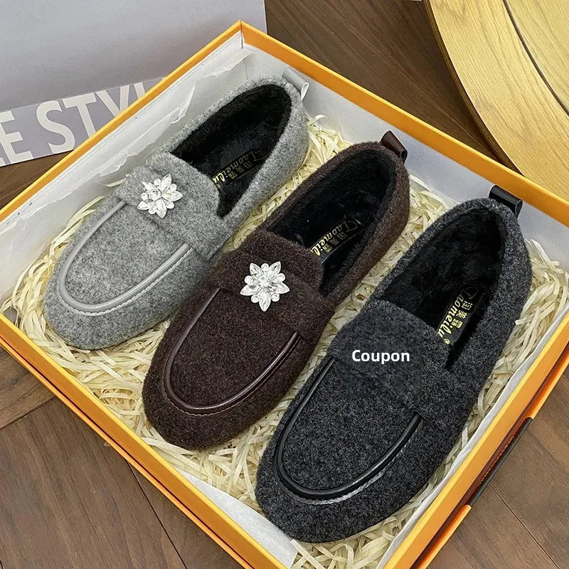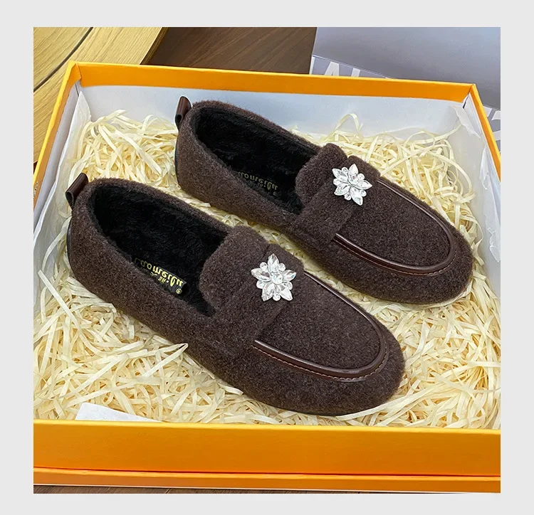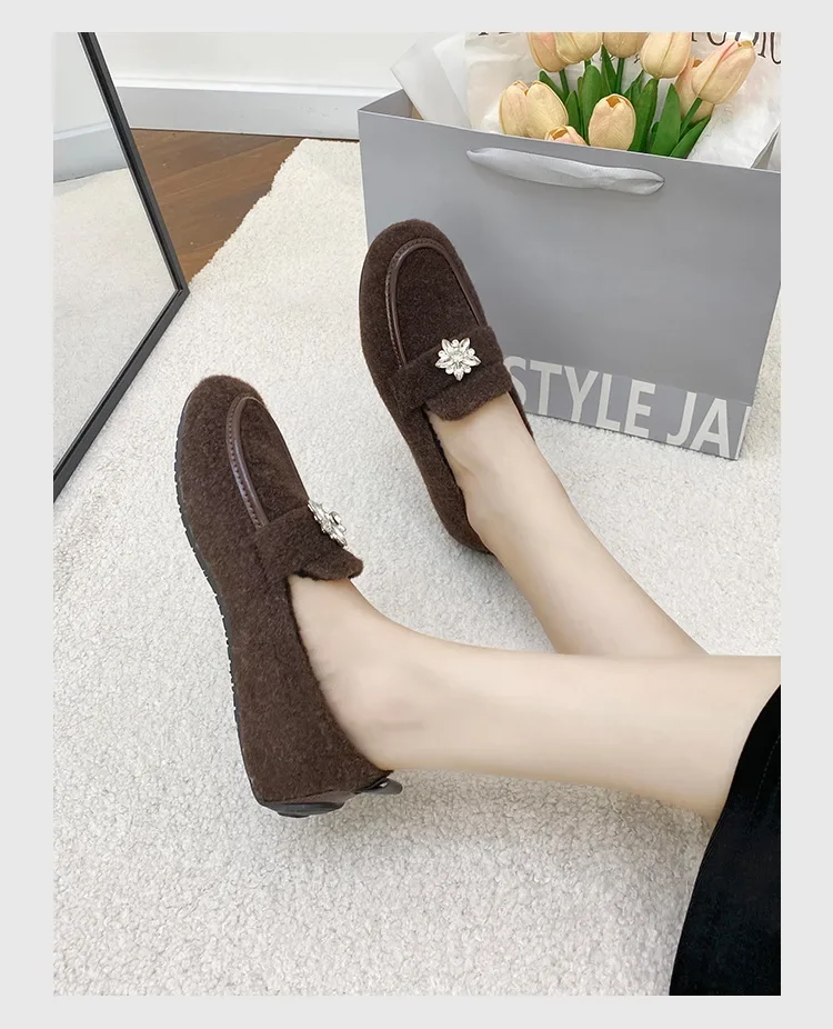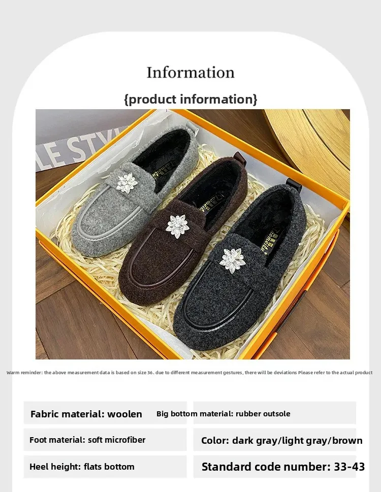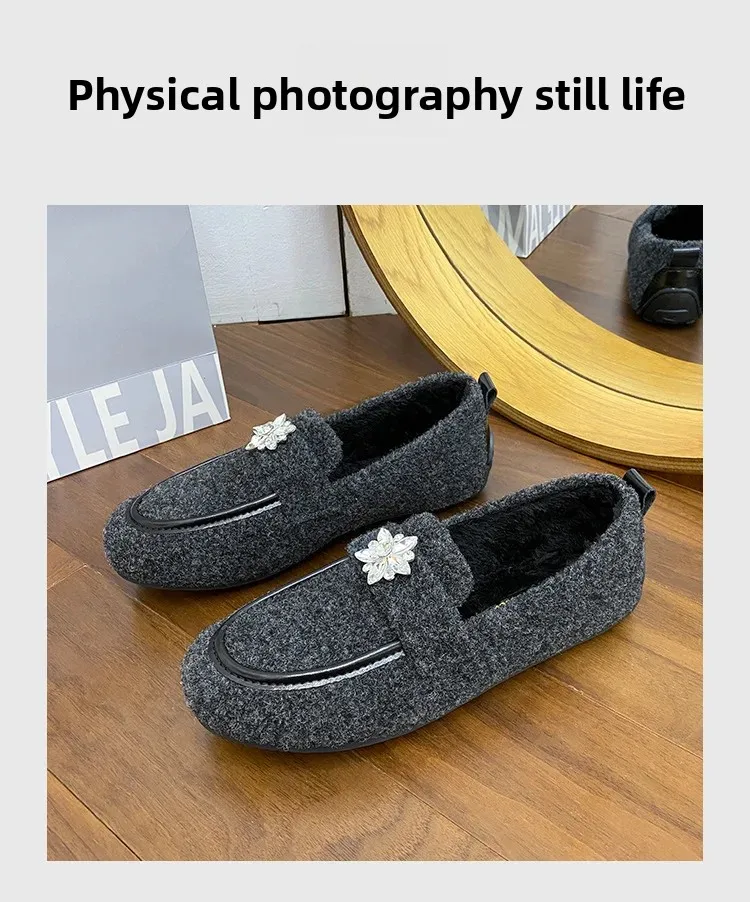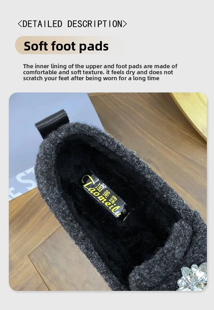 ADVBRIDGE - Women's Winter Warm Fleece Lined Slip-On Thick Bottomed Bean Bean Shoes Large Size Korean Style Flat Bottomed Shoes