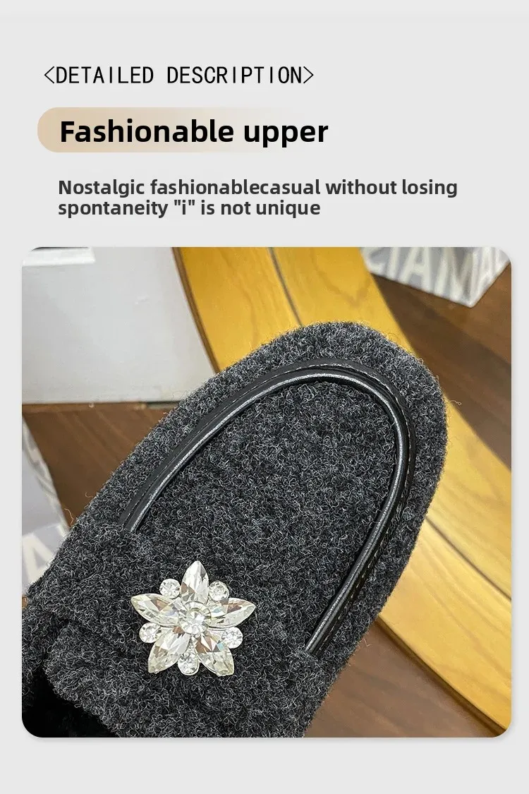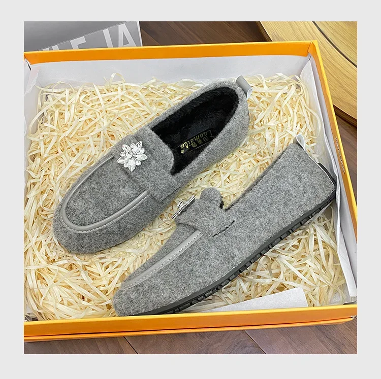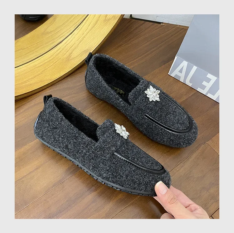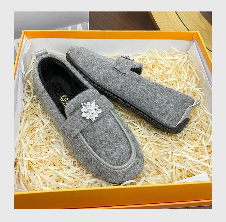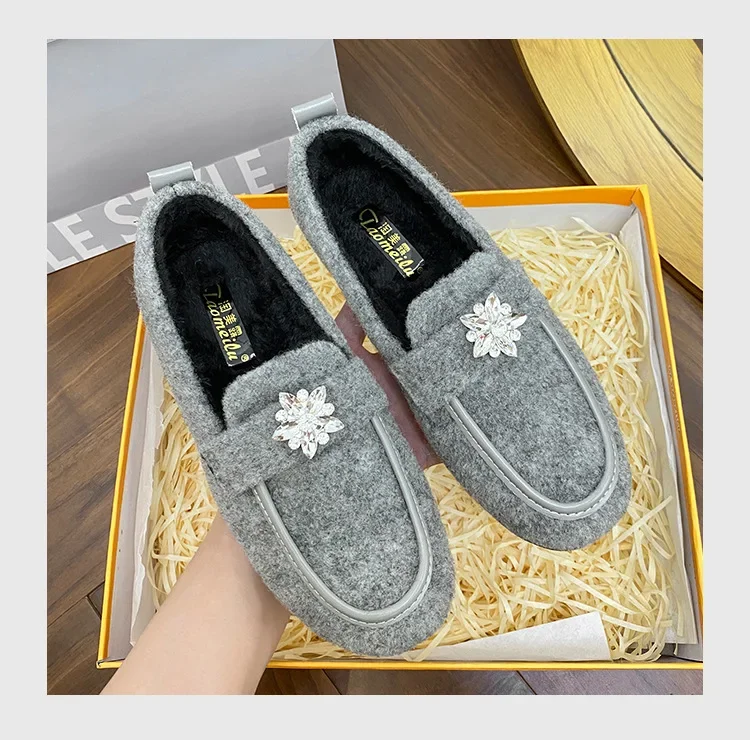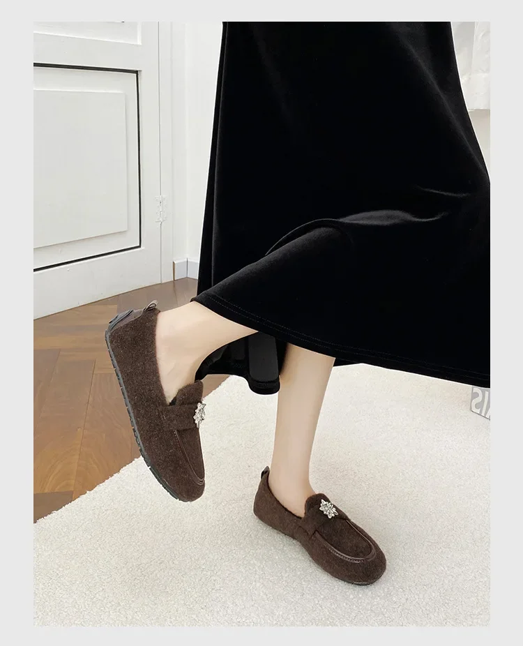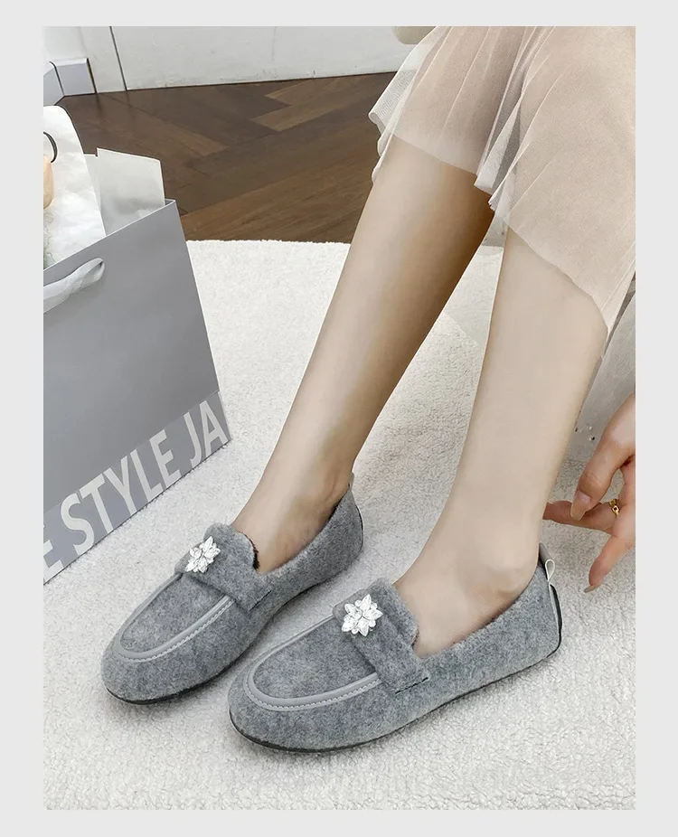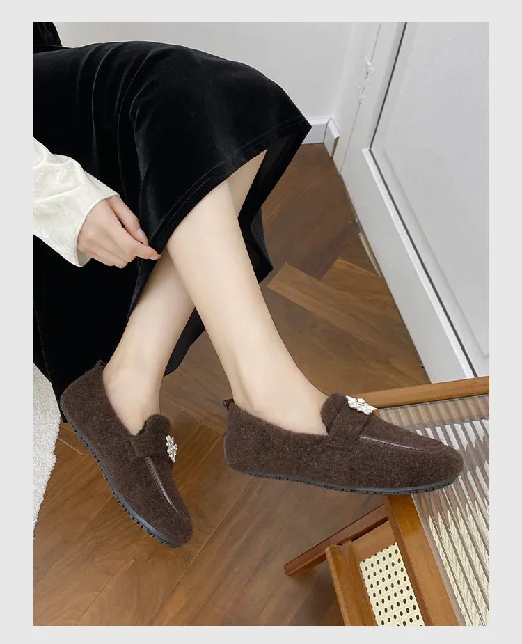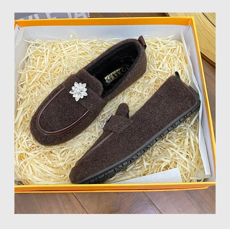 ADVBRIDGE - Women's Winter Warm Fleece Lined Slip-On Thick Bottomed Bean Bean Shoes Large Size Korean Style Flat Bottomed Shoes