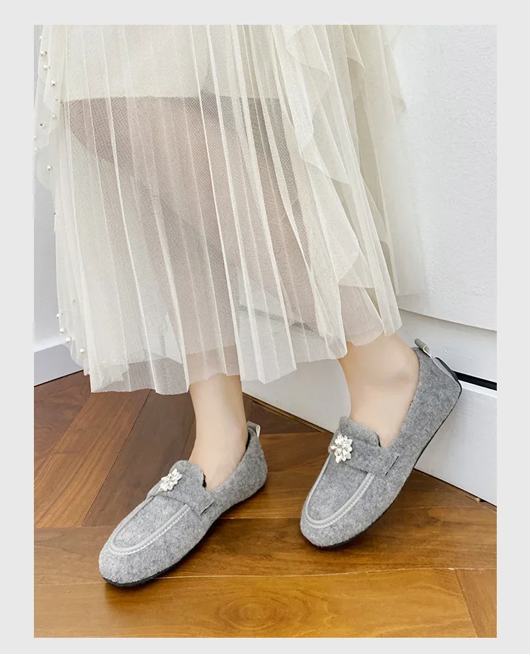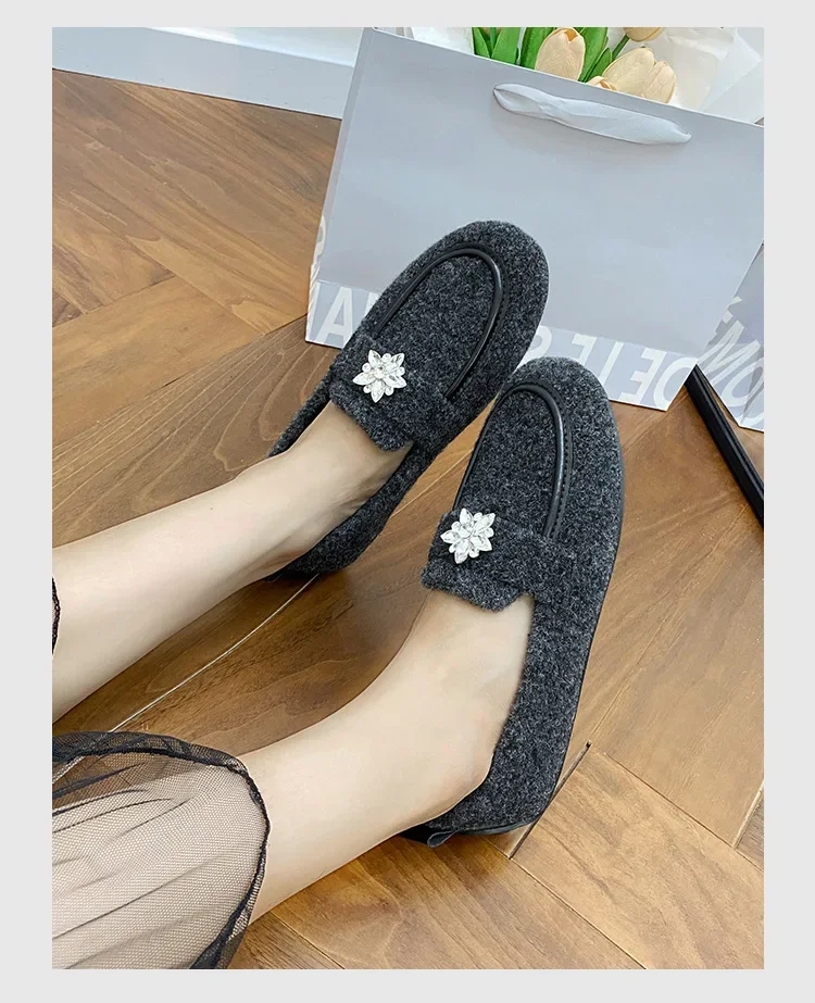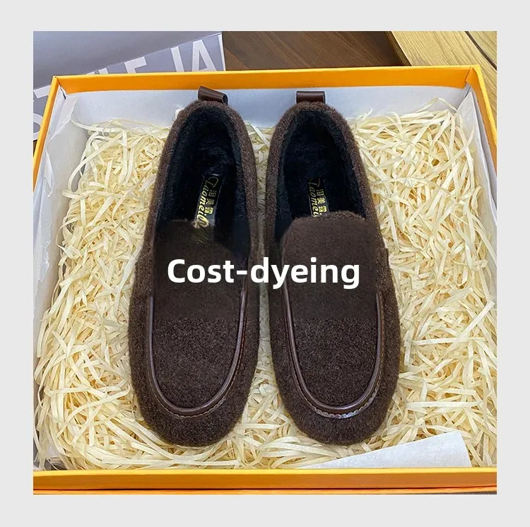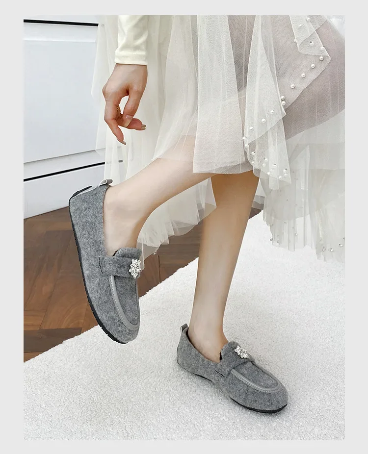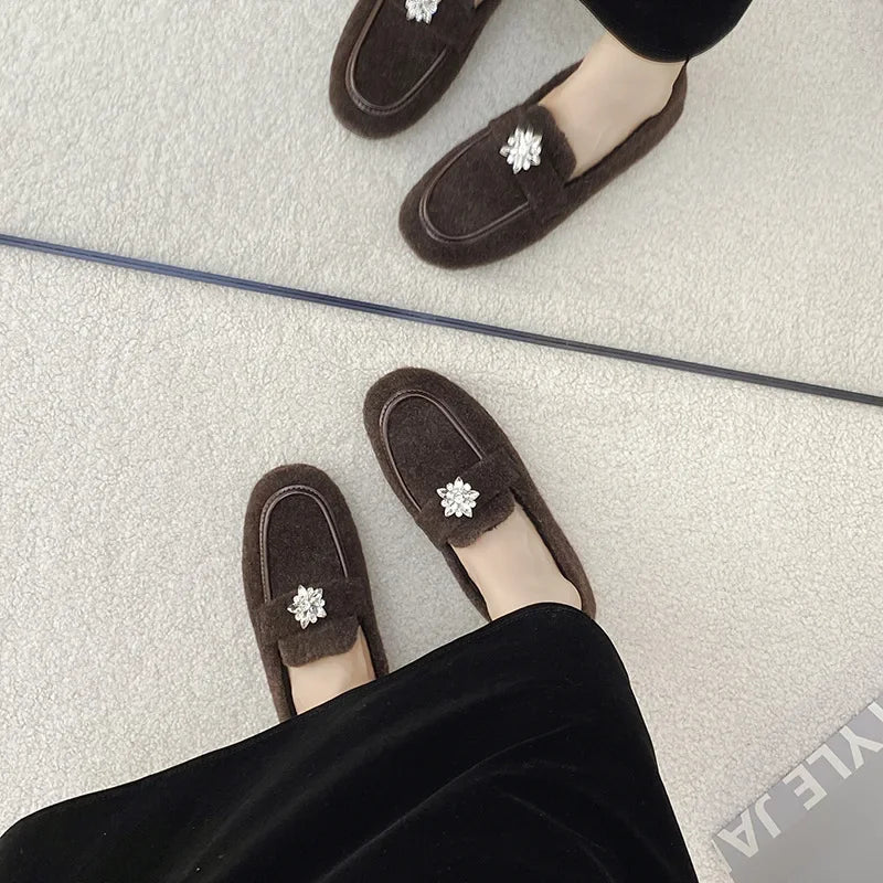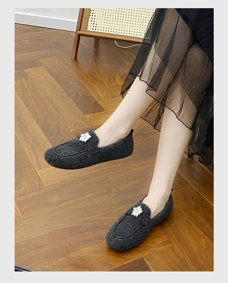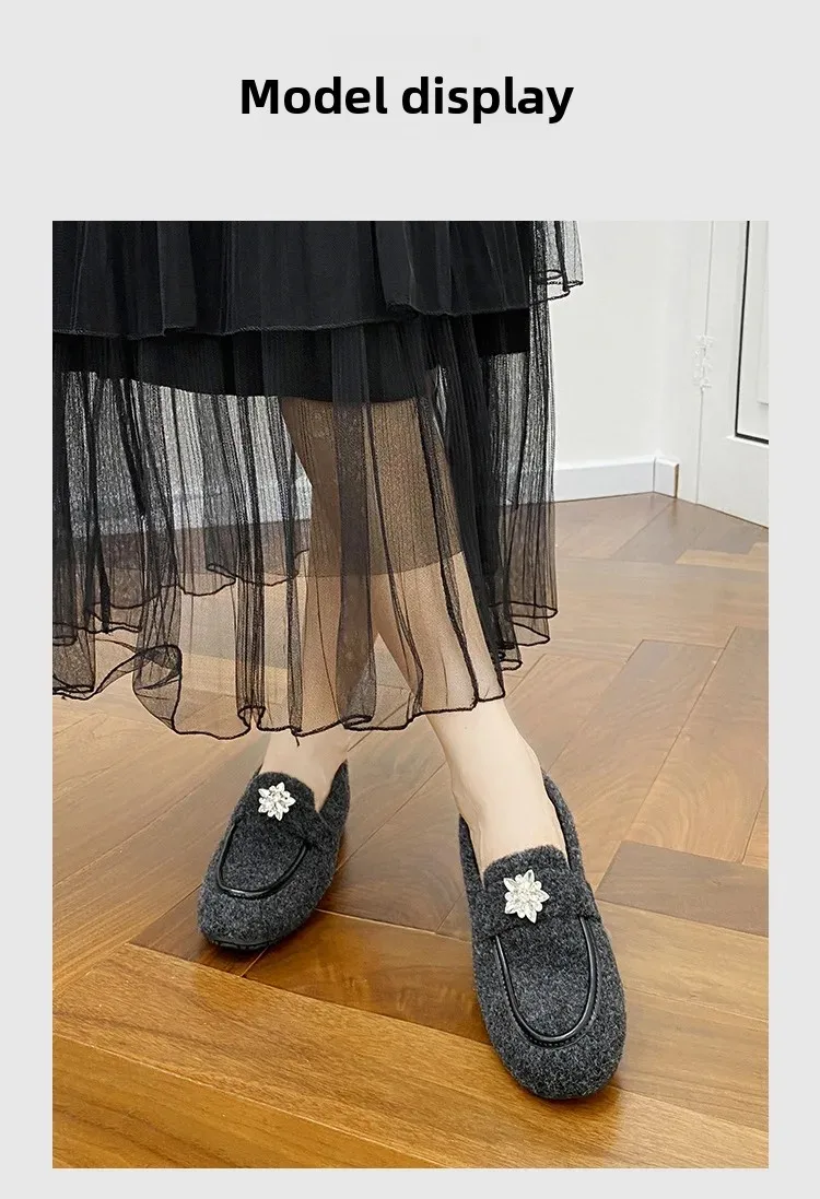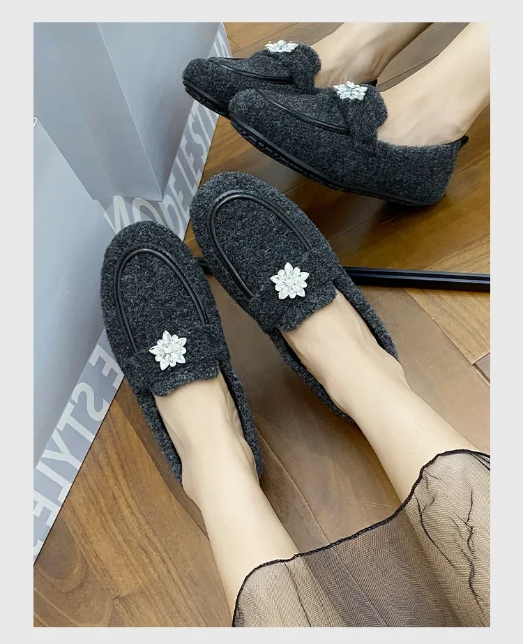 ADVBRIDGE - Women's Winter Warm Fleece Lined Slip-On Thick Bottomed Bean Bean Shoes Large Size Korean Style Flat Bottomed Shoes